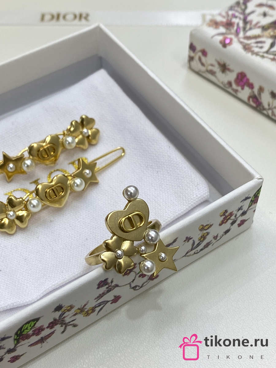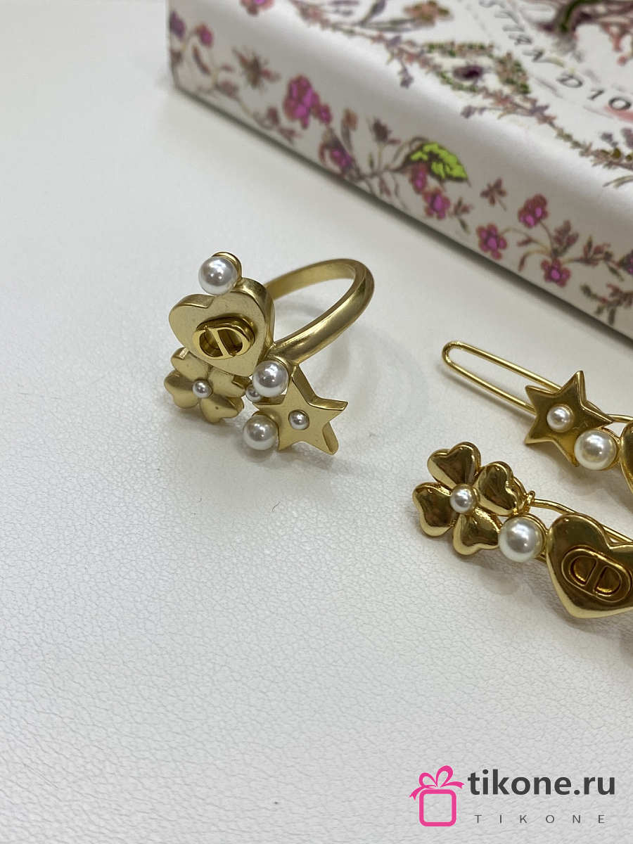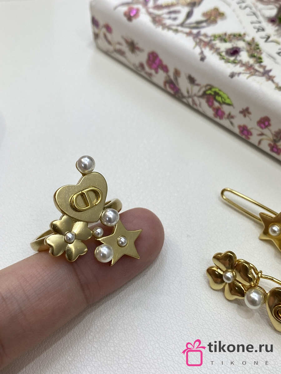 Lucky Dior Ring Gold Finish Metal and White Resin Pearls