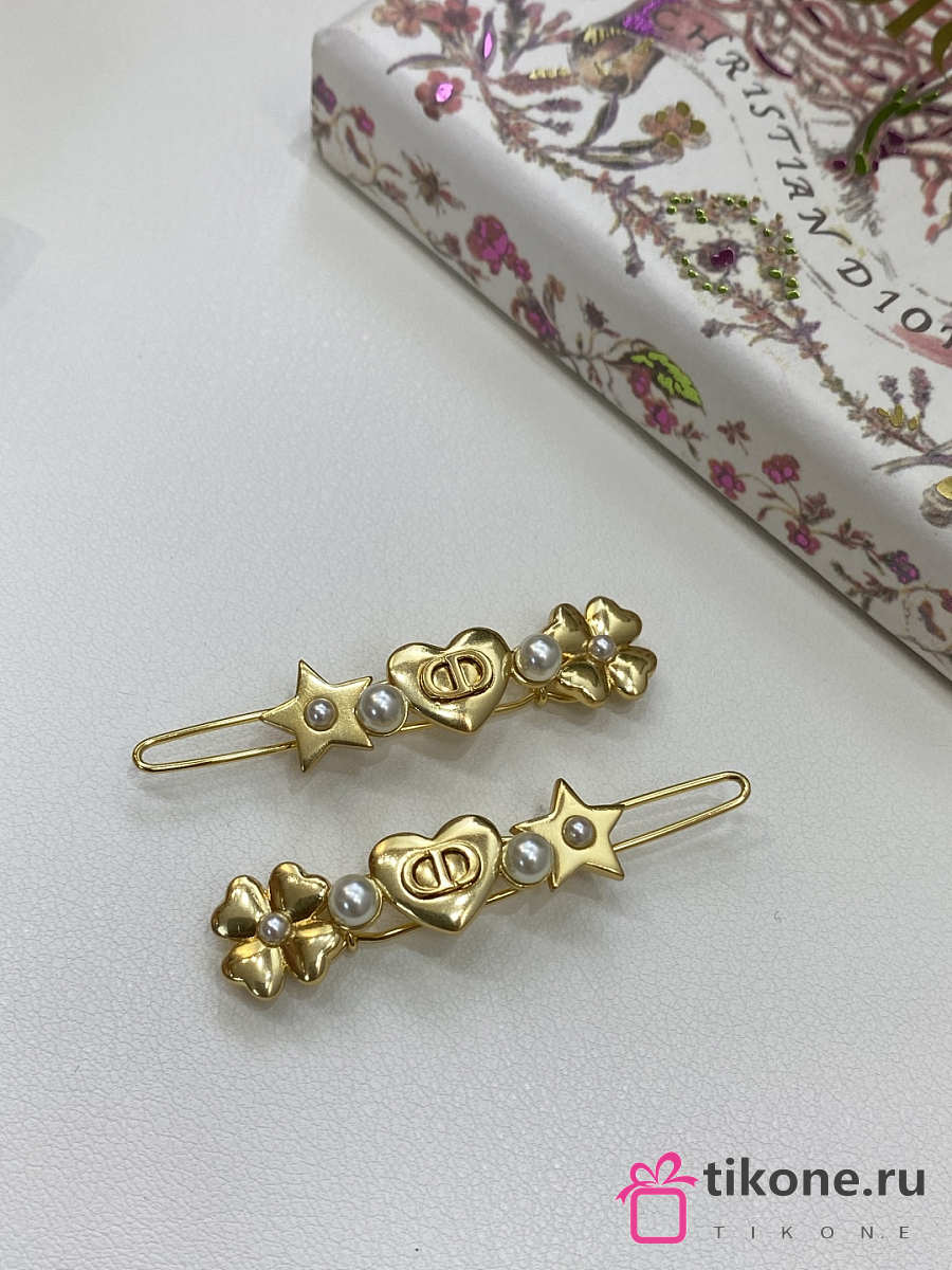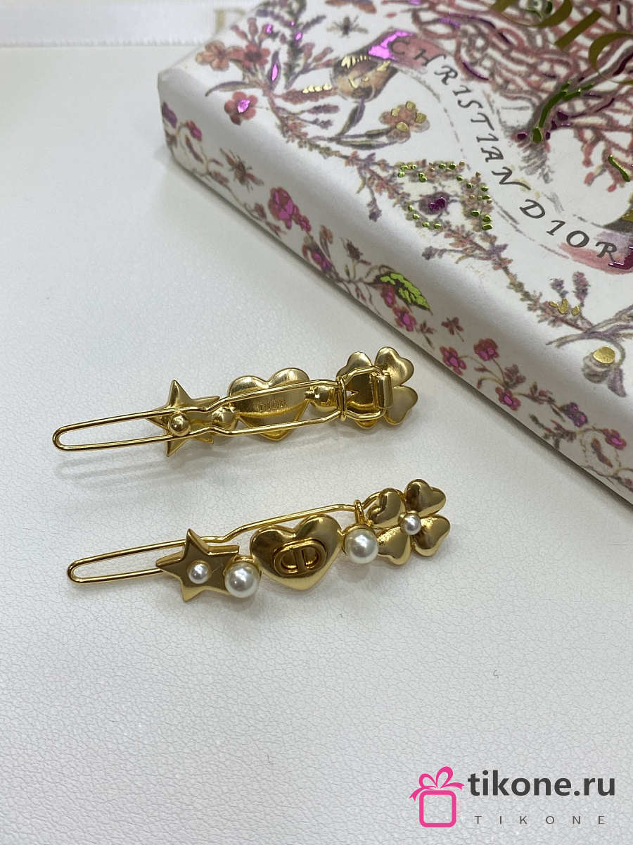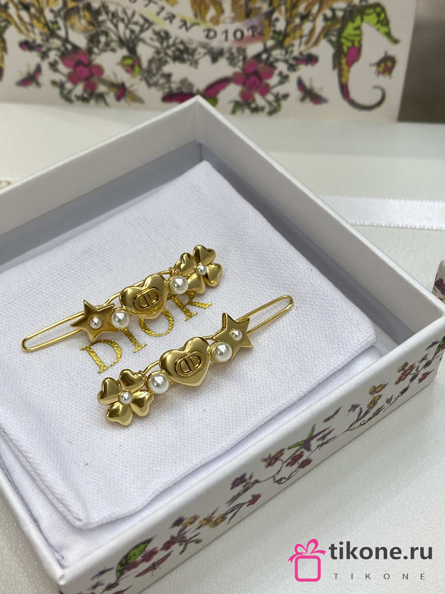 Lucky Dior Set of Barrettes Gold-Finish Metal and White