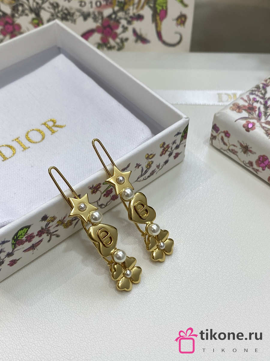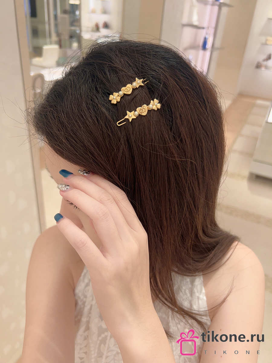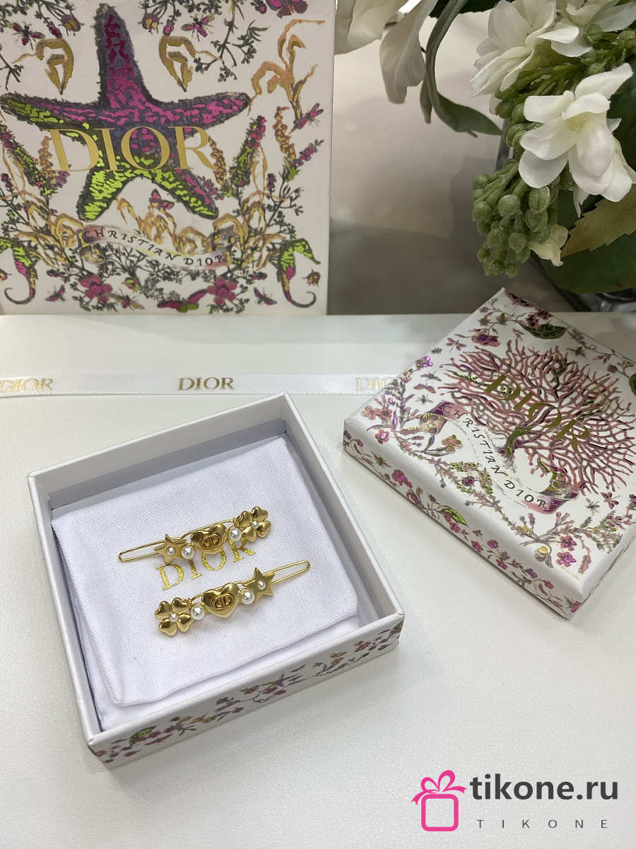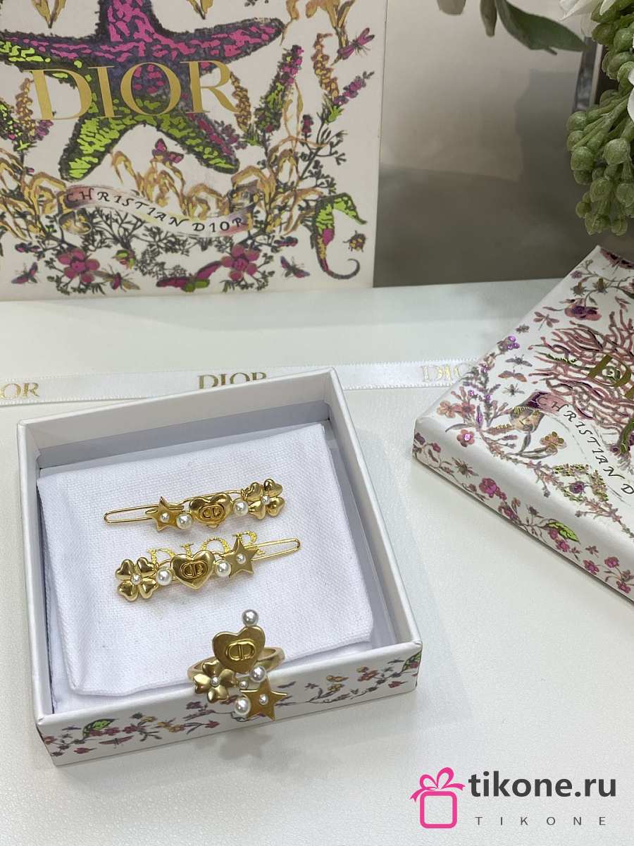Lucky Dior Set of Barrettes Gold-Finish Metal and White