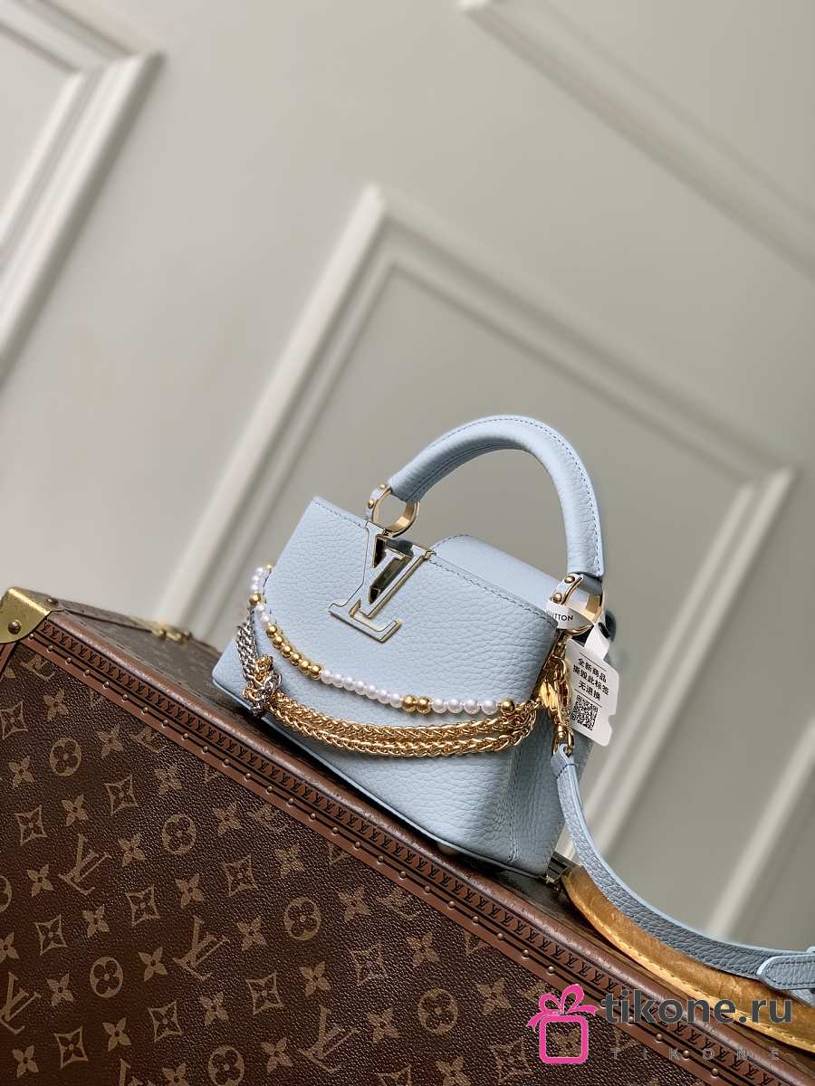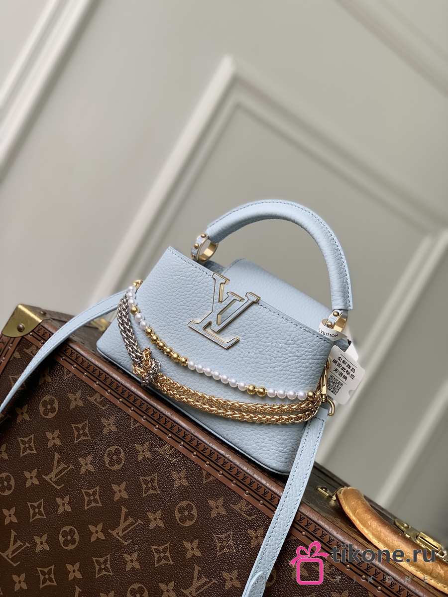 LV Capucines East-West MiniTaurillon Leather Blue Olympe M28199 - 22x12x8cm