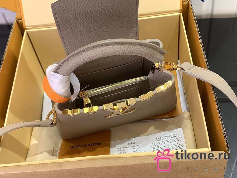 LV Capucines Mini Taurillon Leather Galet Gray M11341 - 21x13.6x8cm