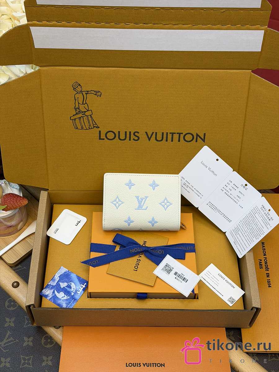 LV Clea Wallet Monogram Empreinte Milky White/ Blue M28274 - 11x8.5x3.5cm