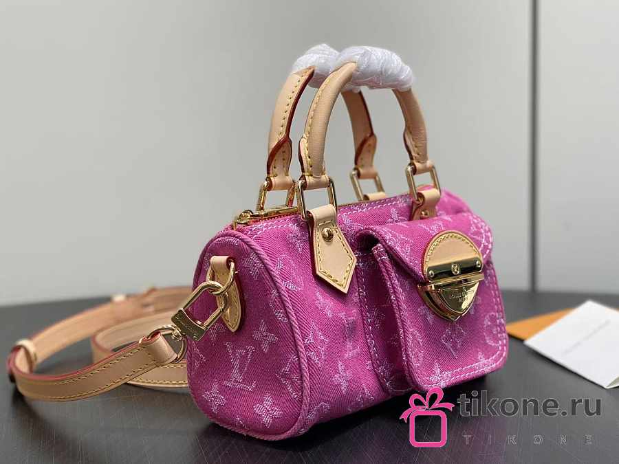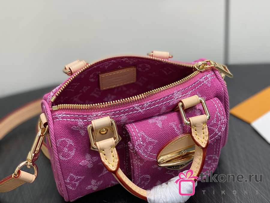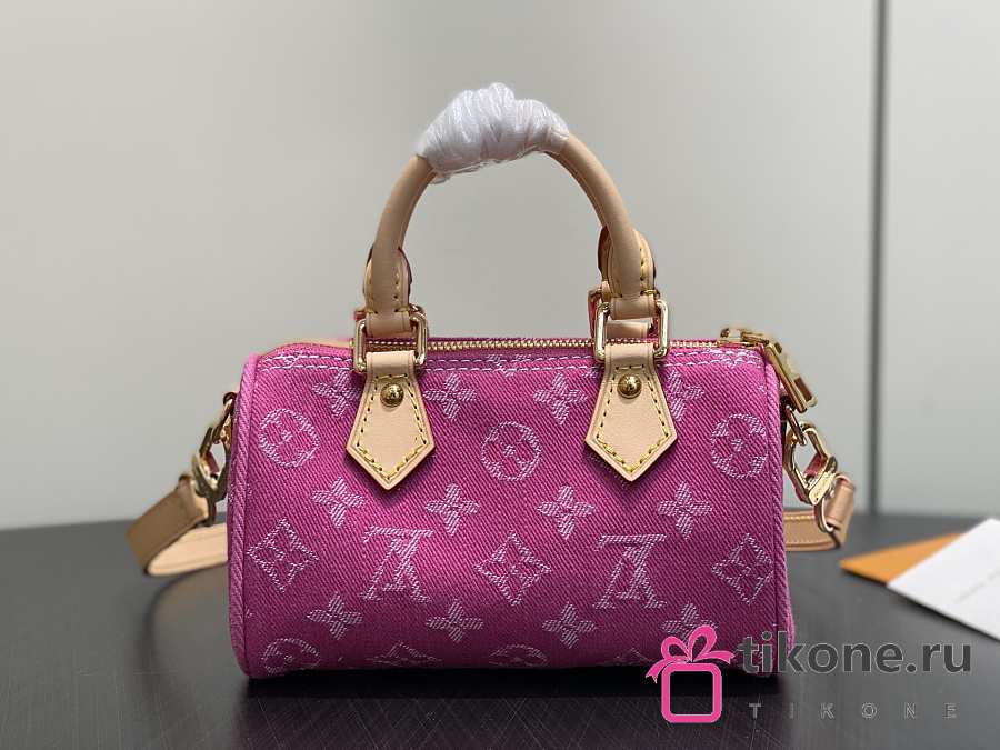LV Nano Speedy Monogram Denim Fuchsia M27603 - 16x10x7.5cm