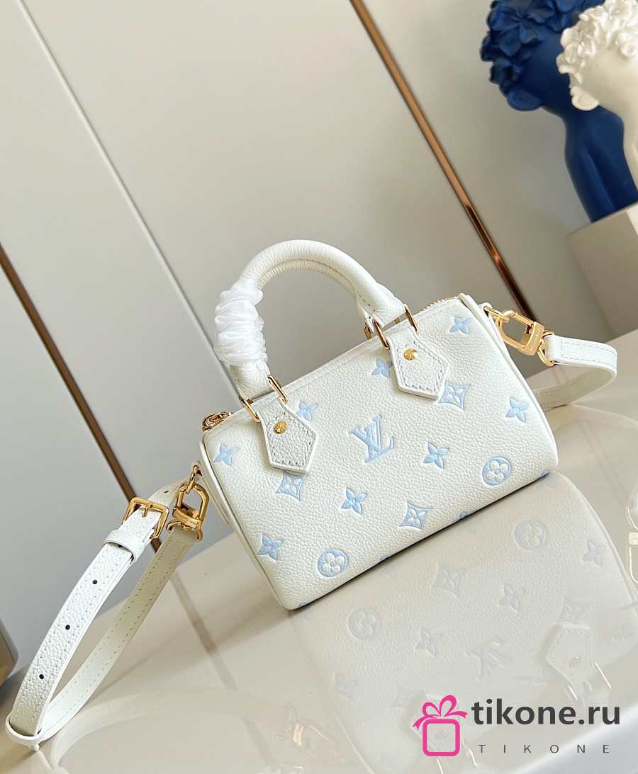 LV Nano Speedy Monogram Empreinte Milky White/ Blue M27702 - 16x10x7.5cm