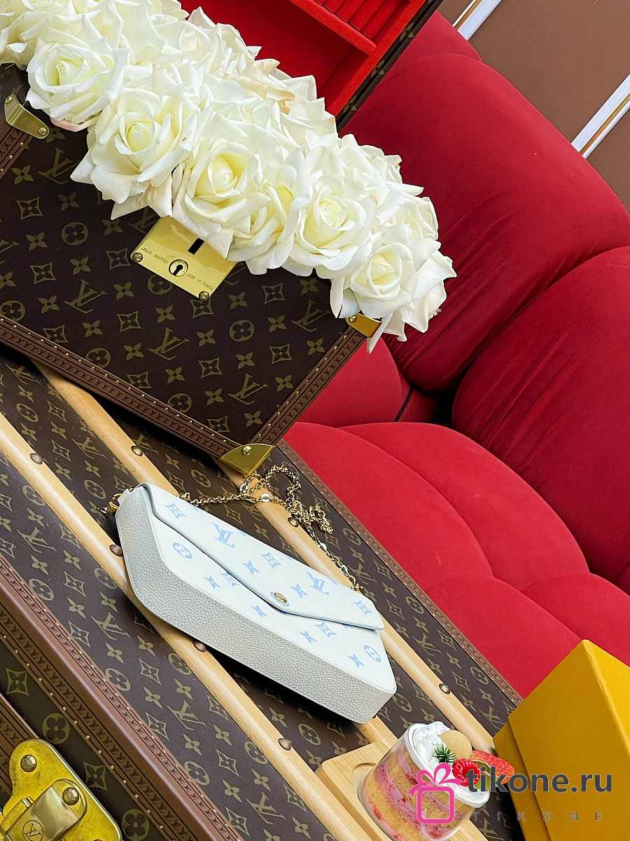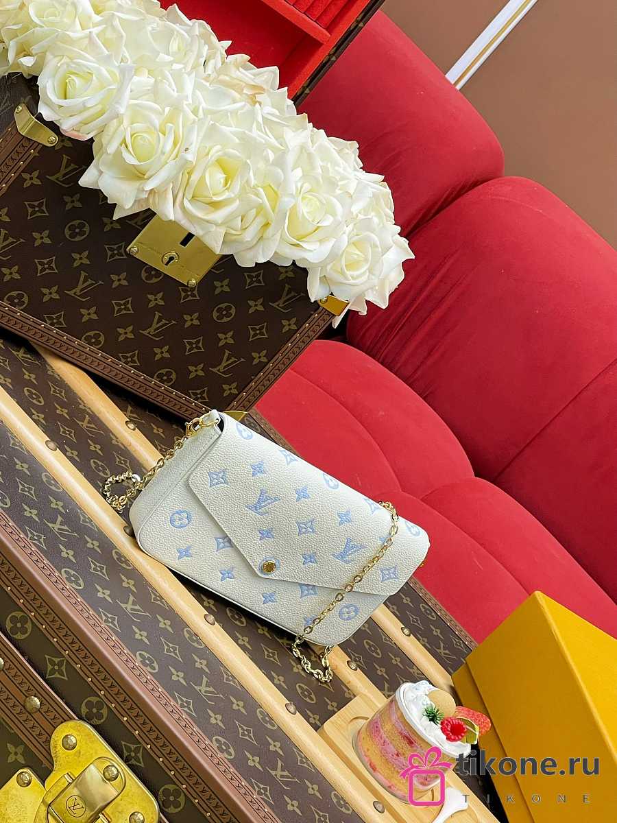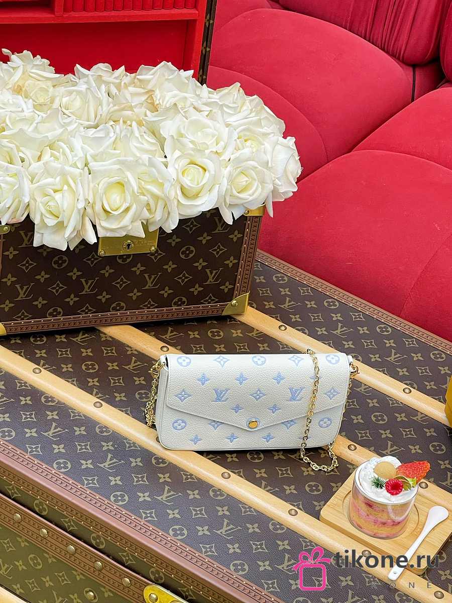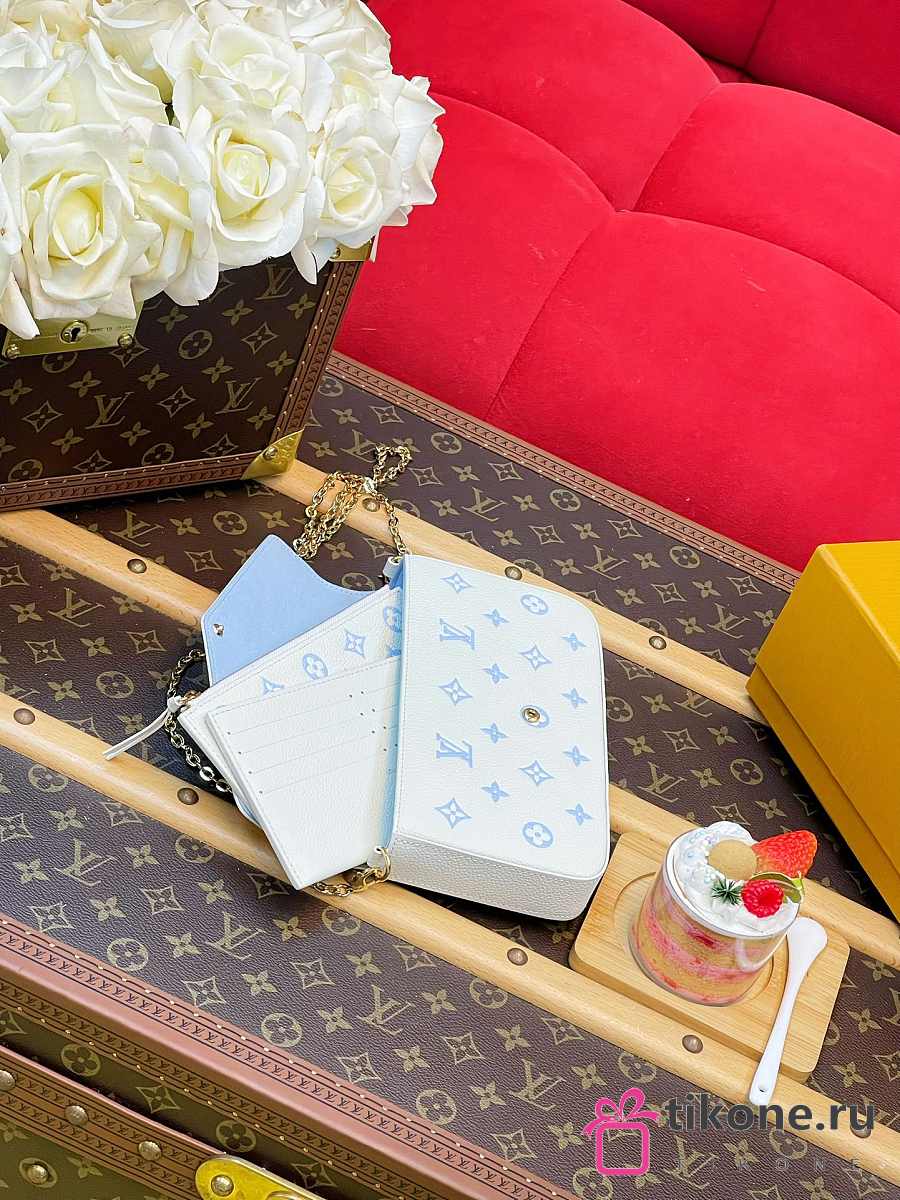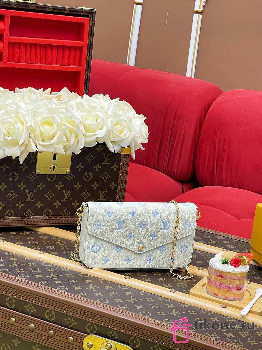 LV Pochette Felicie Monogram Empreinte Milky White/ Blue M28127 - 21x12x3cm