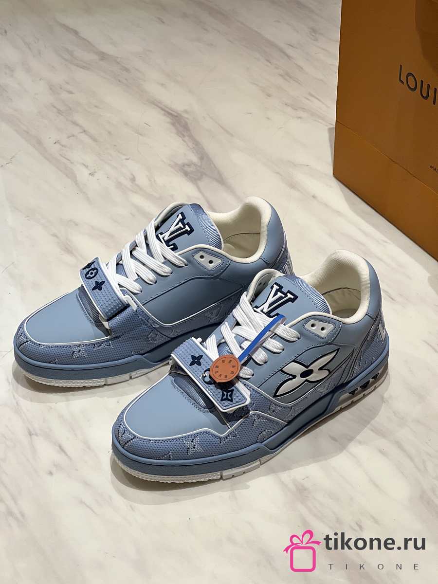 LV Trainer Sneaker Blue Monogram Nubuck Calf Leather 1AHTV3