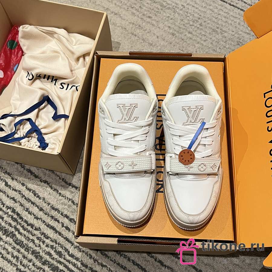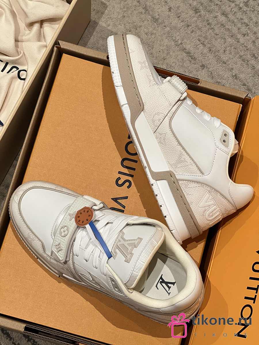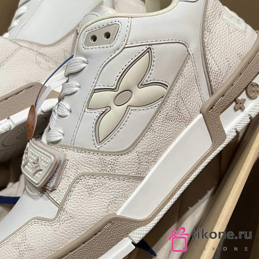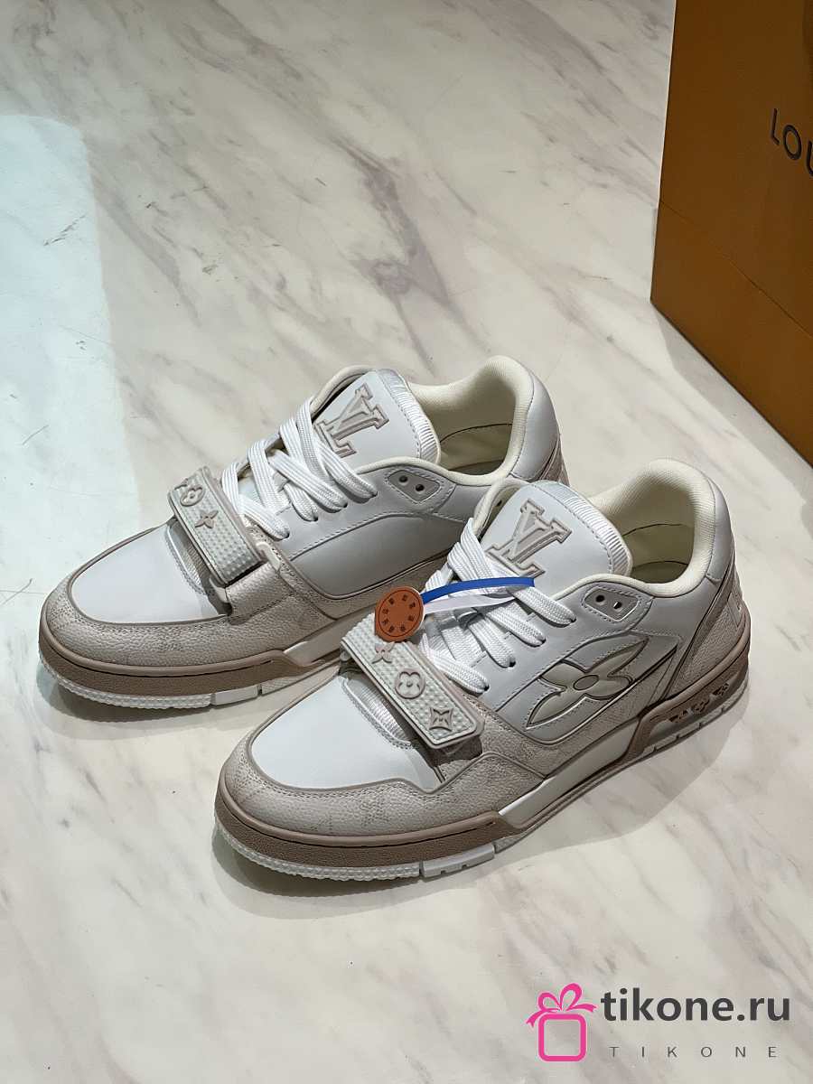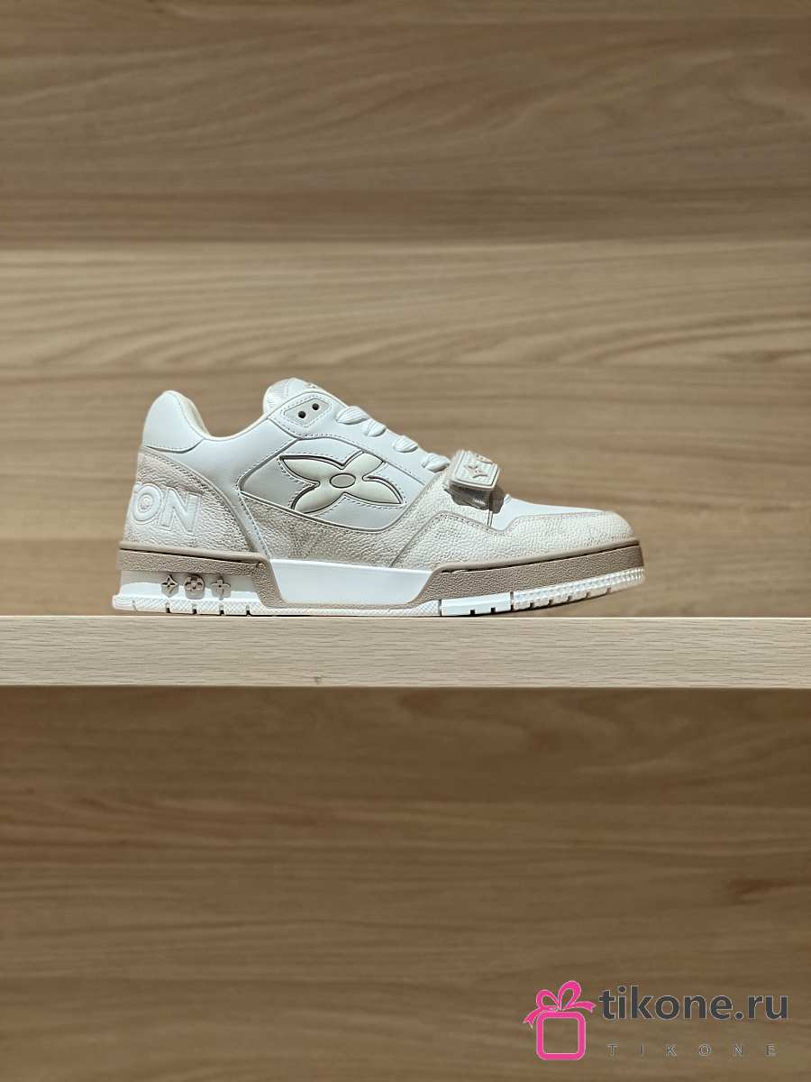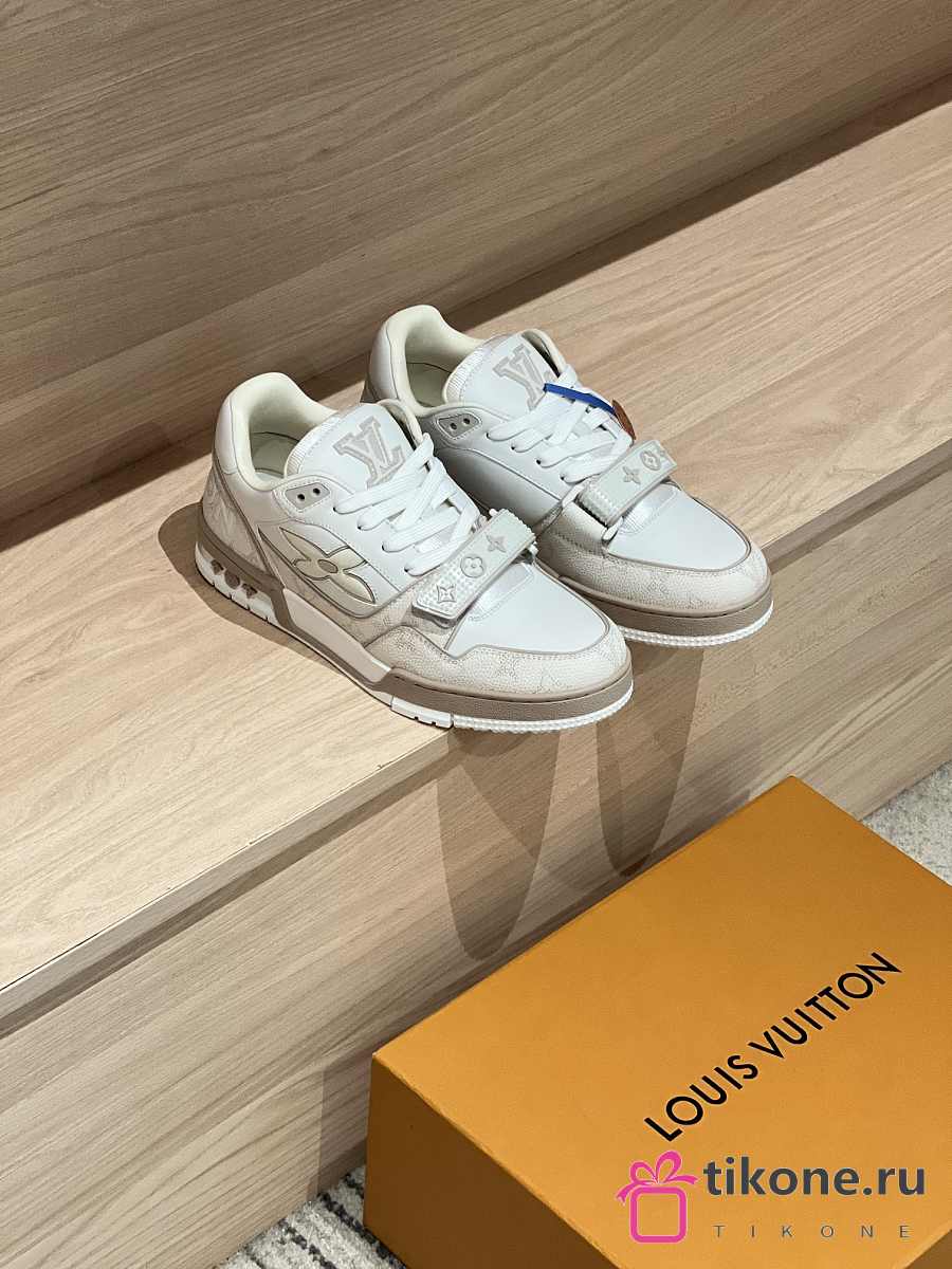 LV Trainer Sneaker Blue Monogram Nubuck Calf Leather Beige
