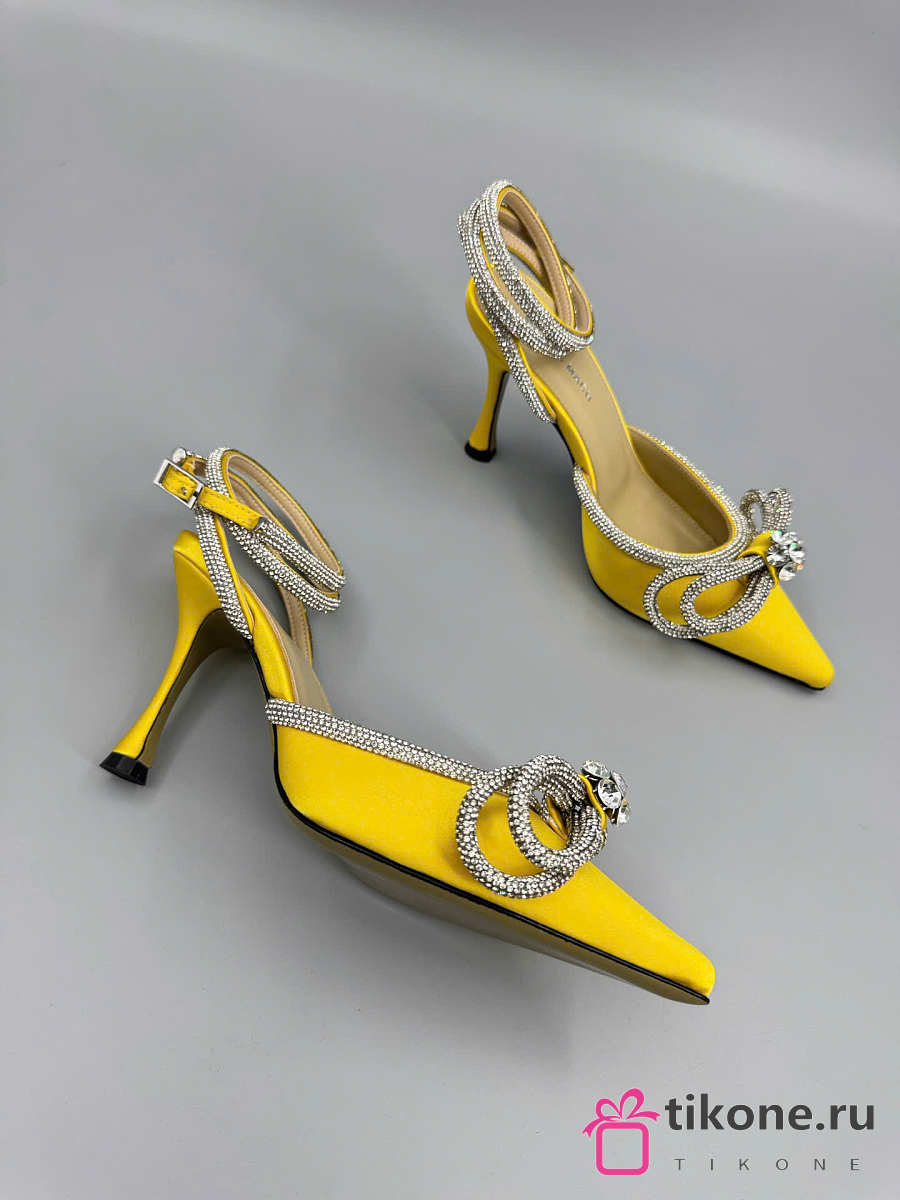 Mach&Mach Double Bow Satin Pumps 100mm Yellow