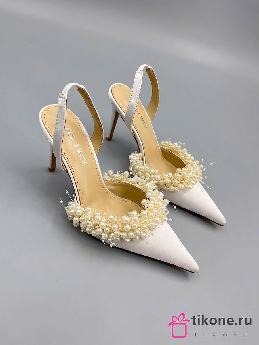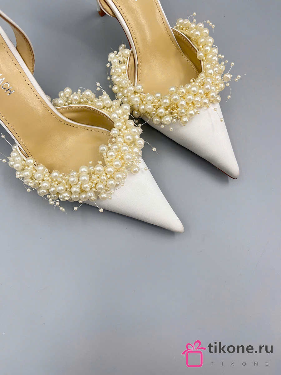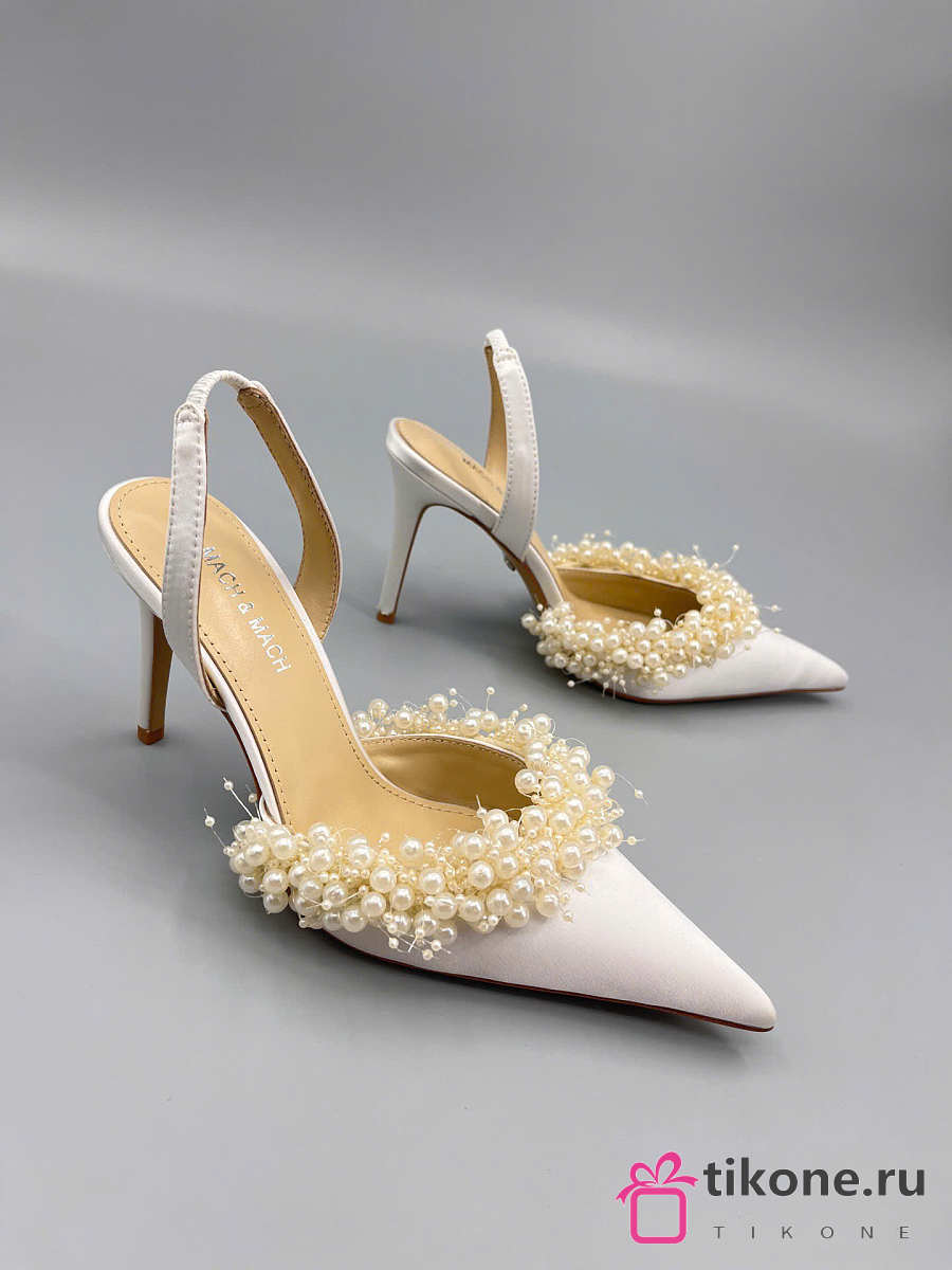 Mach&Mach Floating Pearl Slingbacks Satin White 85mm