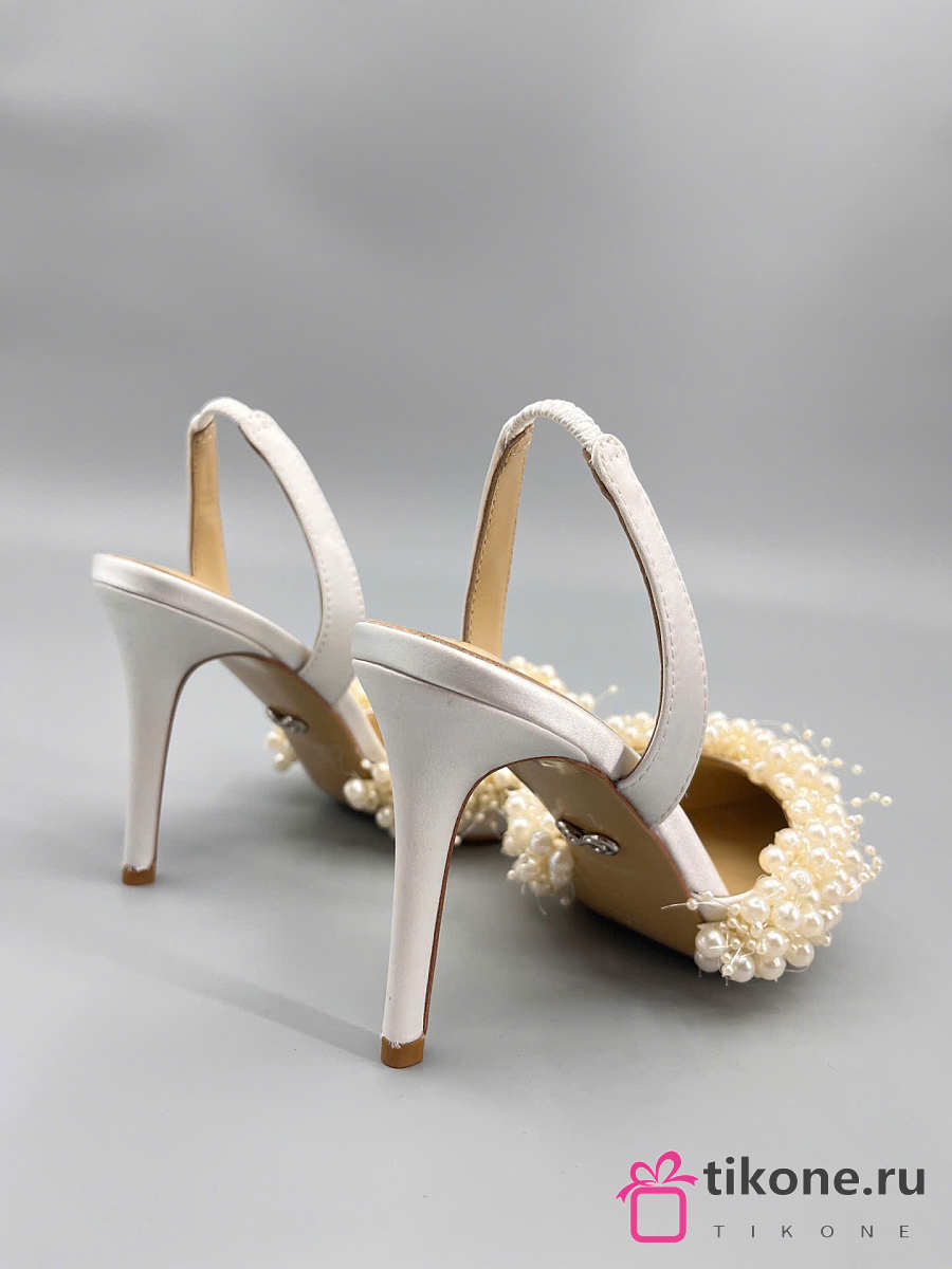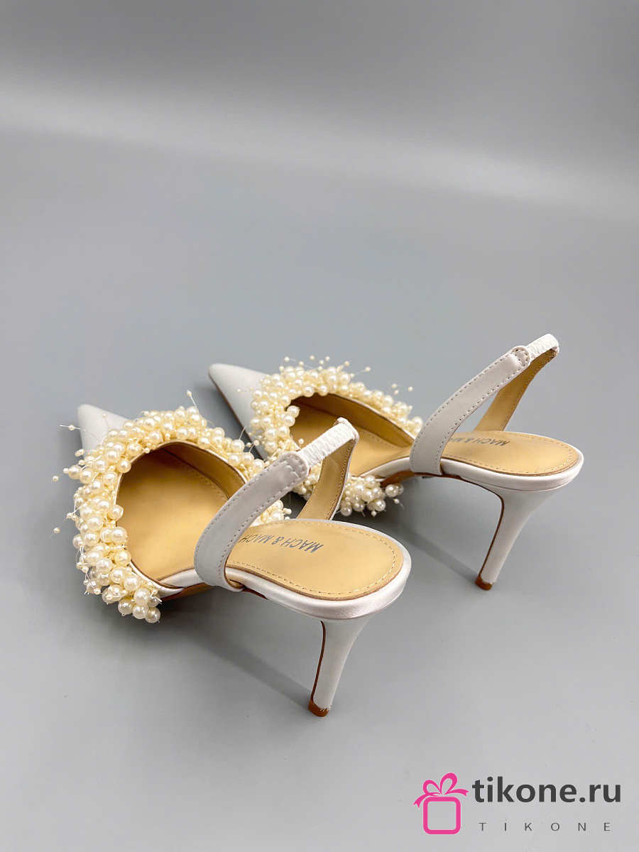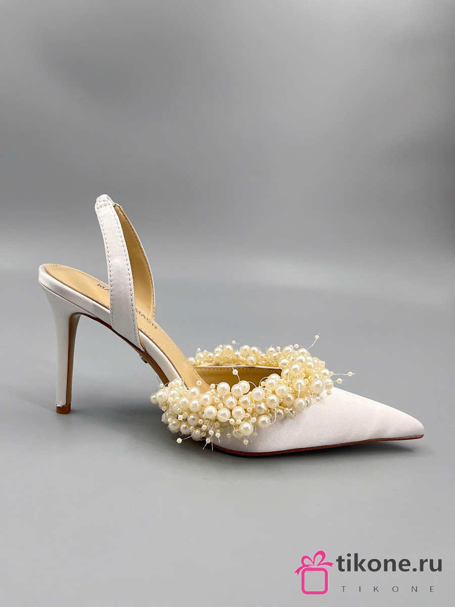 Mach&Mach Floating Pearl Slingbacks Satin White 85mm