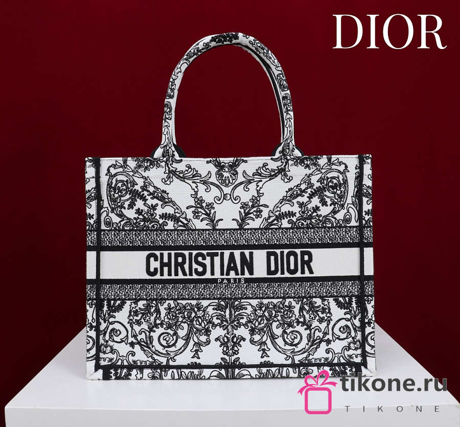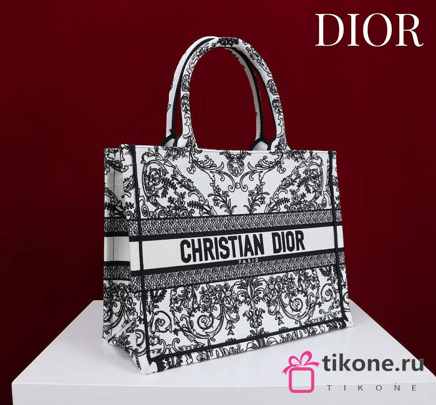 Medium Dior Book Tote Black and White-Tone Dioresque Butterfly Cornely Embroidery - 36x27.5x16.5cm