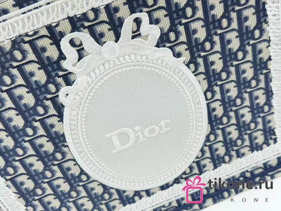Medium Dior Book Tote with Strap Blue Dior Oblique Embroidery and White Lace - 36x27.5x16.5cm
