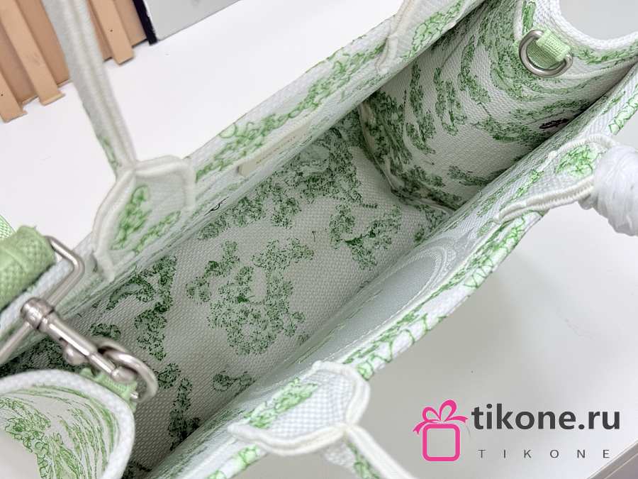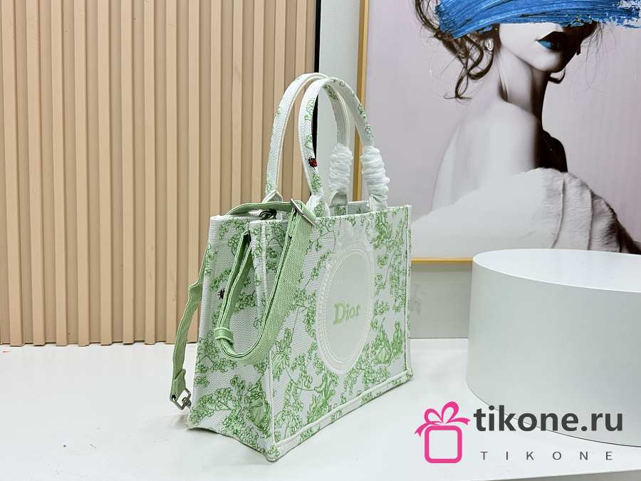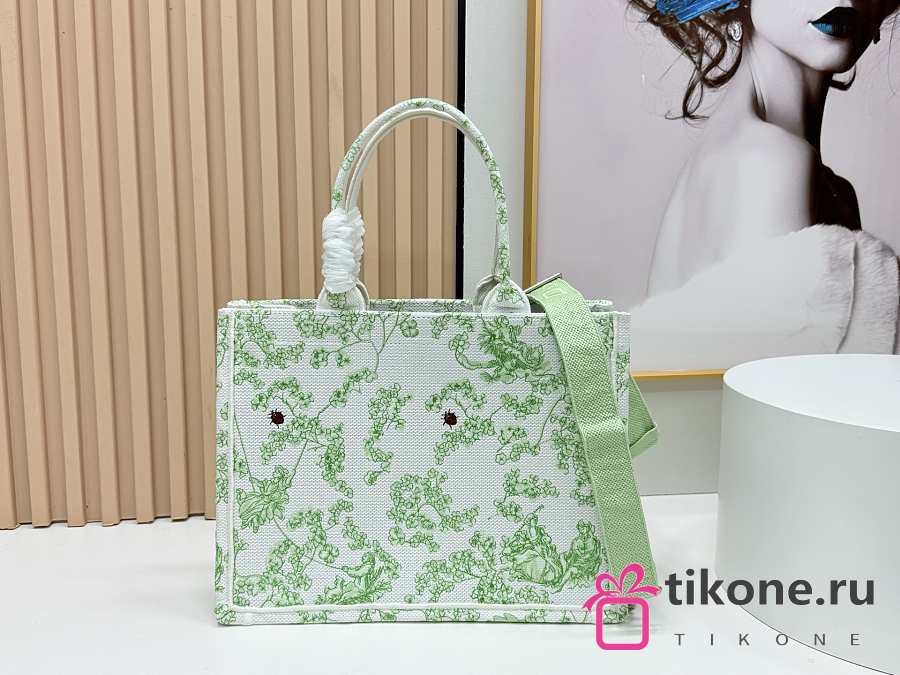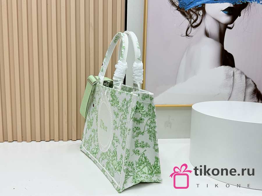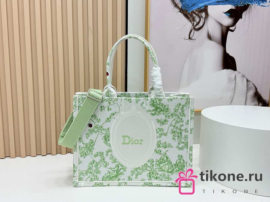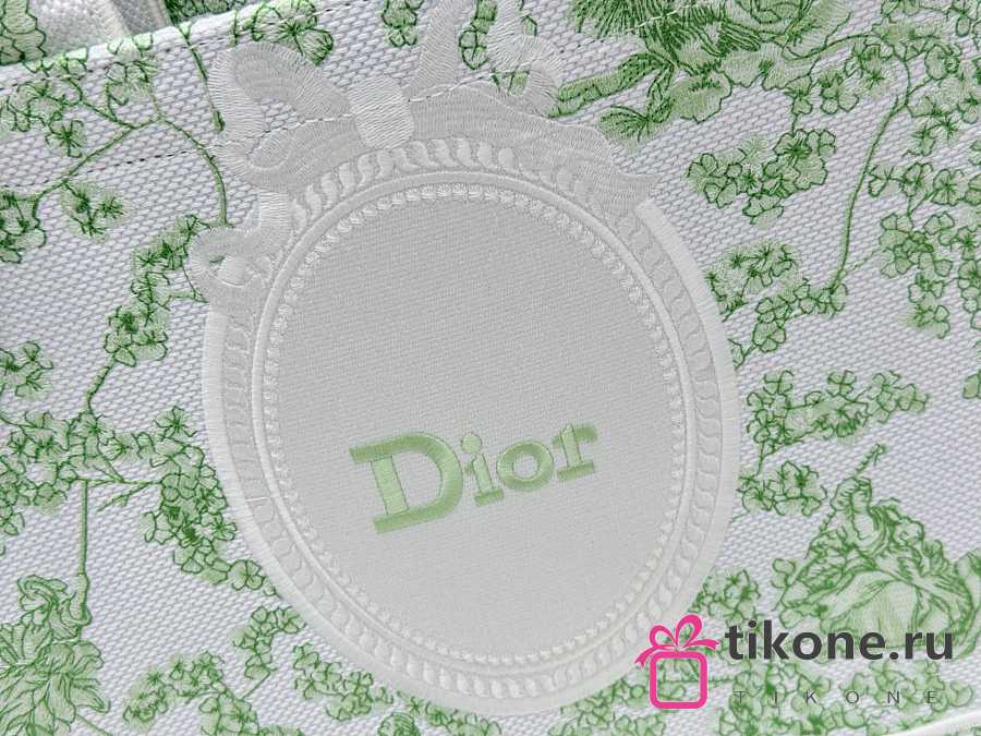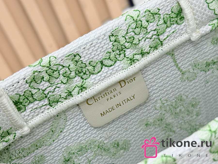 Medium Dior Book Tote with Strap Green Multicolor Toile de Jouy Clover Embroidery and White Dior Medaillon - 36x27.5x16.5cm