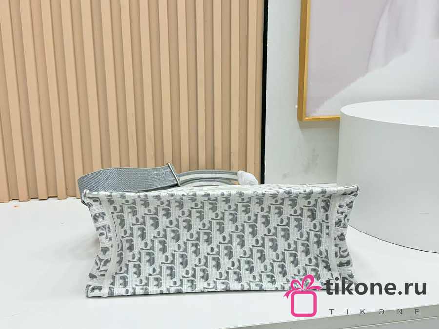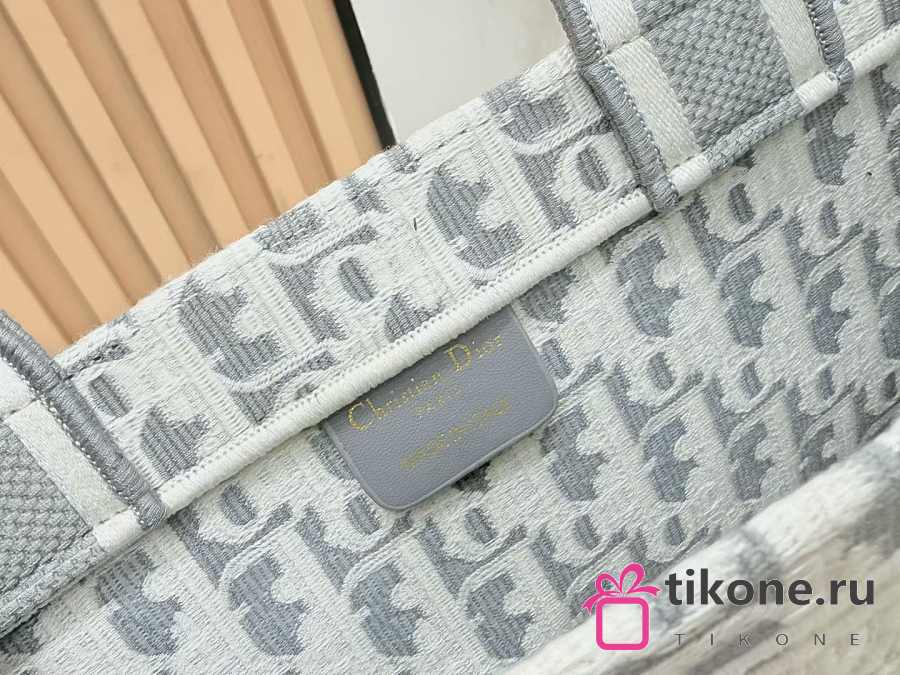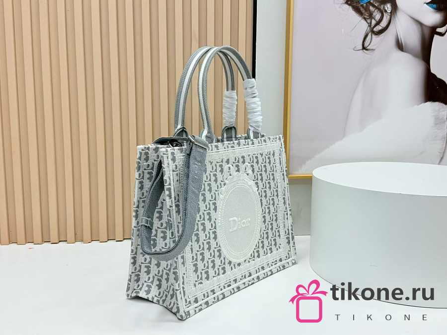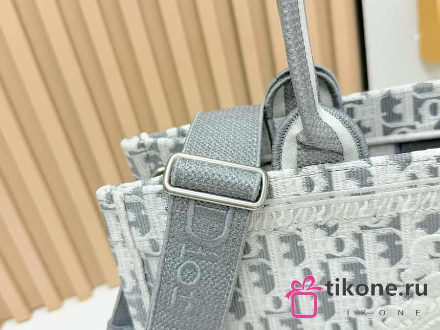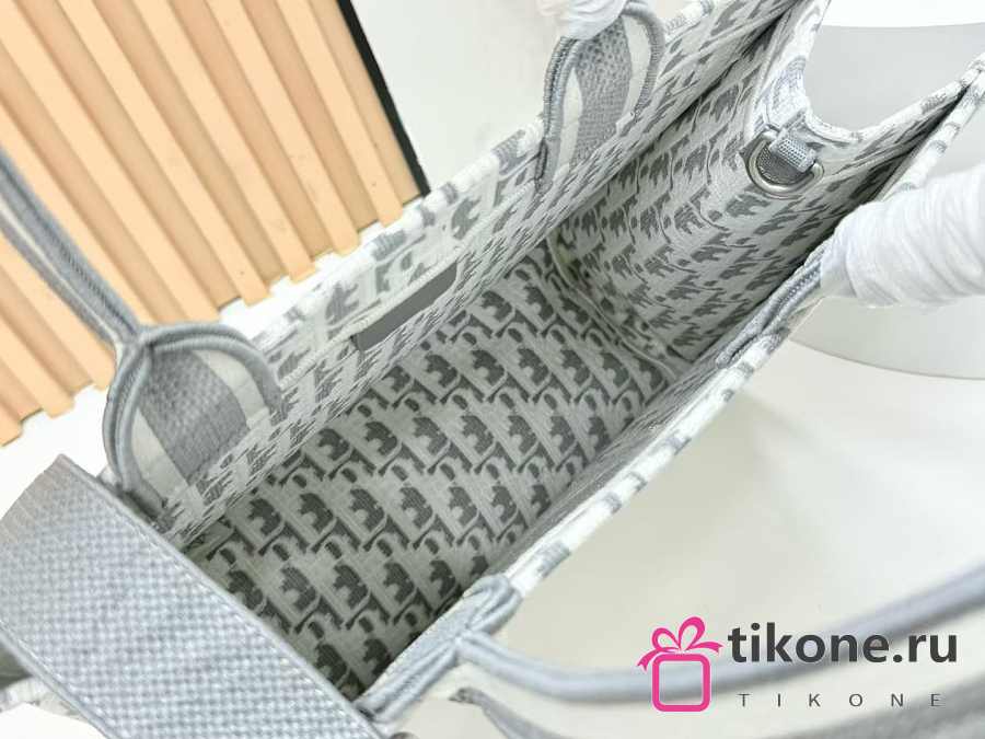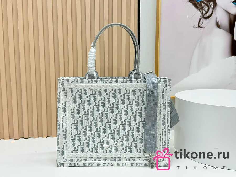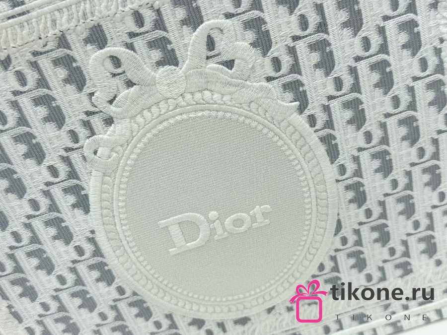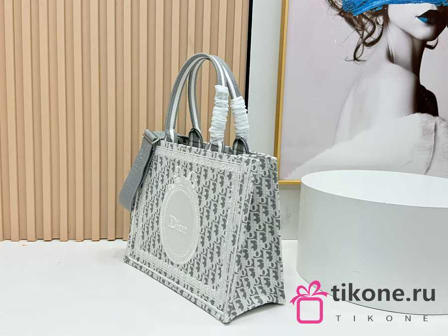 Medium Dior Book Tote with Strap Latte and Gray Dior Oblique Embroidery and White Lace - 36x27.5x16.5cm