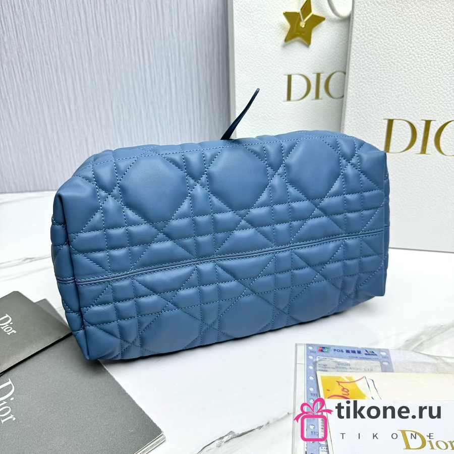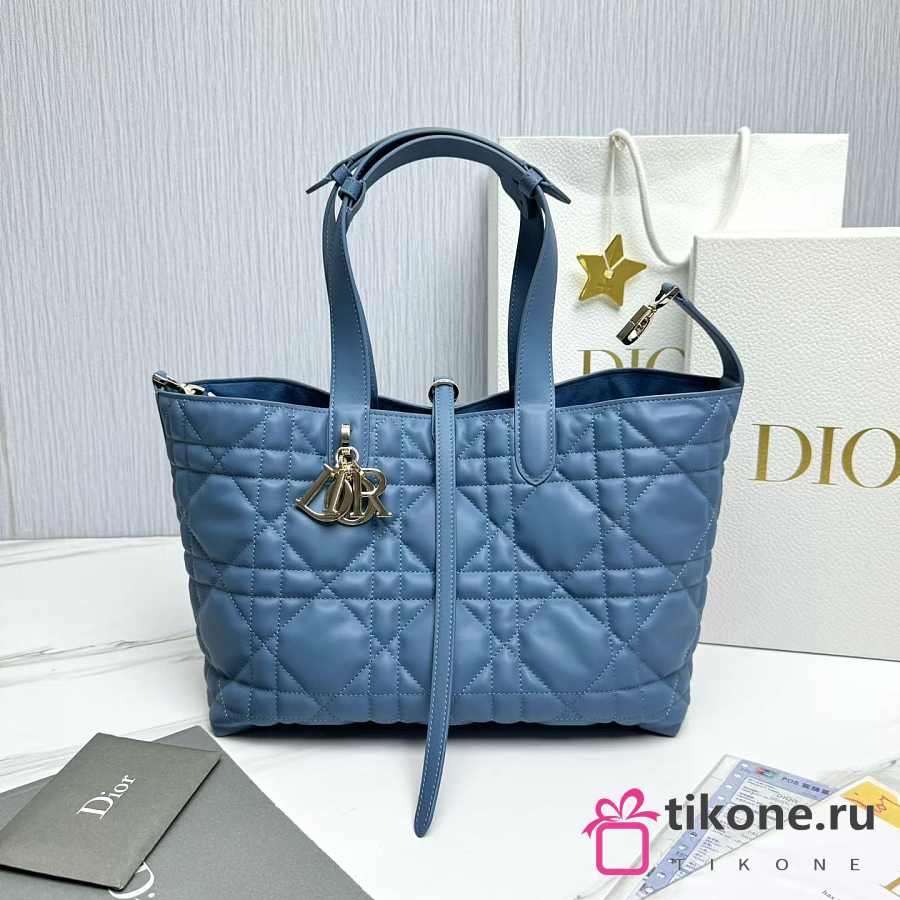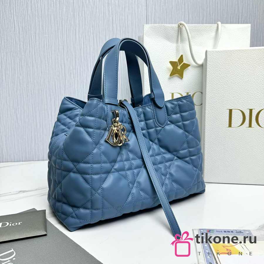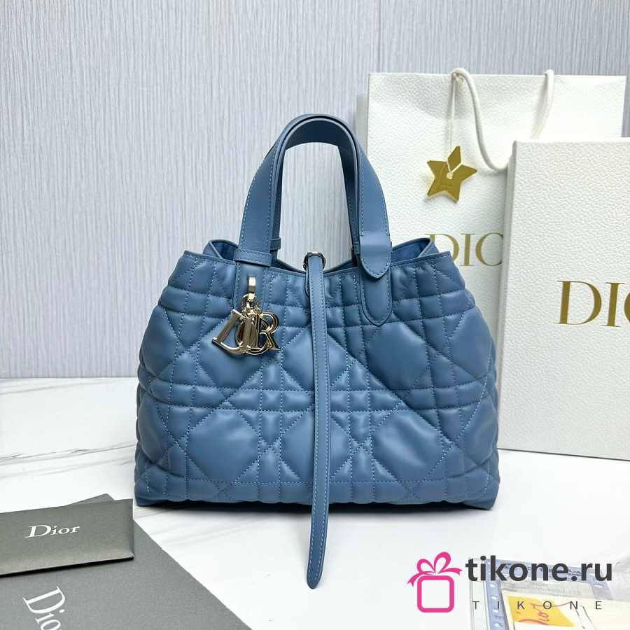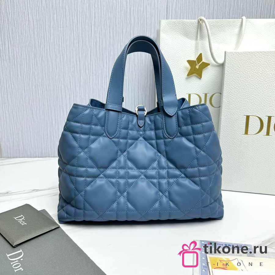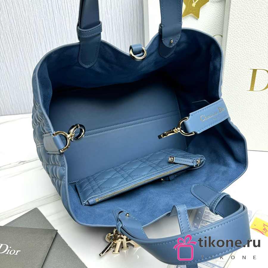 Medium Dior Toujours Bag Denim Blue Macrocannage Calfskin - 28.5x21.5x17cm