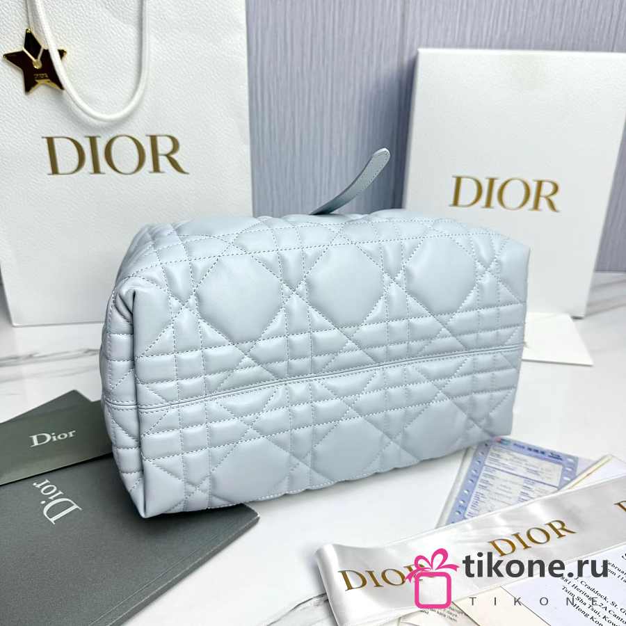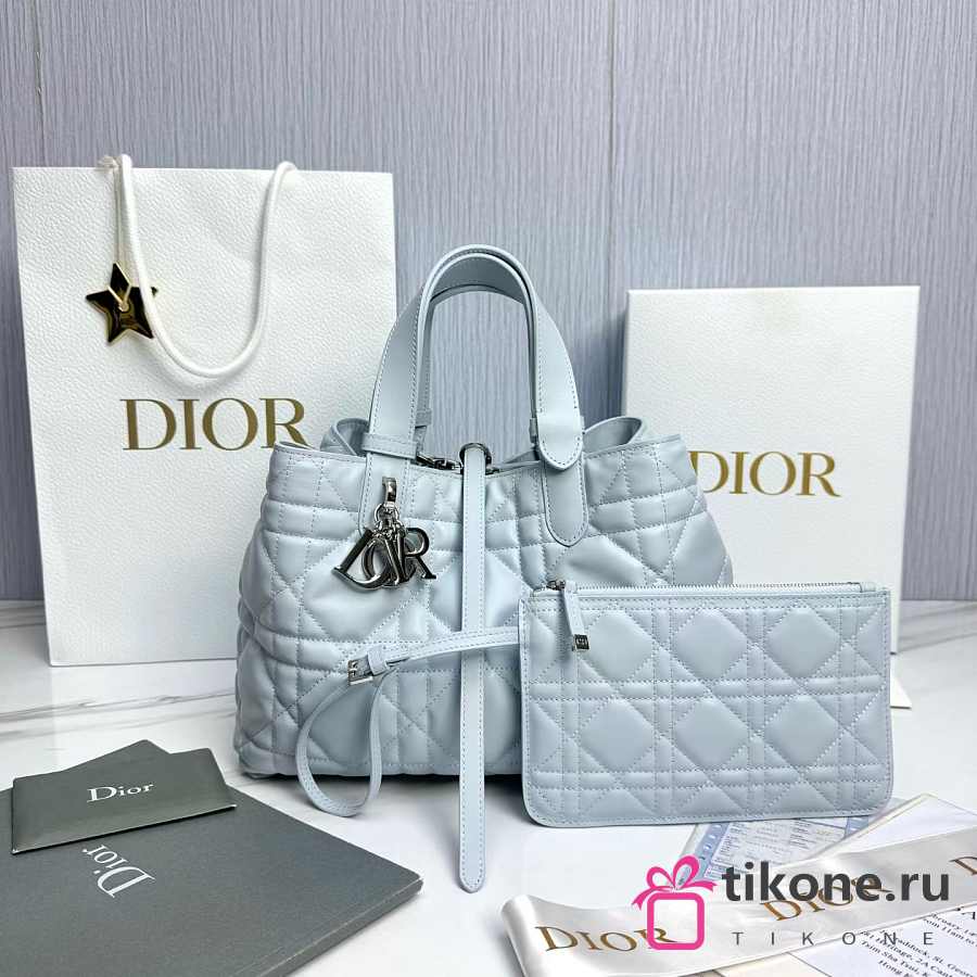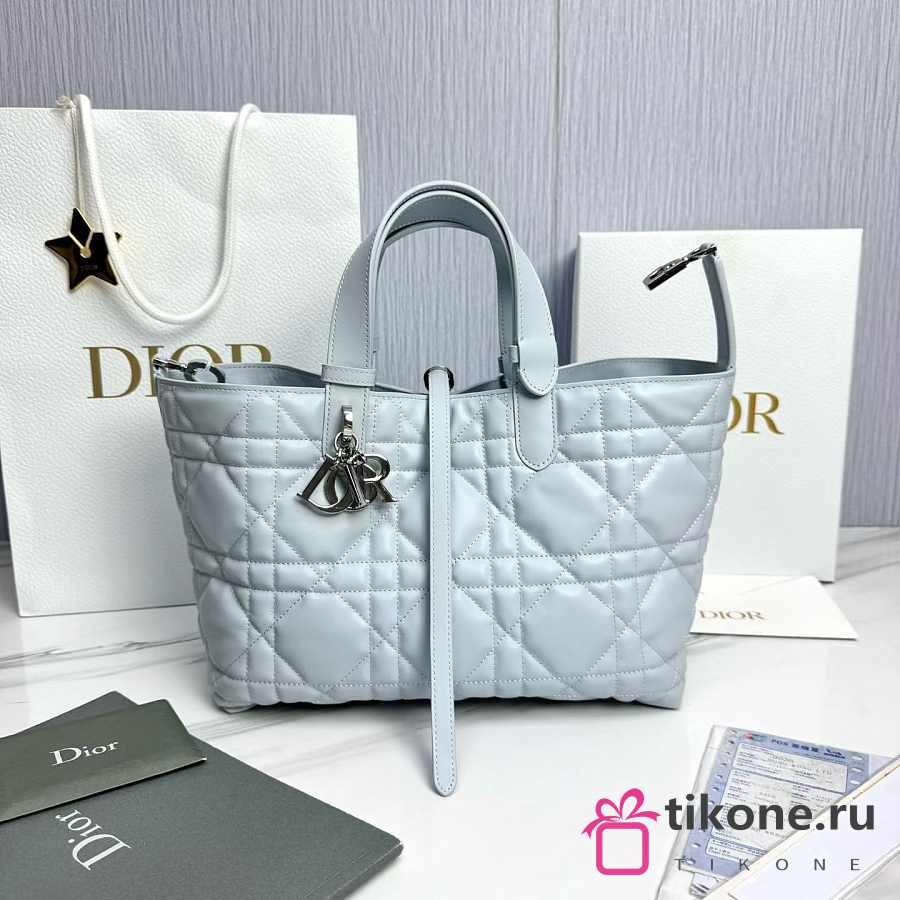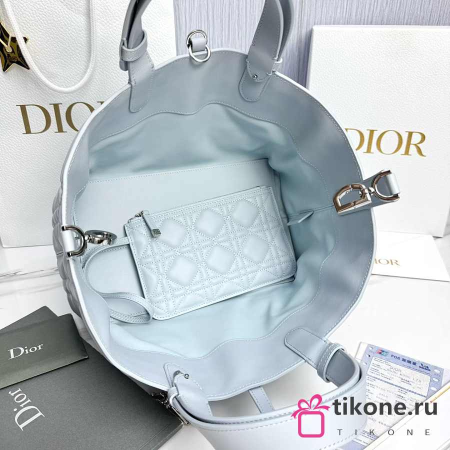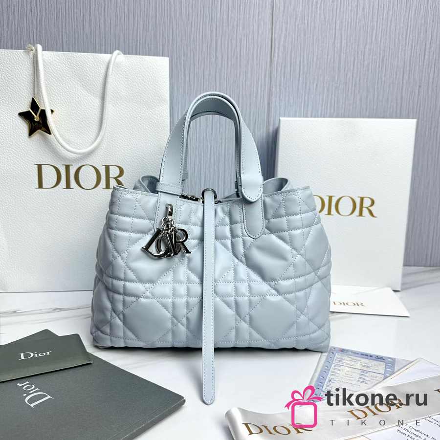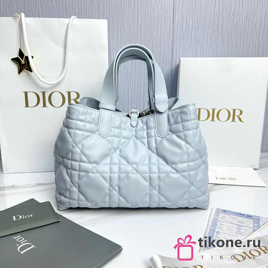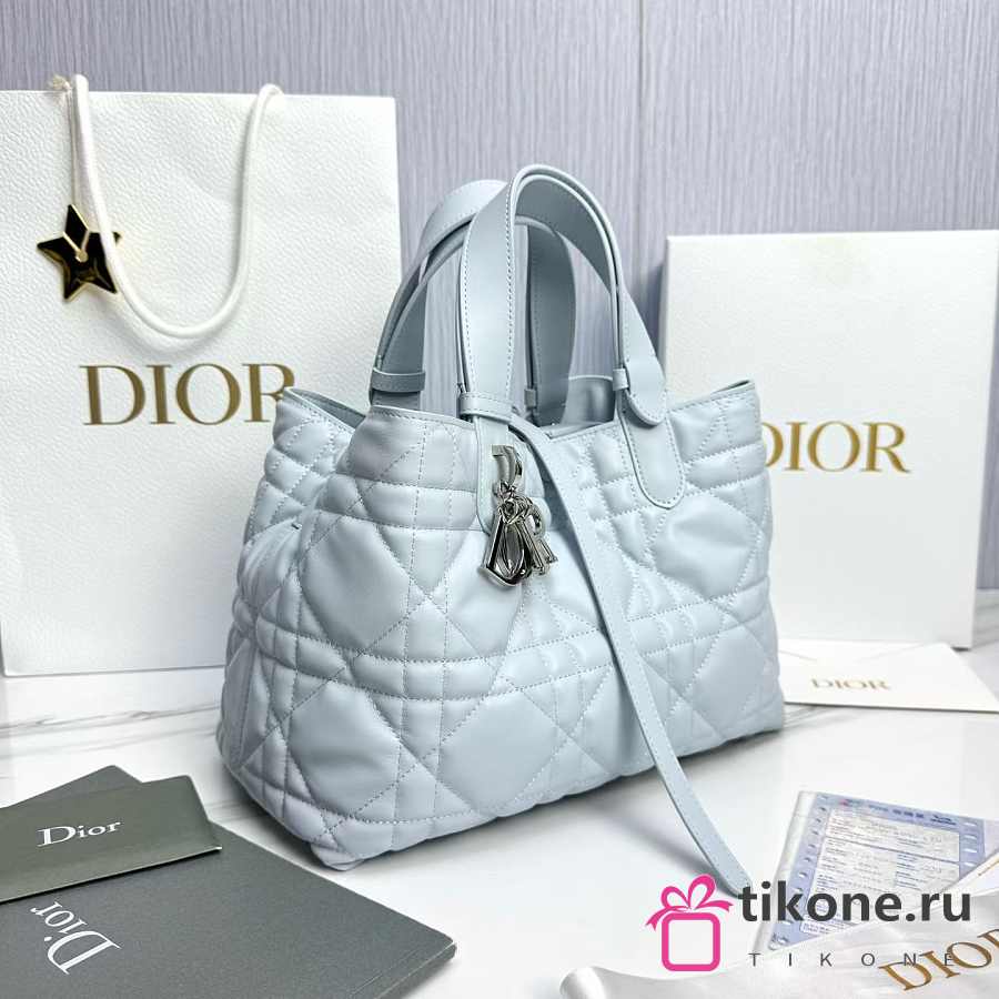 Medium Dior Toujours Bag Ice Blue Macrocannage Calfskin - 28.5x21.5x17cm