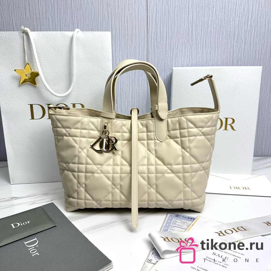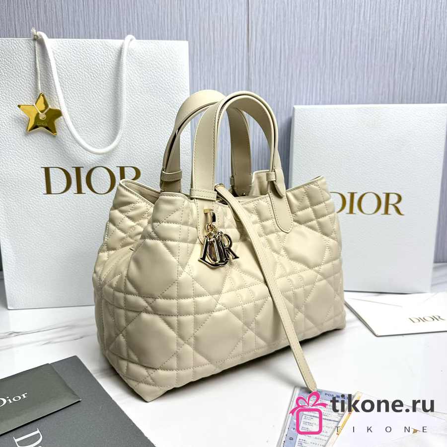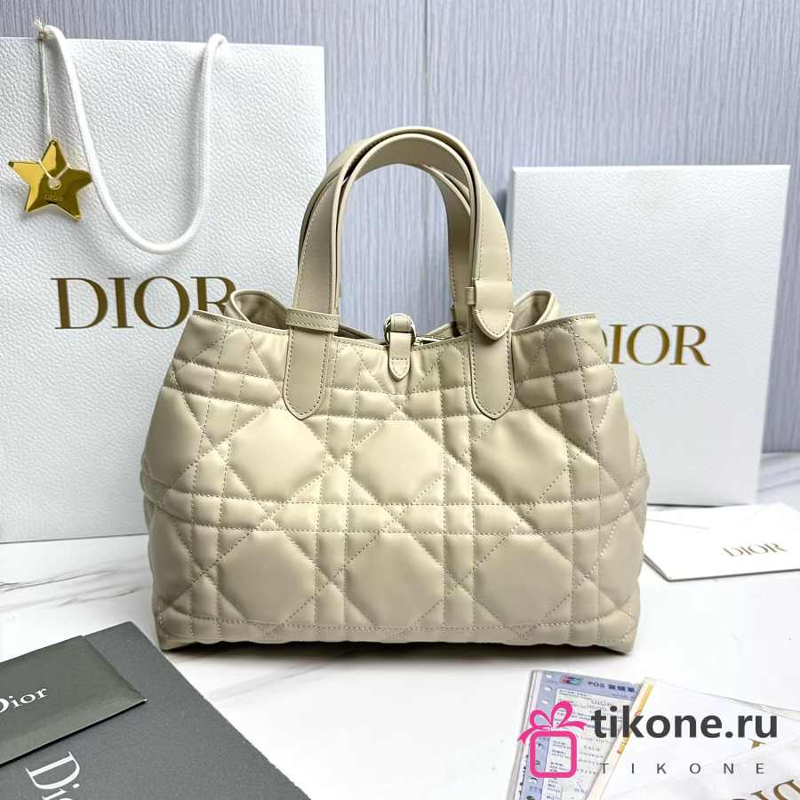Medium Dior Toujours Bag Light Beige Macrocannage Calfskin - 28.5x21.5x17cm