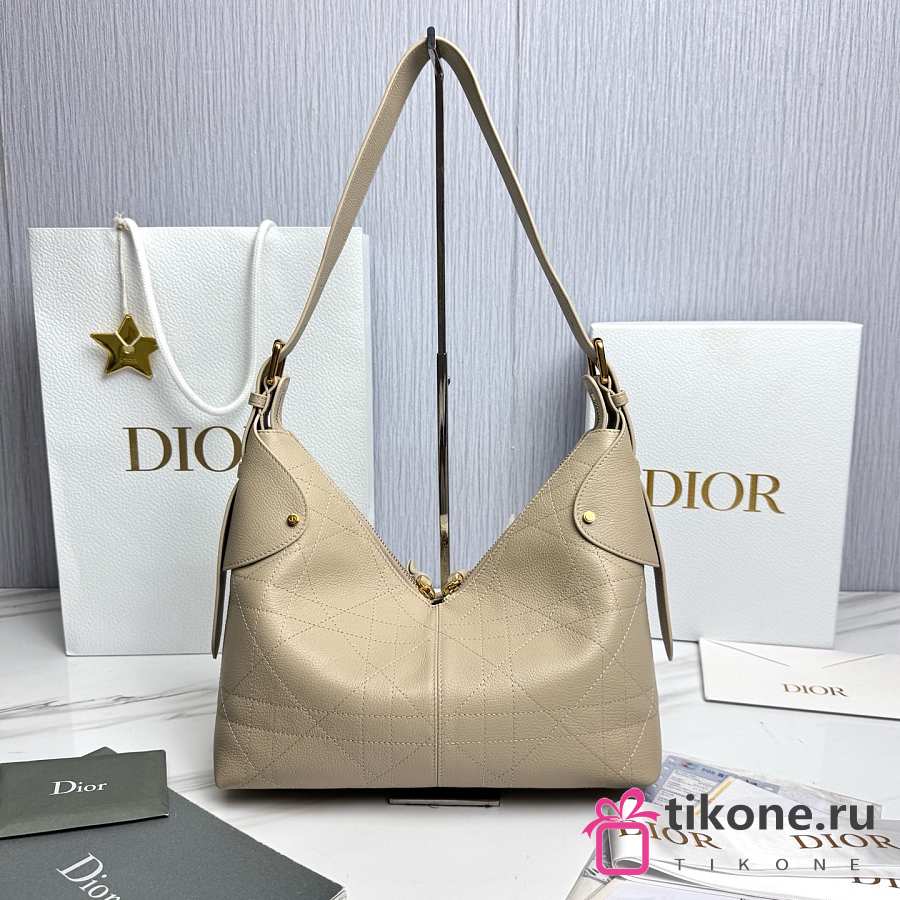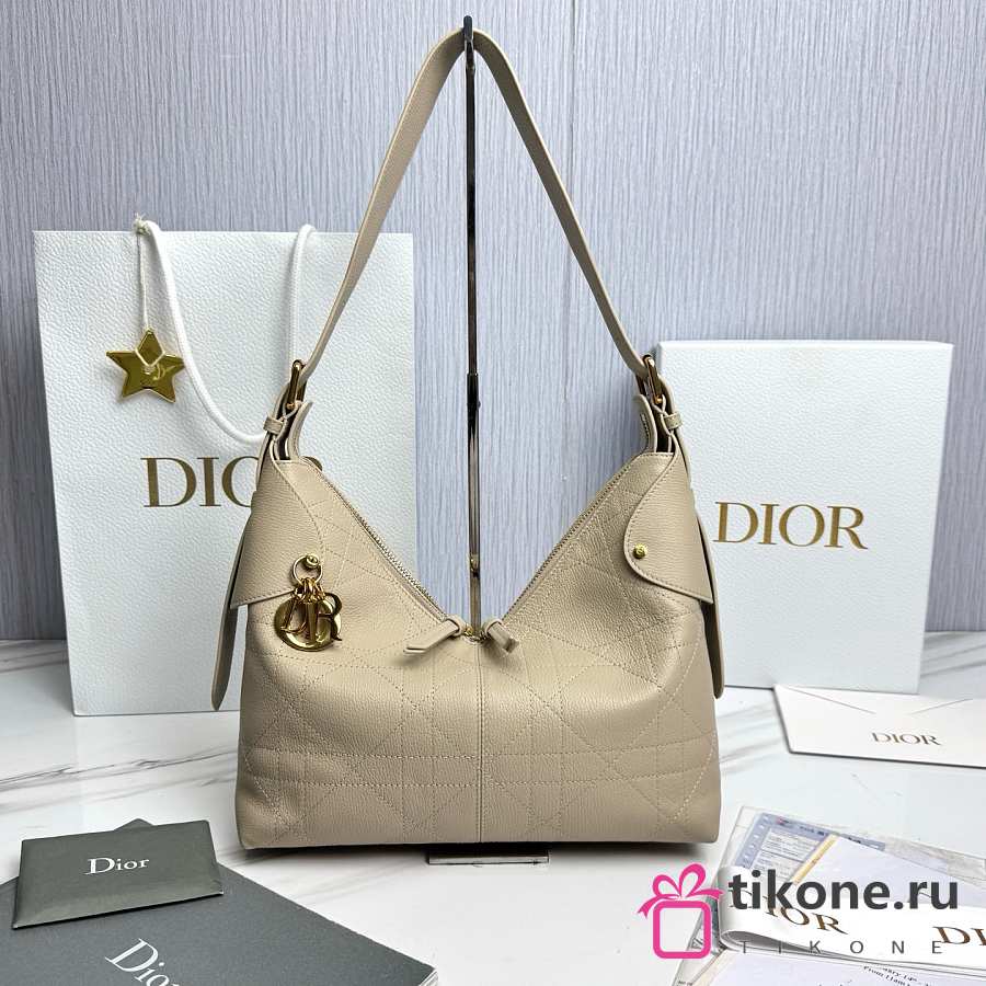 Medium Dior Voyage Bag Beige Flat Macrocannage Grained Calfskin - 28x18x12cm