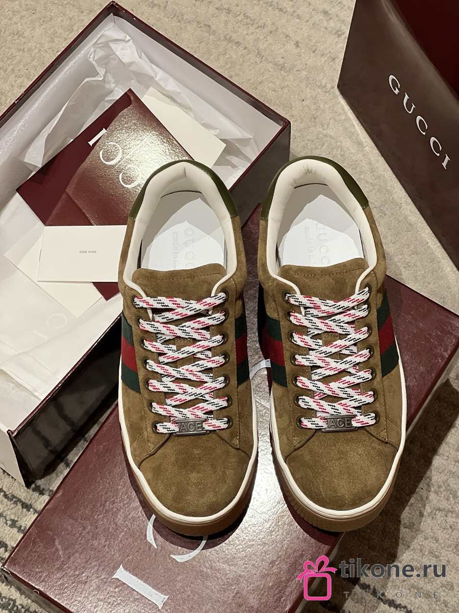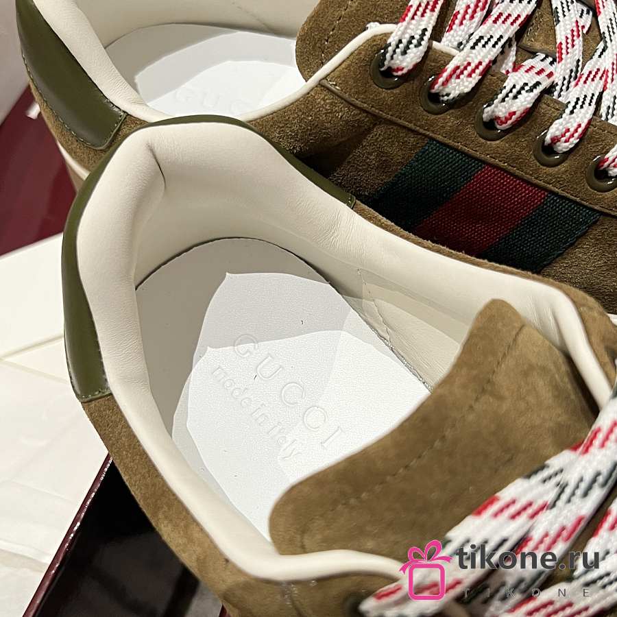 Men's Gucci Ace Sneaker with Web Forest Green Suede