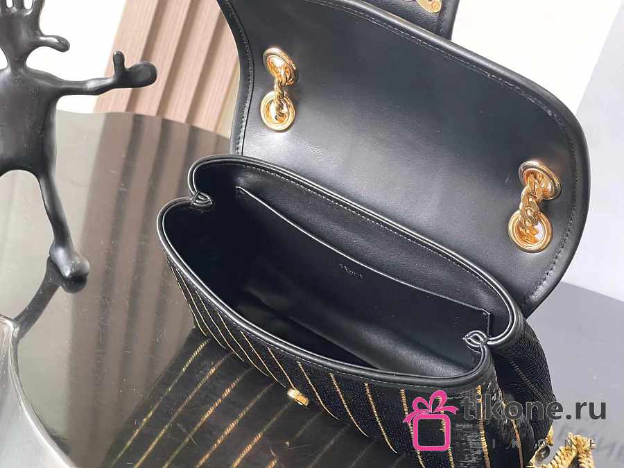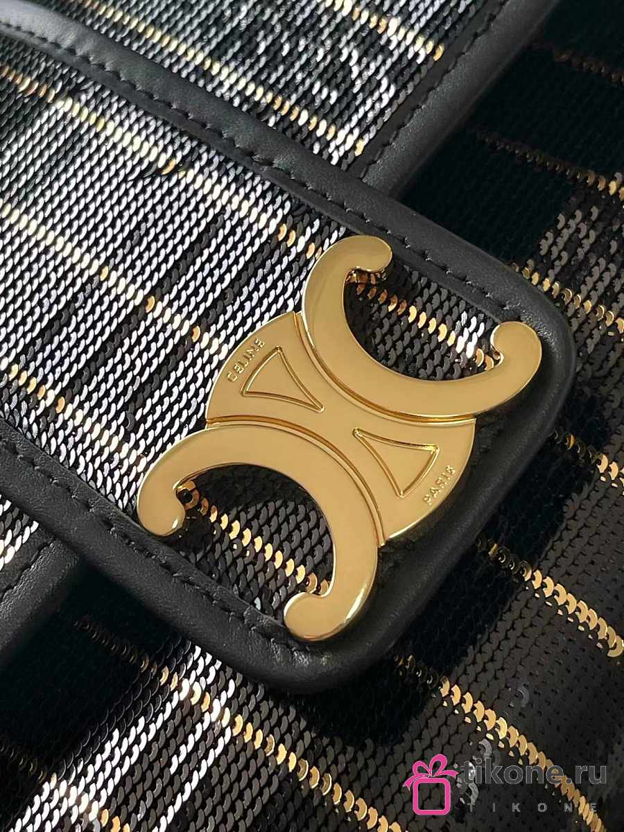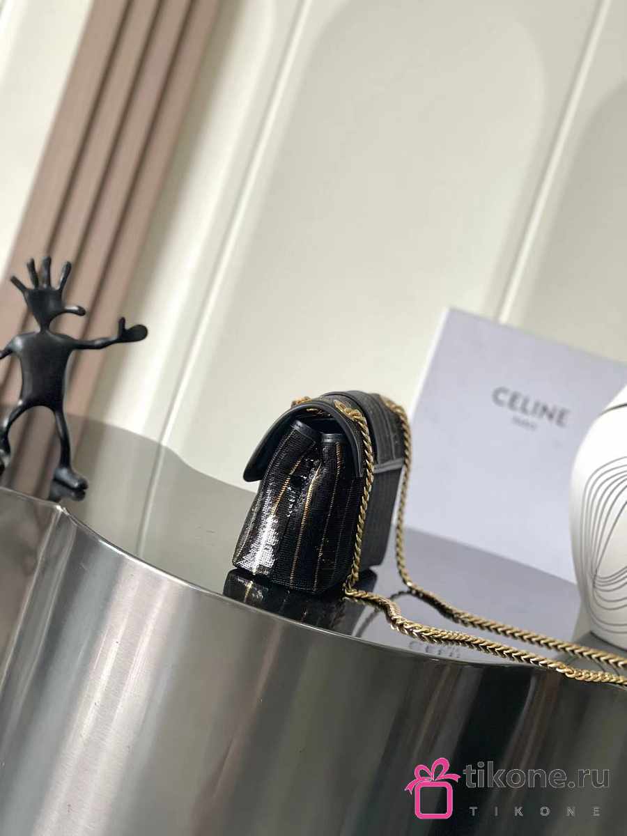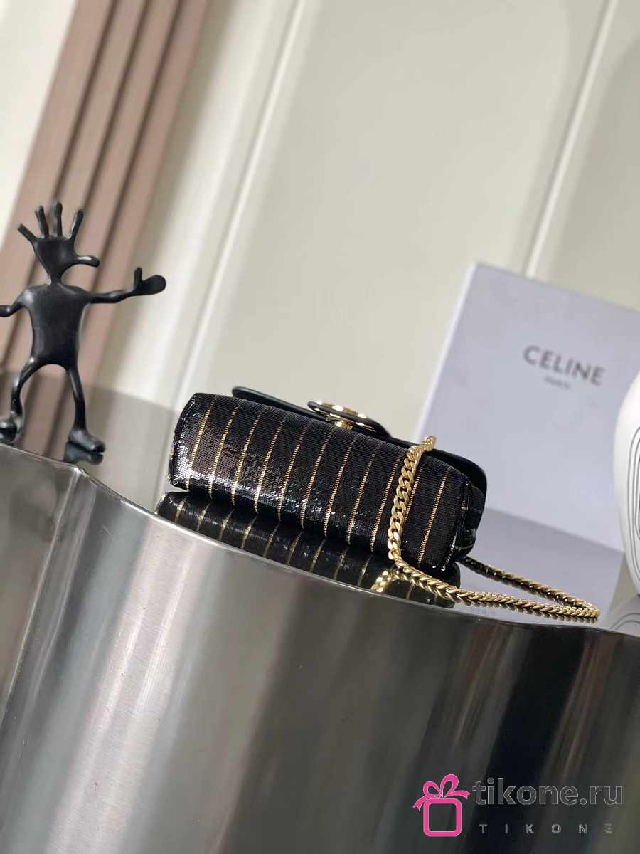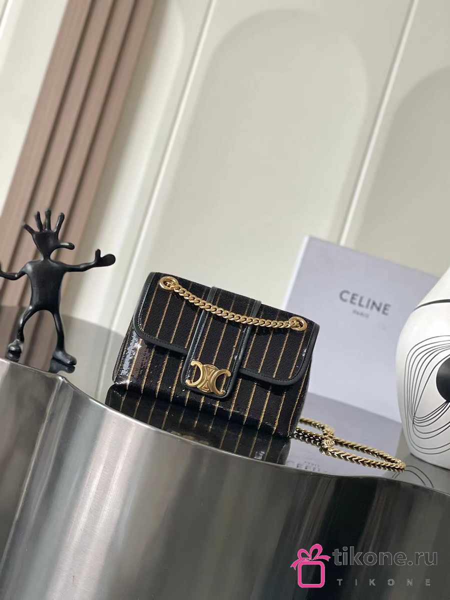 Mini Celine Victoire In Striped Sequins Black/Gold - 16.5x12.5x10cm
