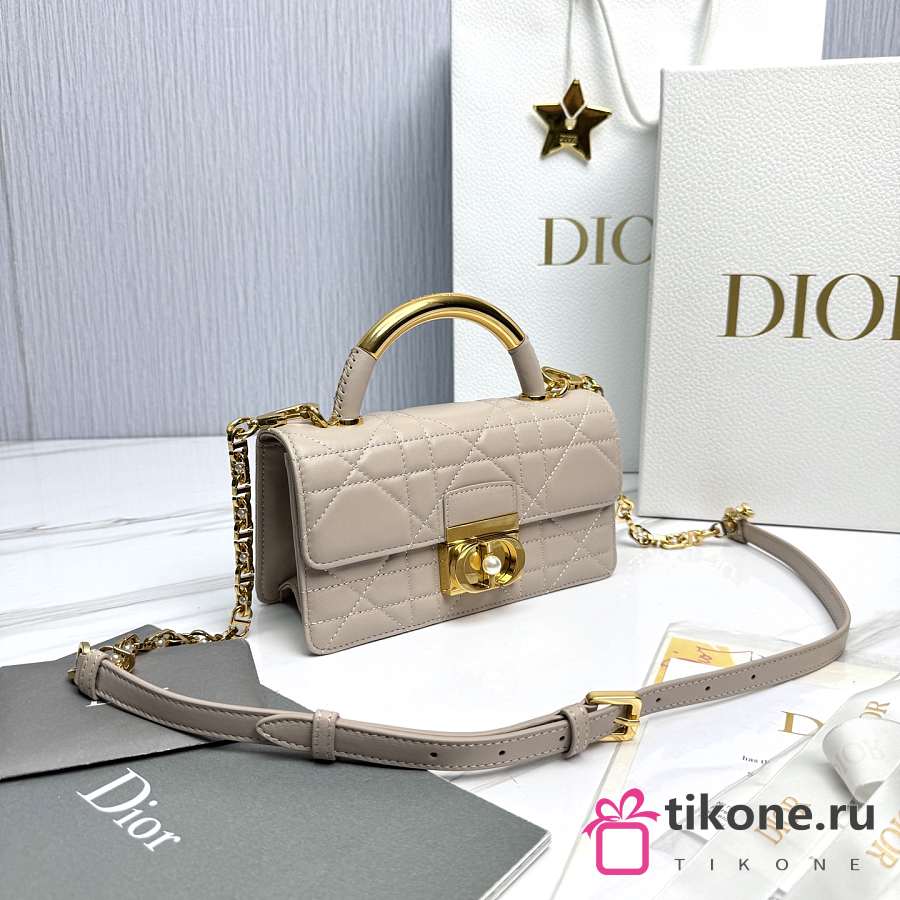 Mini Dior Ange Bag Beige Macrocannage Lambskin - 20x12x5cm