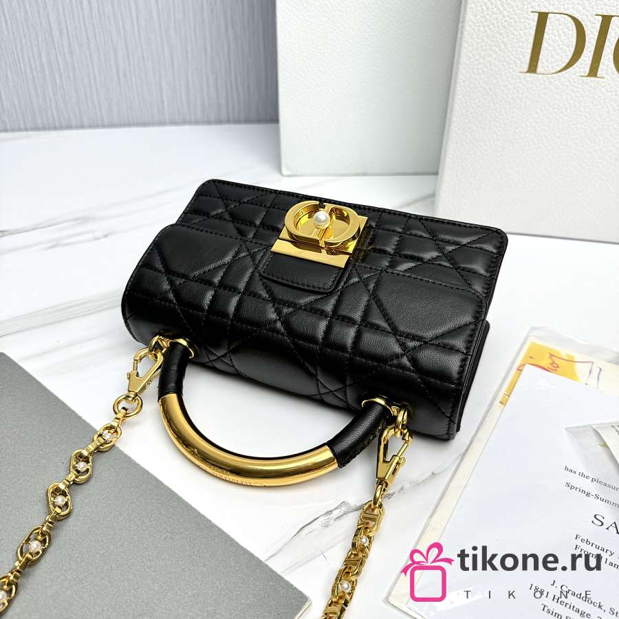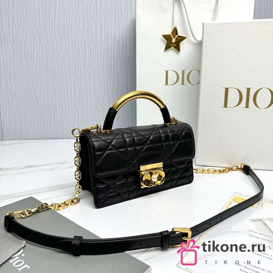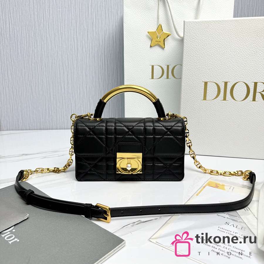 Mini Dior Ange Bag Black Macrocannage Lambskin - 20x12x5cm