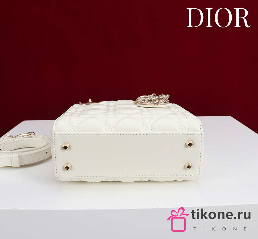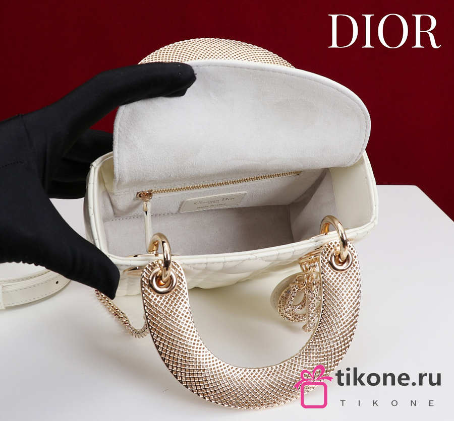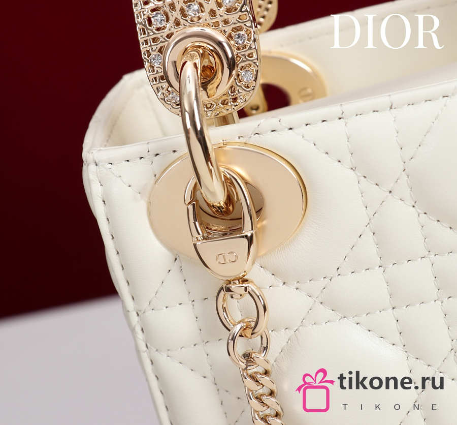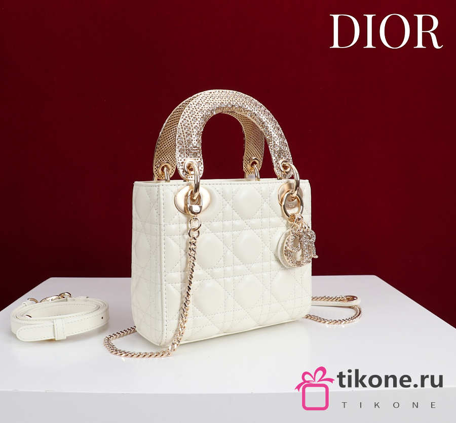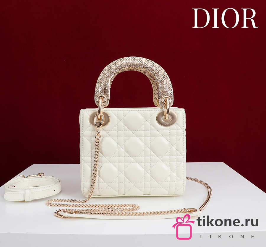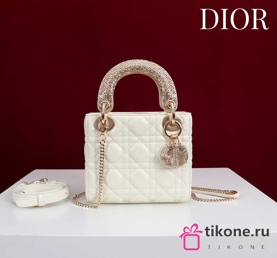 Mini Lady Dior Bag with Crystal Handle Cannage Lambskin White - 17x15x7cm