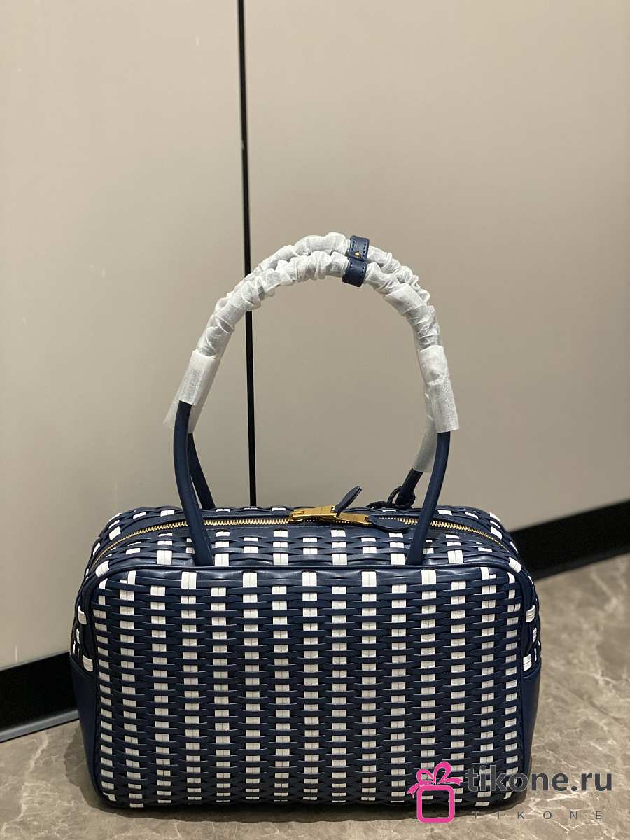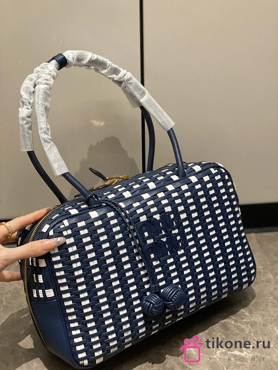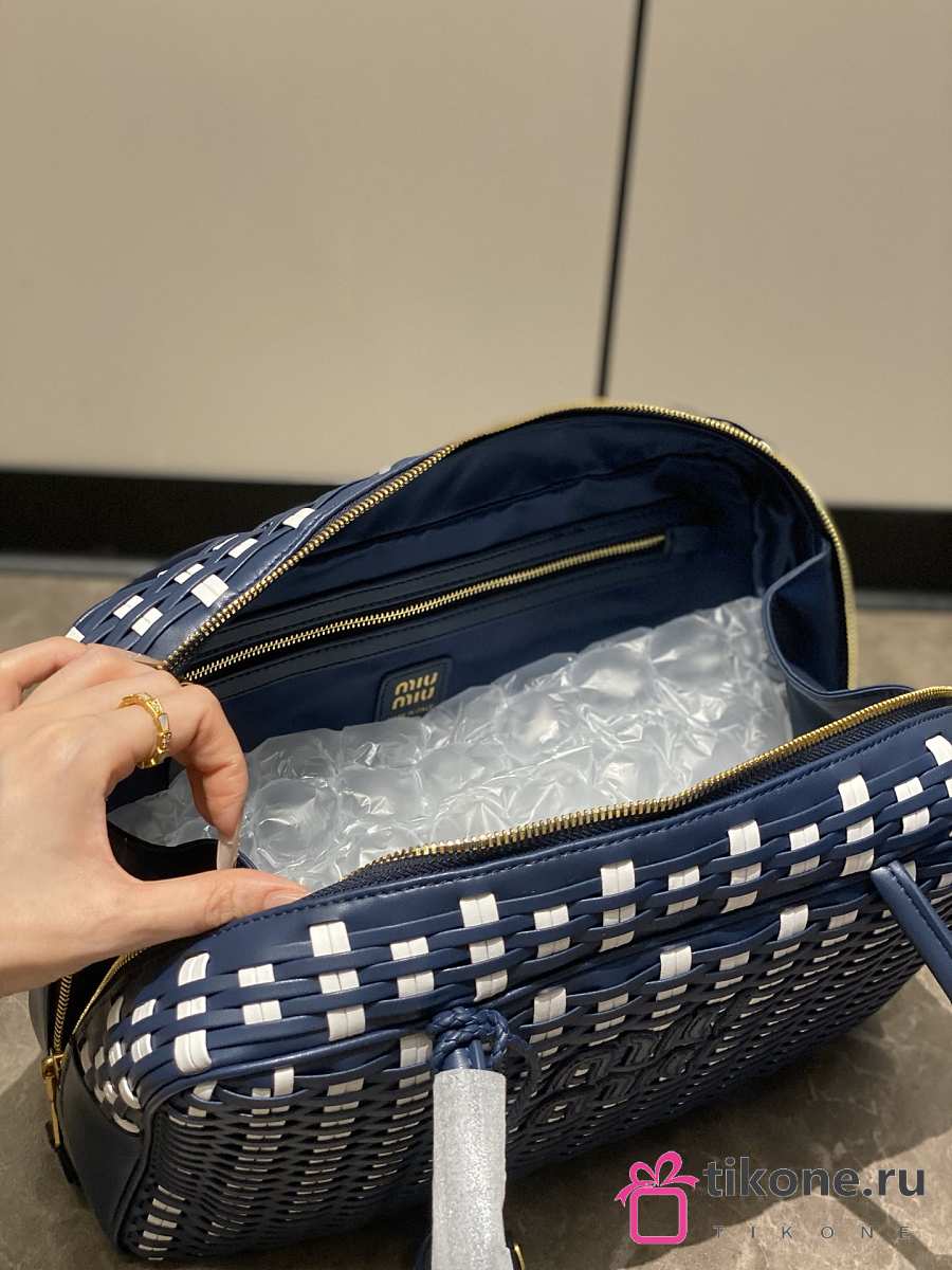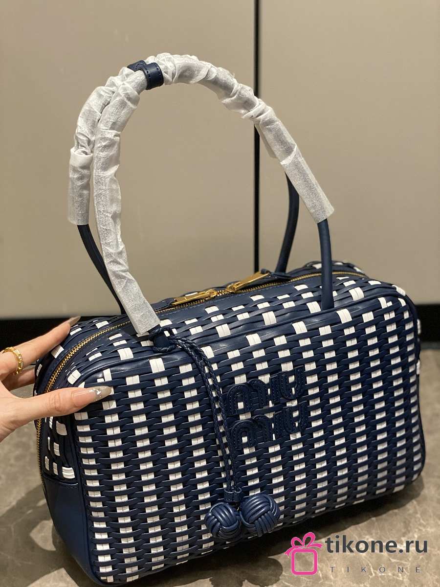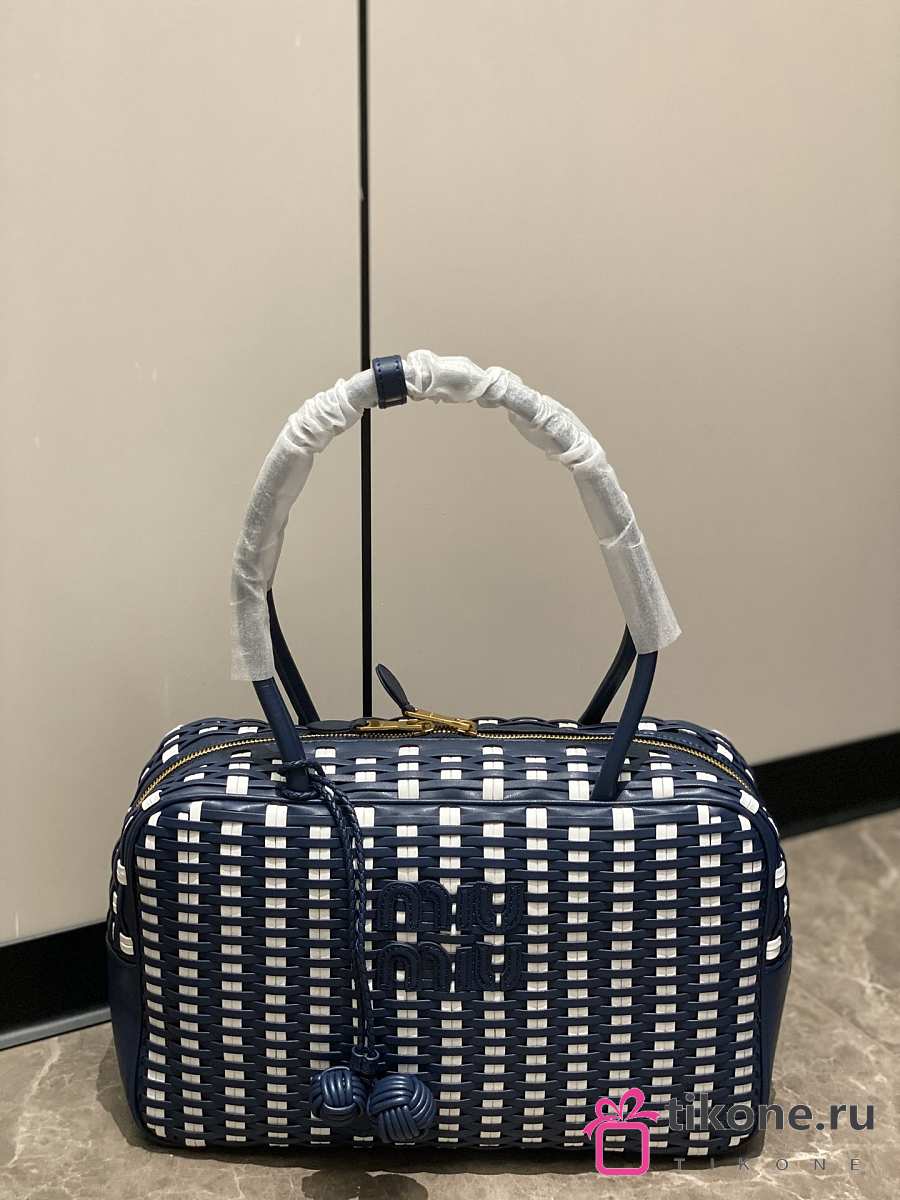Miumiu Beau Leather Bag Bright Blue/White 5BB172 - 30x17x8.5cm