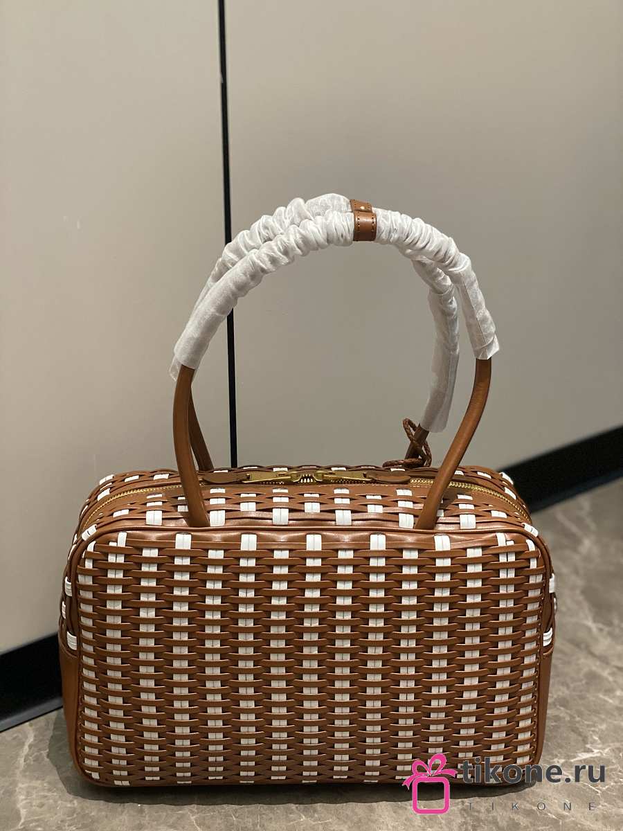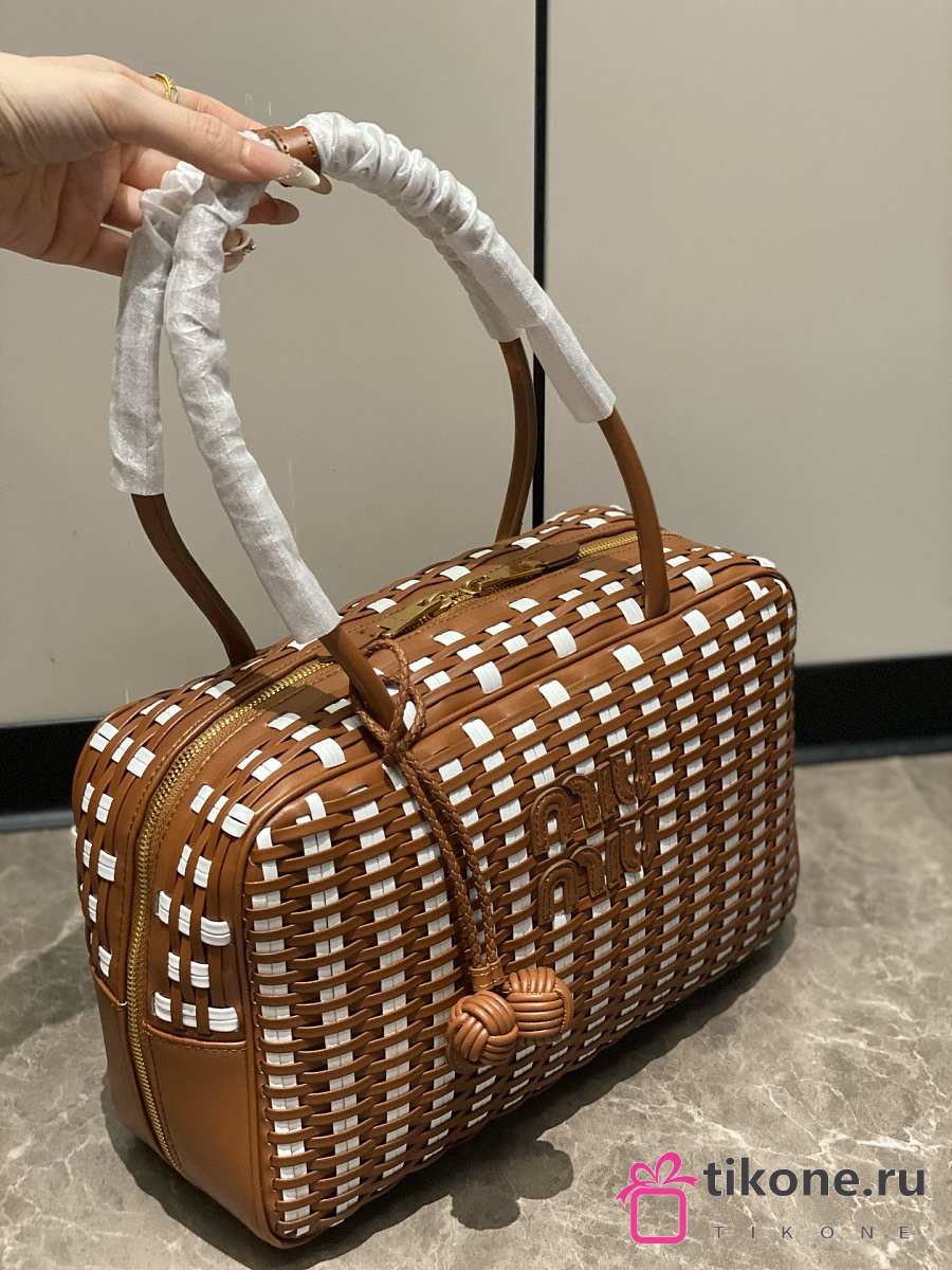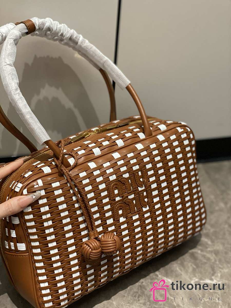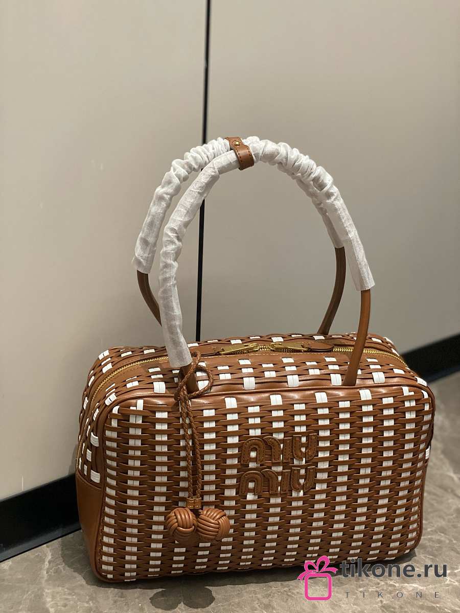 Miumiu Beau Leather Bag Cognac/White 5BB172 - 30x17x8.5cm