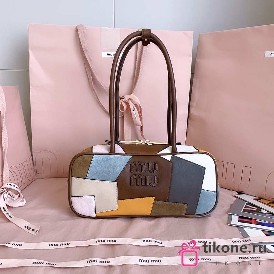 Miumiu Beau Patchwork Leather Bag Oak 5BB173 - 27x12x8cm