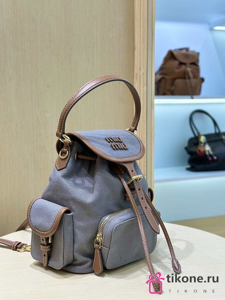 Miumiu Canvas And Leather Backpack Gray 5BZ043 - 22x18x11.5cm