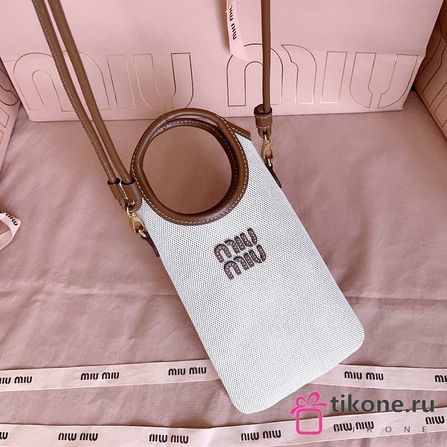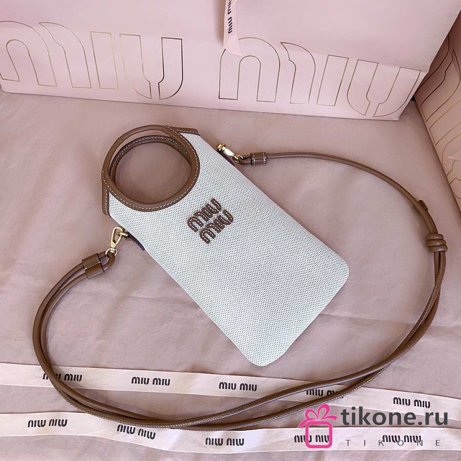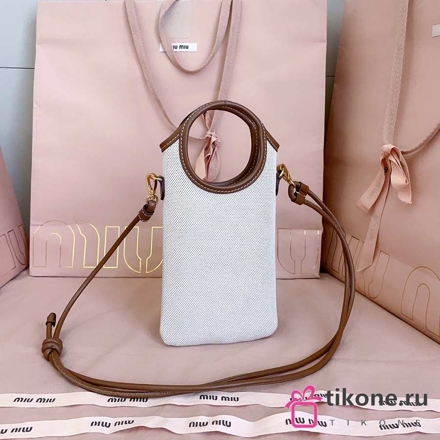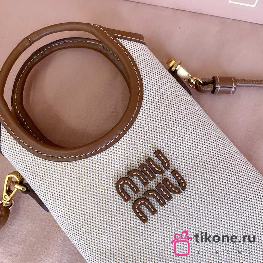 Miumiu Canvas and Leather Smartphone Case Natural 5ZT080 - 21x12.5cm