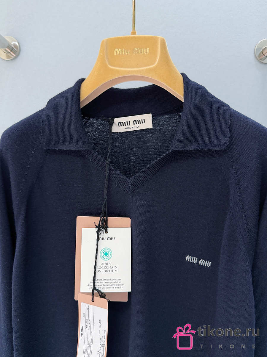 Miumiu Cashmere Polo Sweater Navy