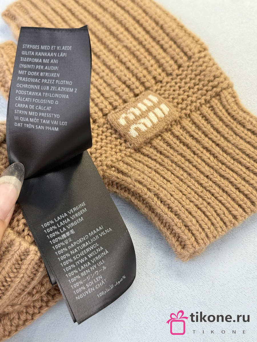 Miumiu Combo Beanie/Gloves Wool And Cashmere Camel Brown