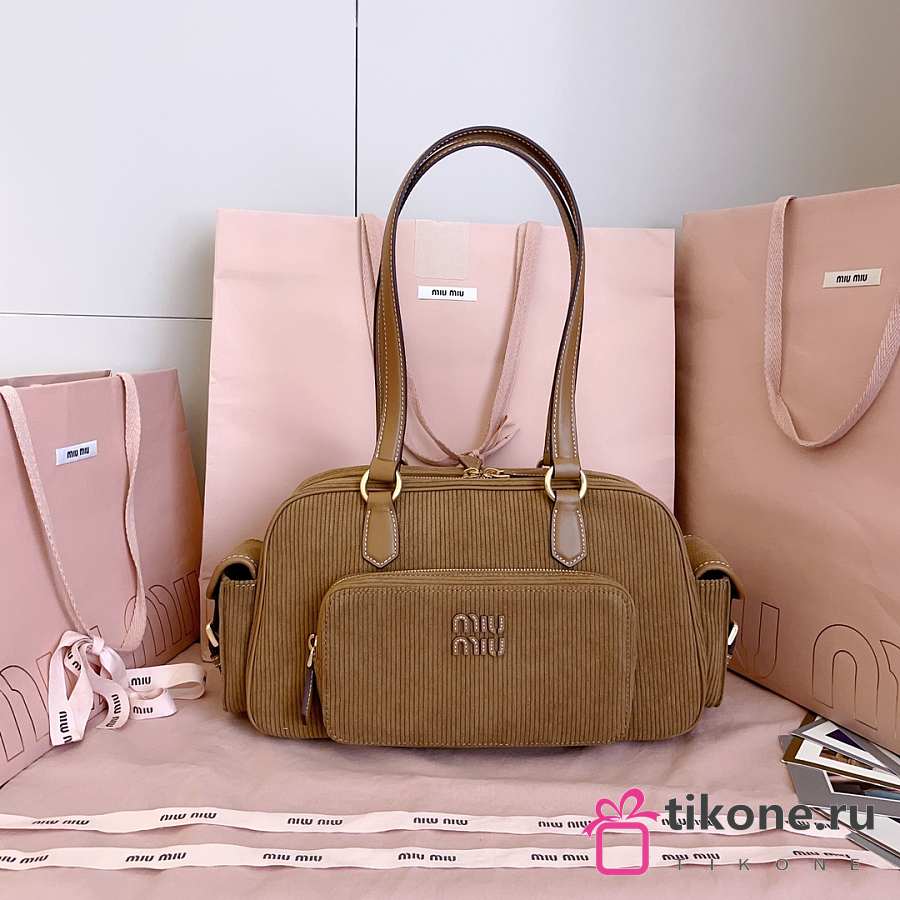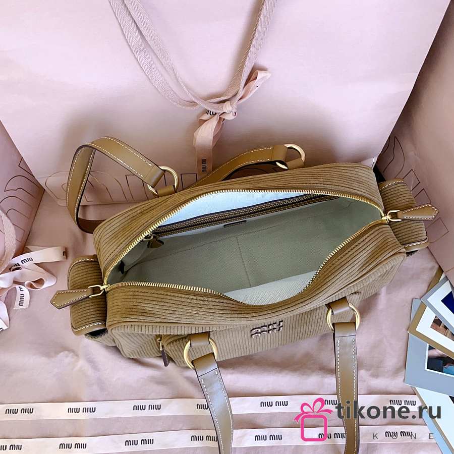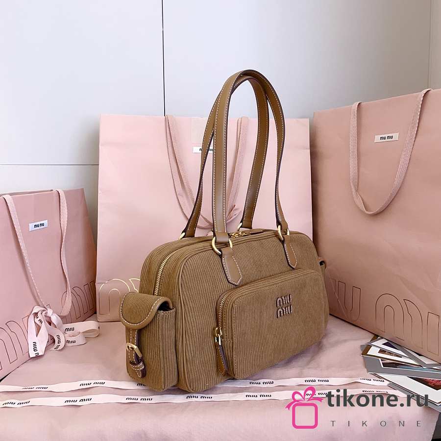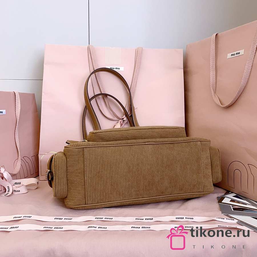 Miumiu Corduroy Pocket Top Handle Bag Cinnamon 5BB179 - 32x19x14cm