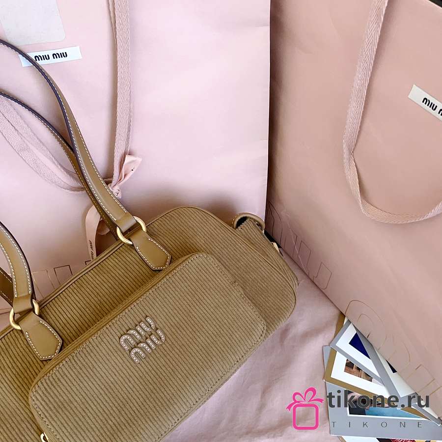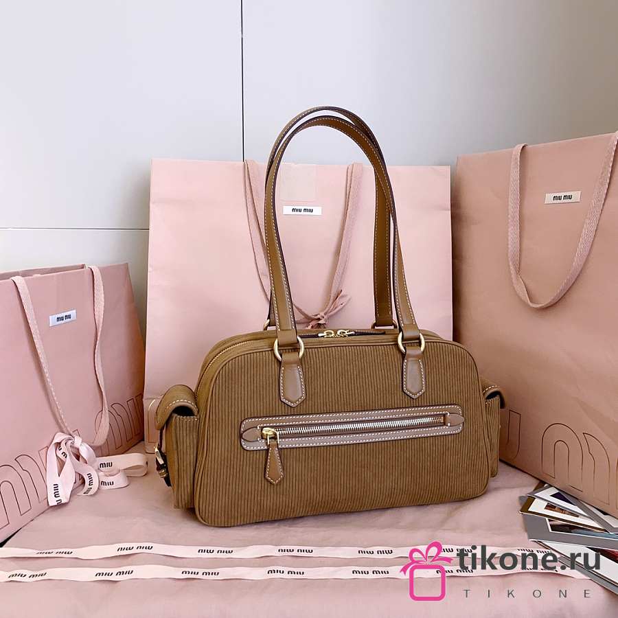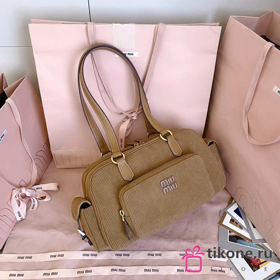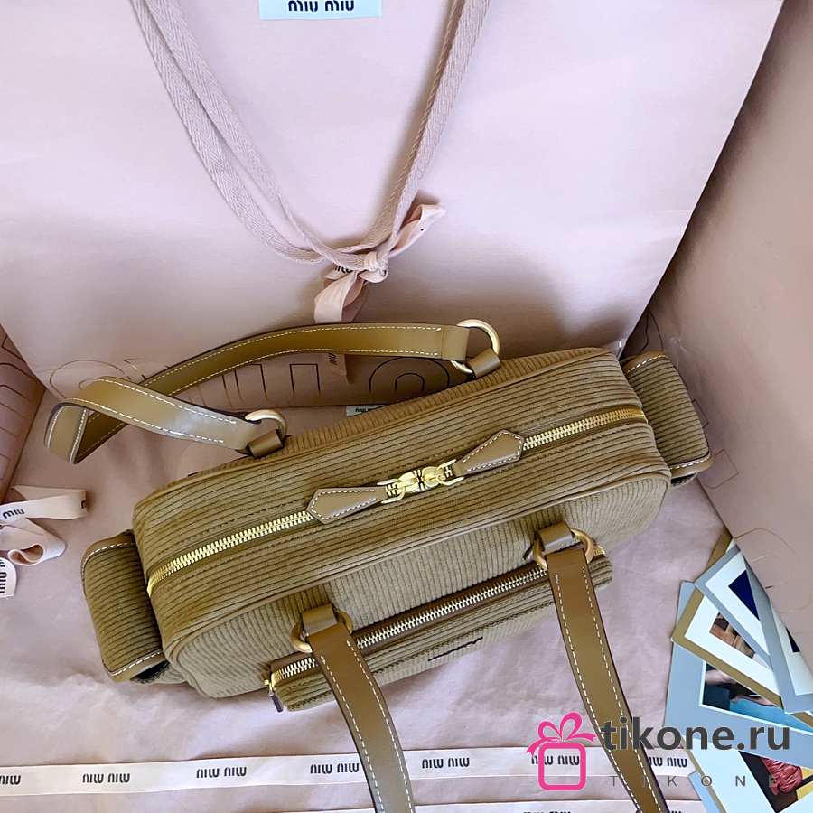Miumiu Corduroy Pocket Top Handle Bag Cinnamon 5BB179 - 32x19x14cm