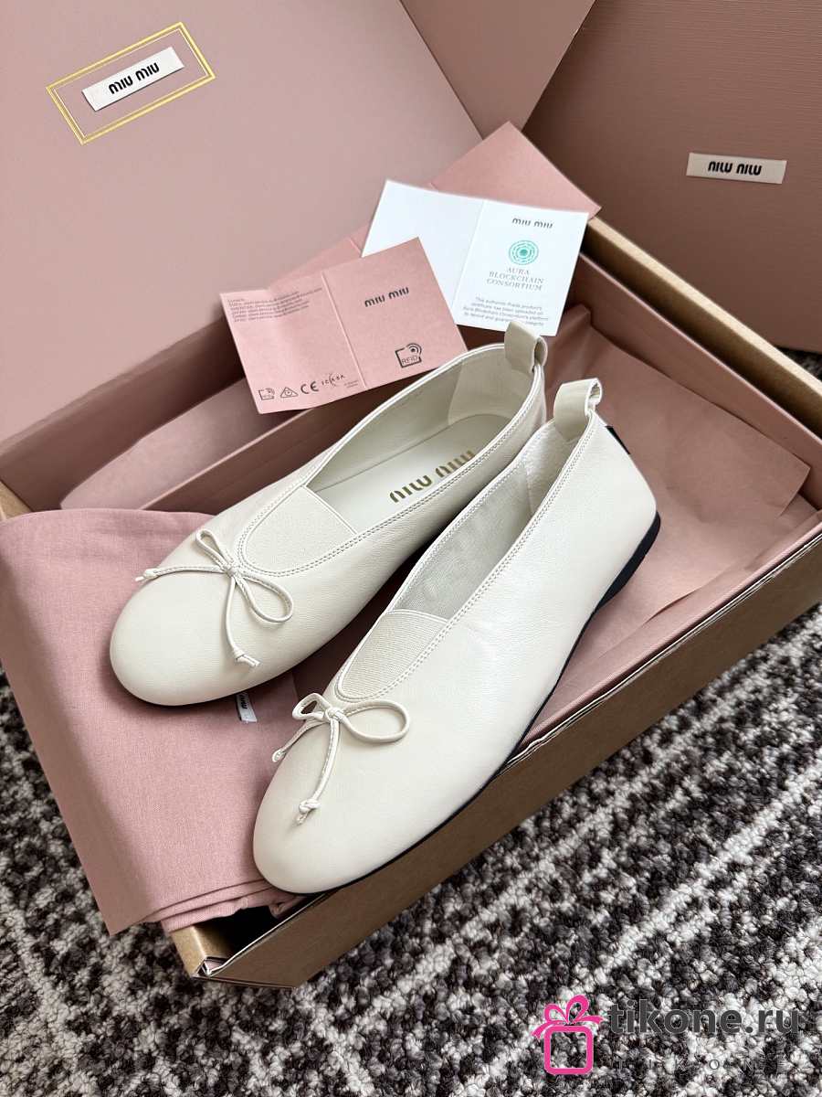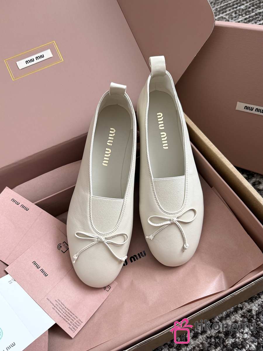 Miumiu Elan Nappa Leather Ballerinas Ivory