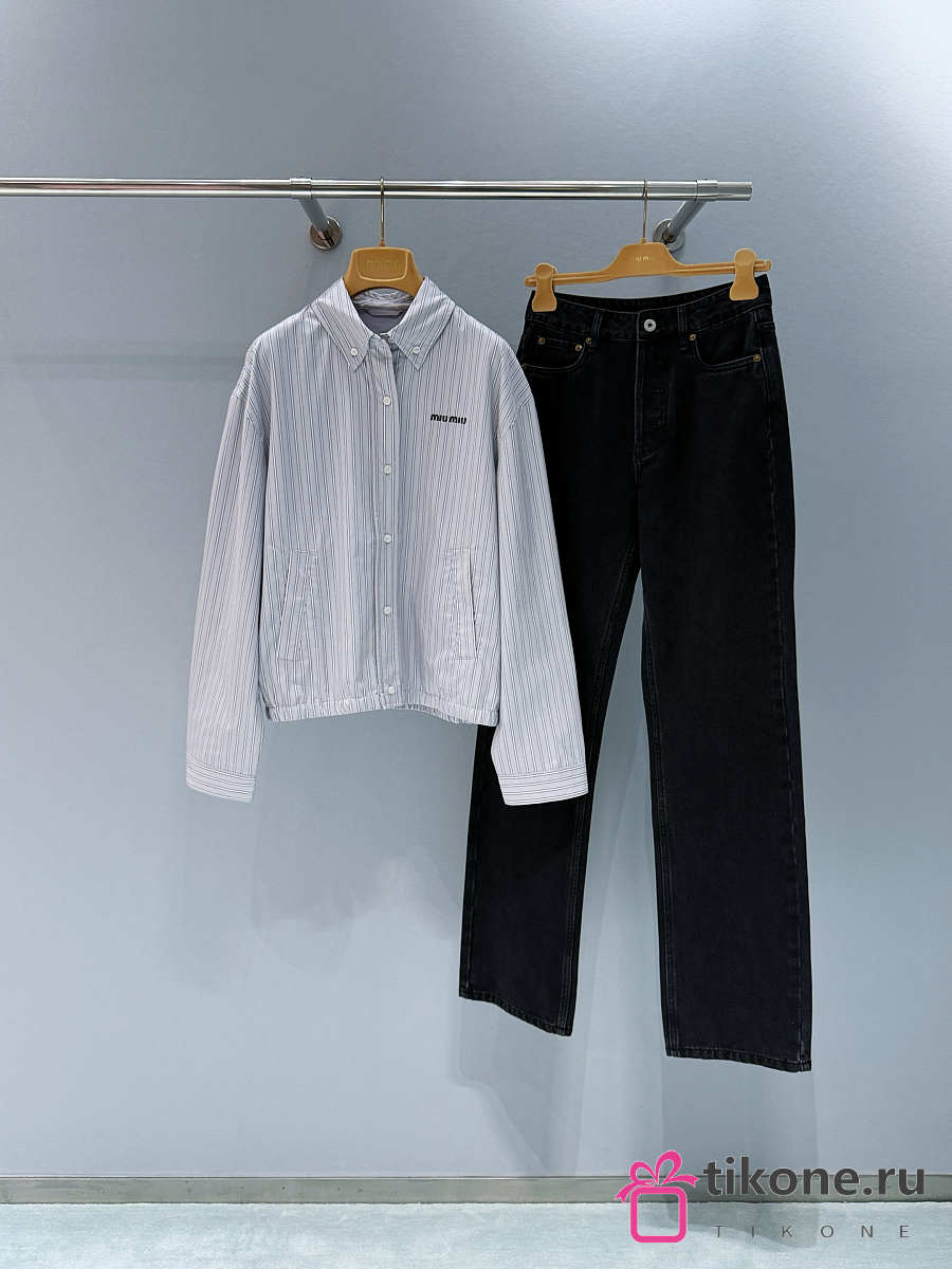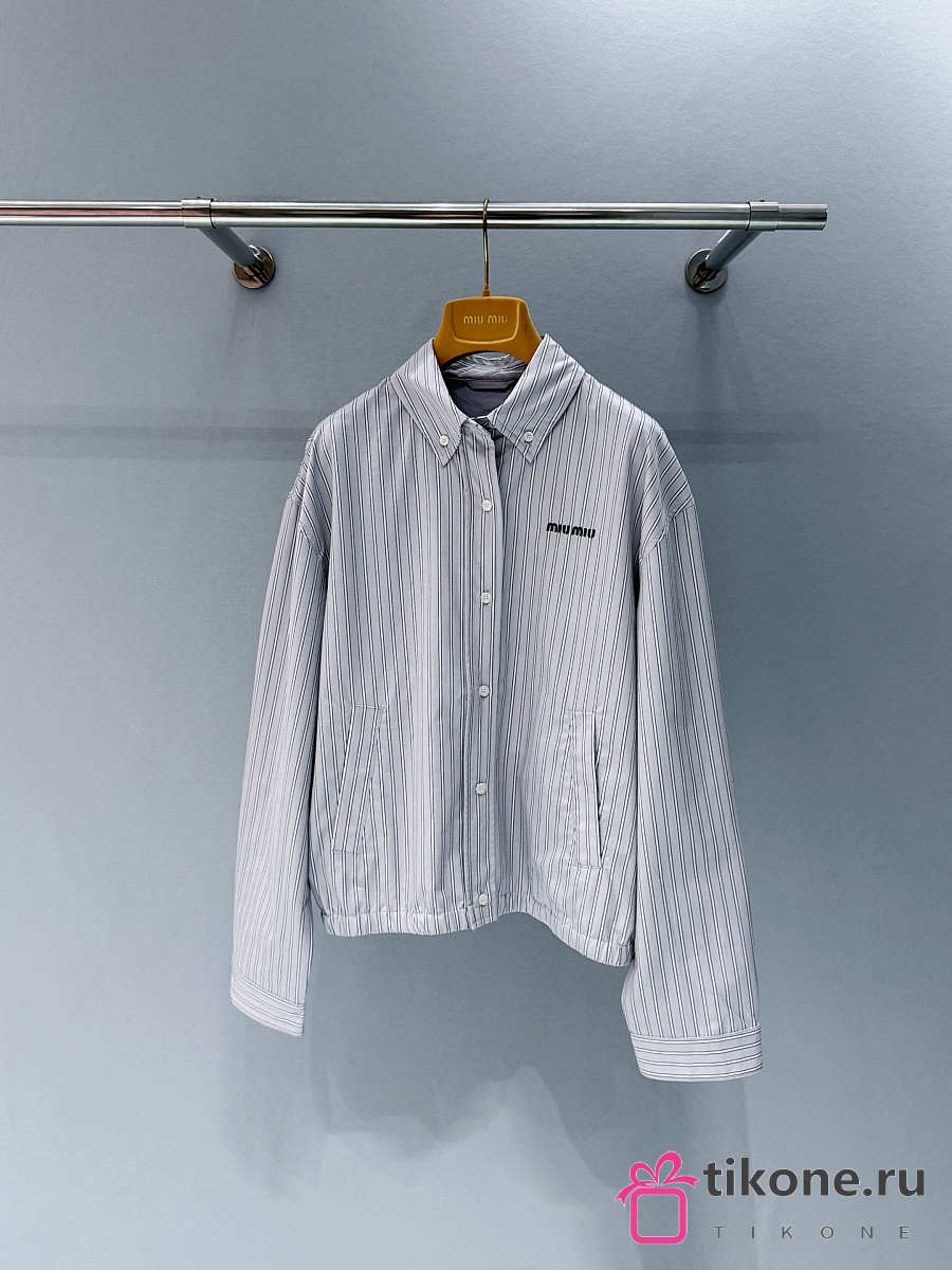 Miumiu Gingham Check Blouson Jacket Gray