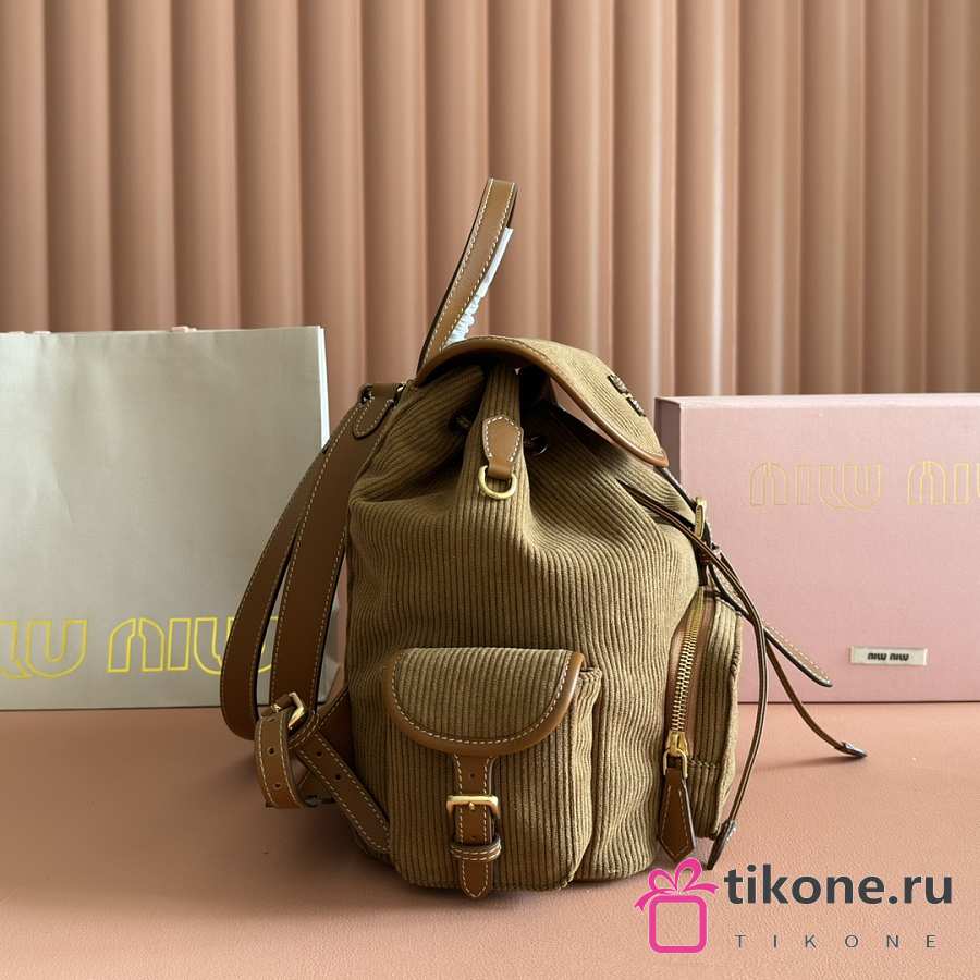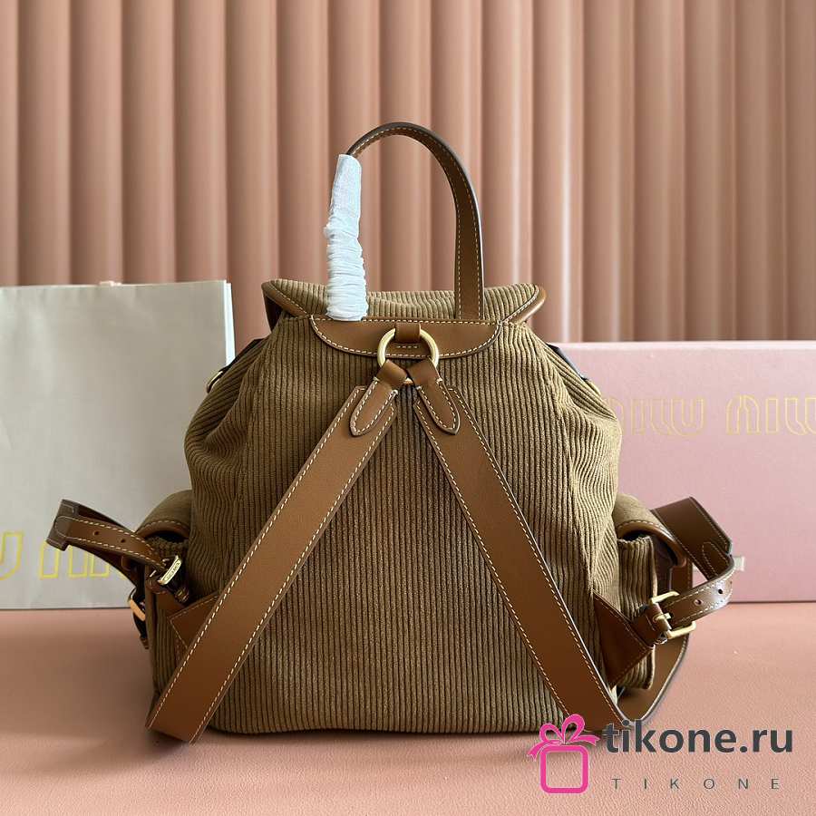 Miumiu Large Corduroy Backpack Brown 5BZ042 - 29.5x25x12.5cm