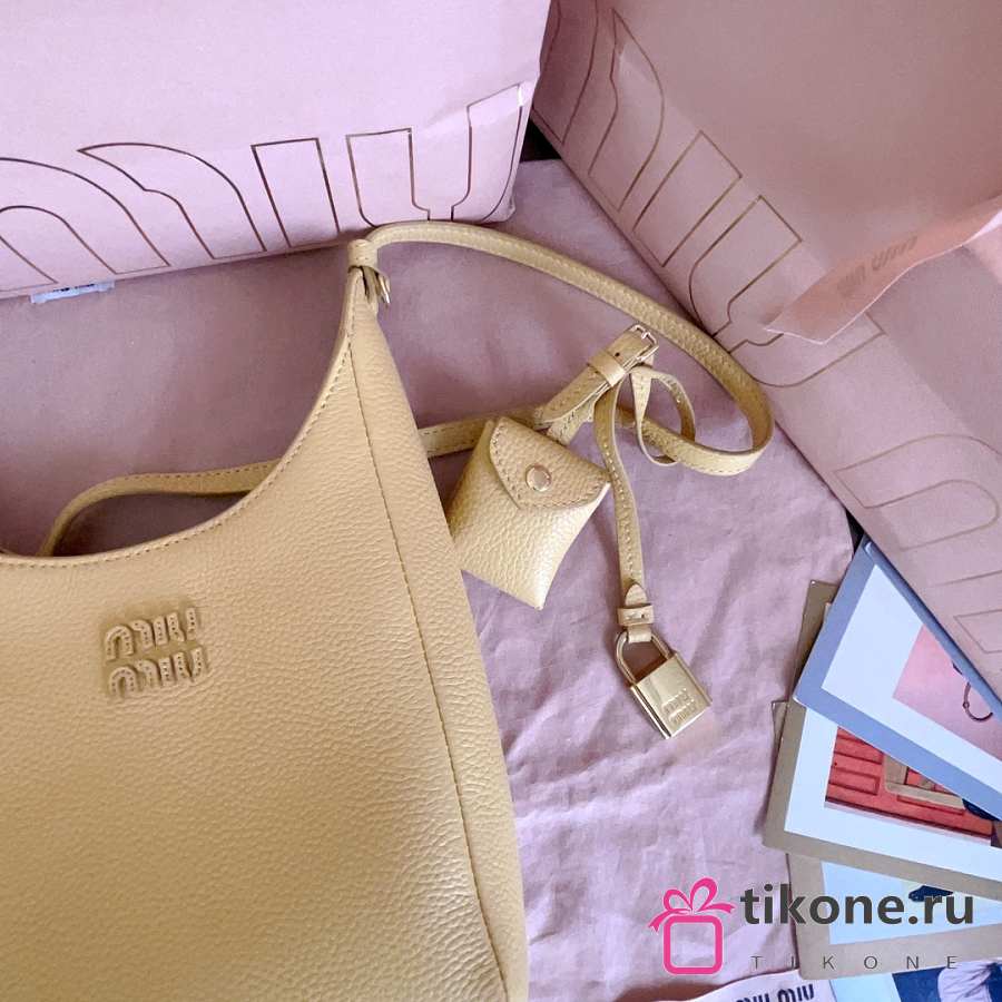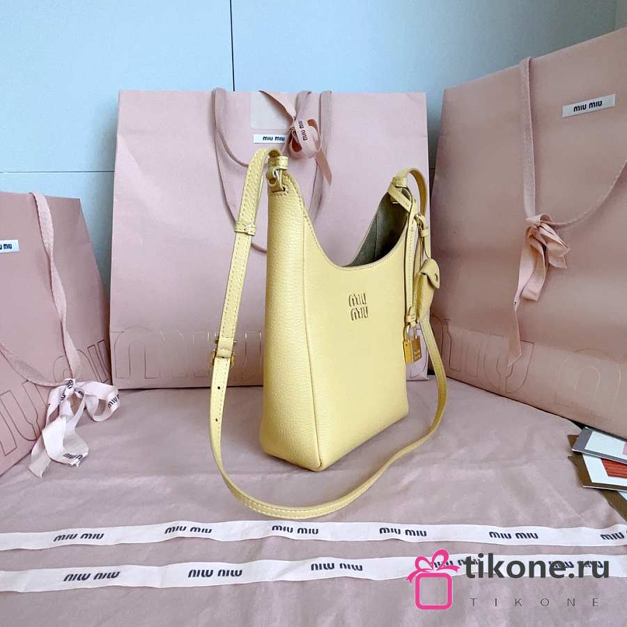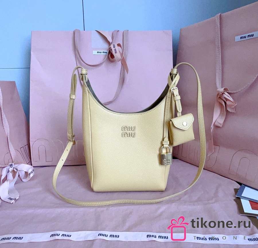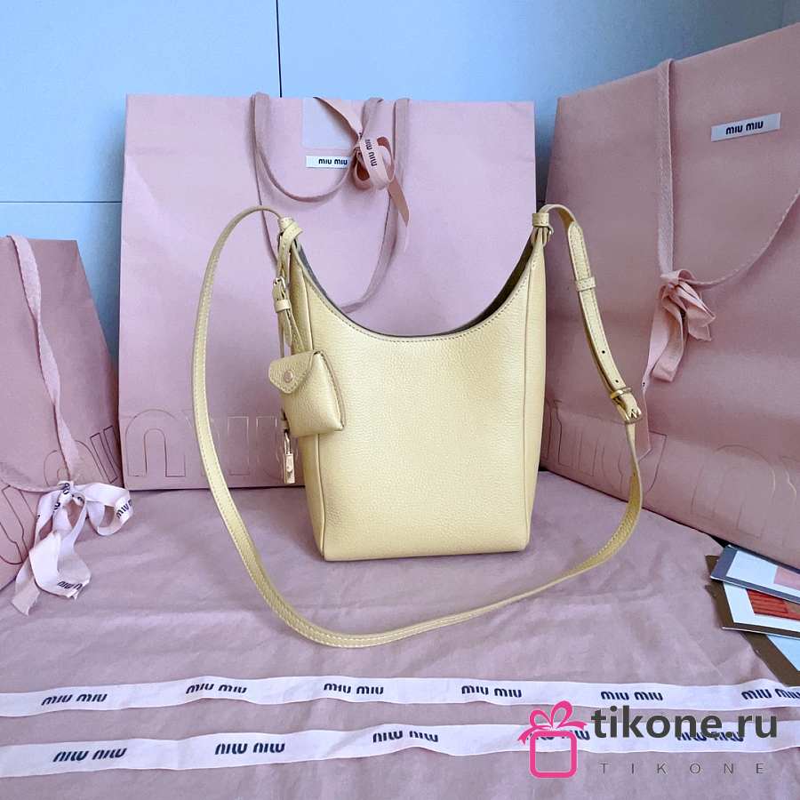 Miumiu Leather Bucket Bag Dark Yellow/Olive 5BE099 - 18x16x7cm