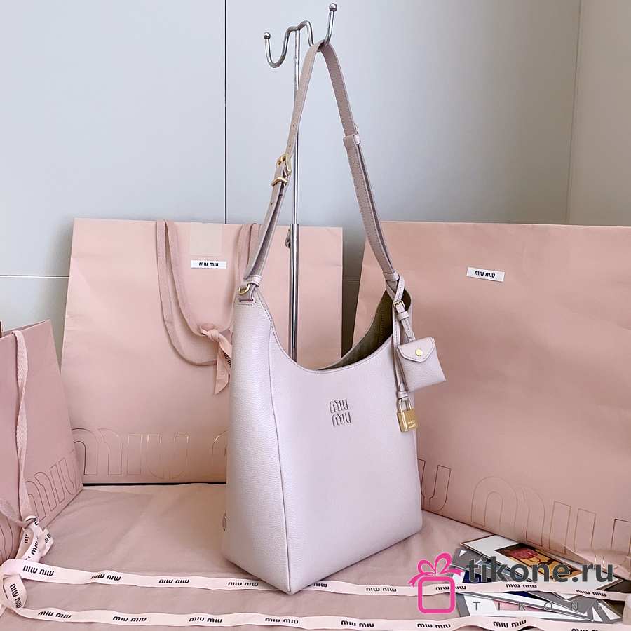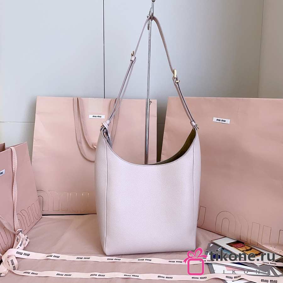 Miumiu Leather Bucket Bag Light Pink/Olive 5BE098 - 28x22.5x12cm