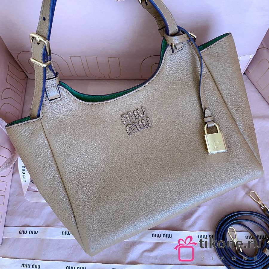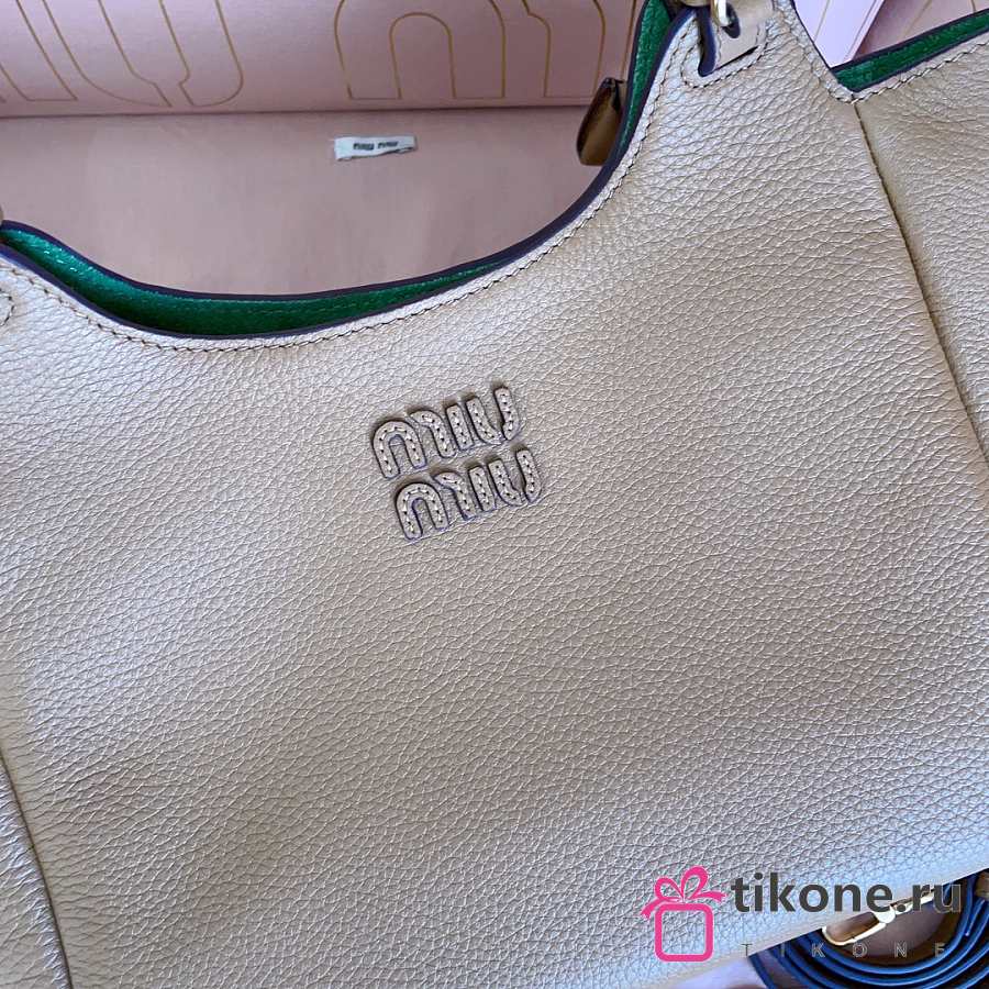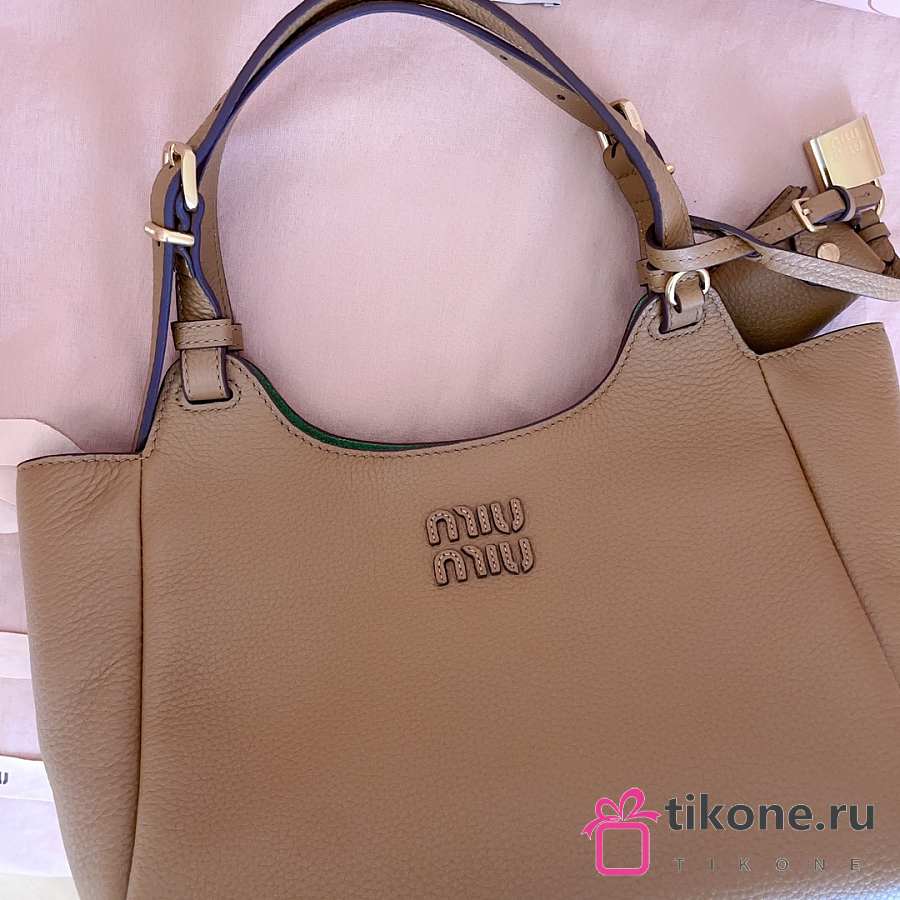 Miumiu Leather Handbag Caramel/Green 5BA304 - 25.5x20x13cm