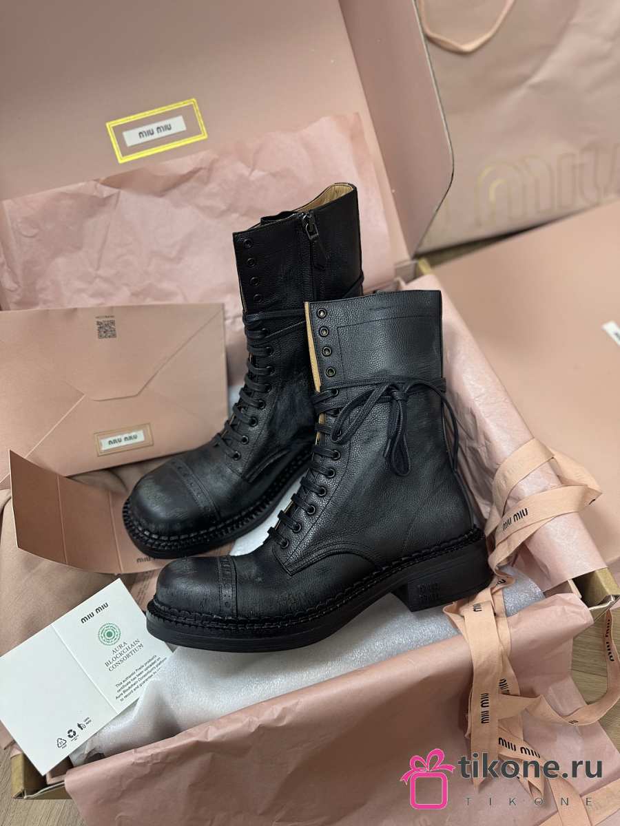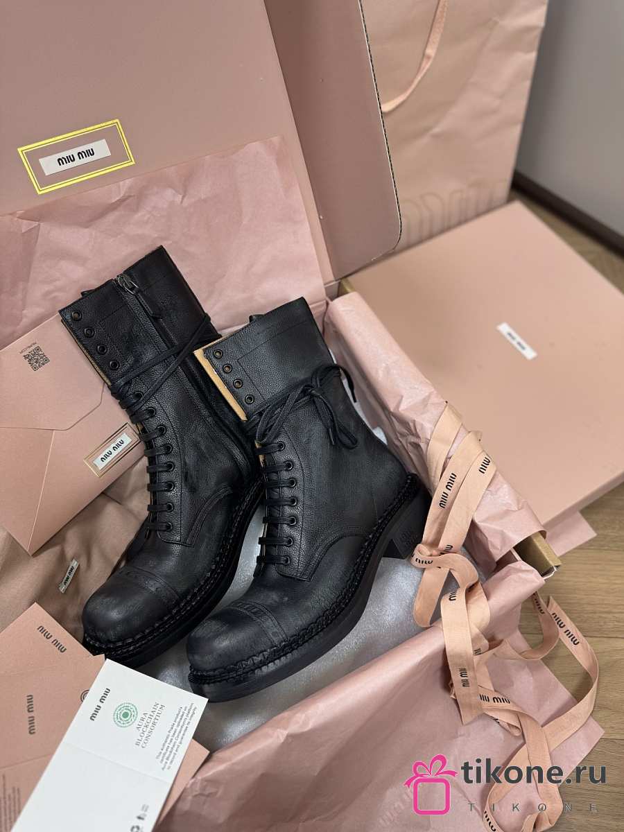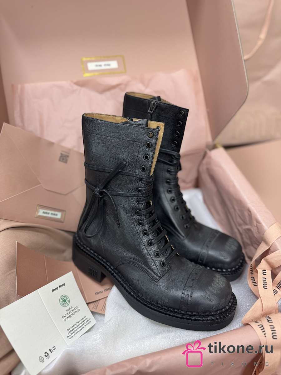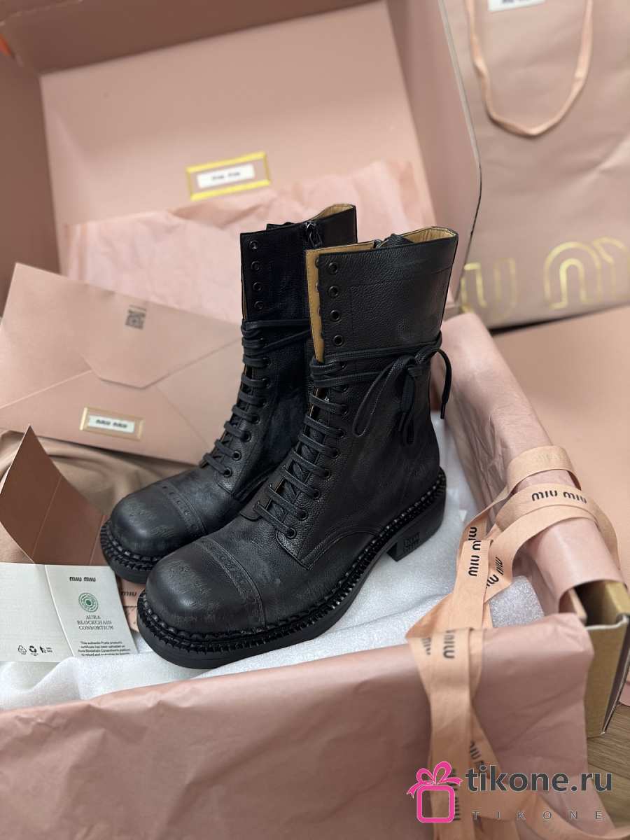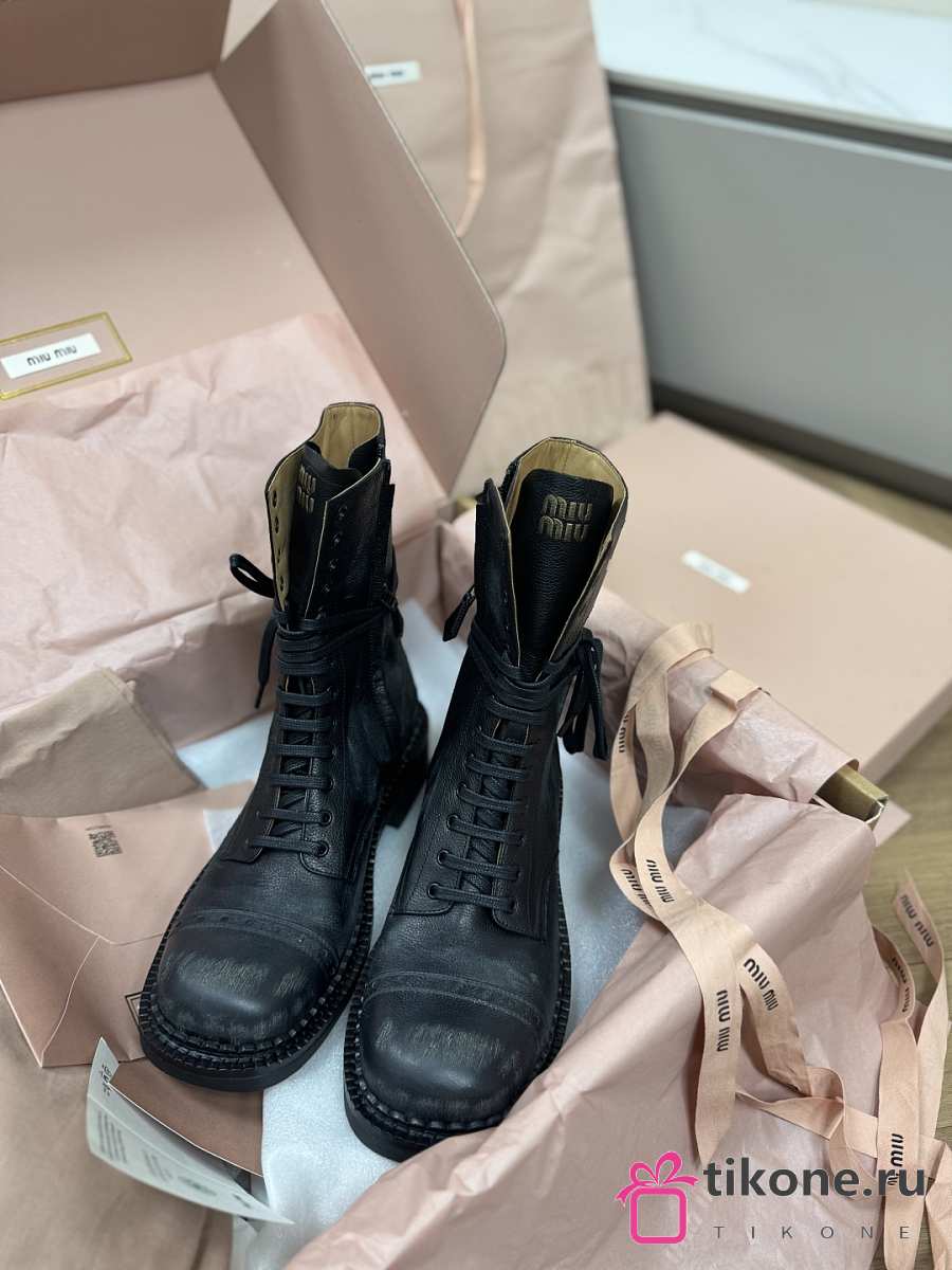 Miumiu Leather Laced Booties Black 35mm 5U316E