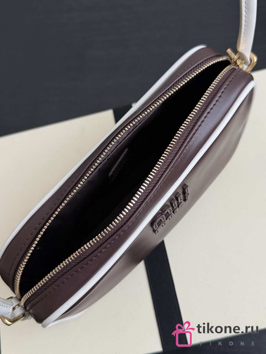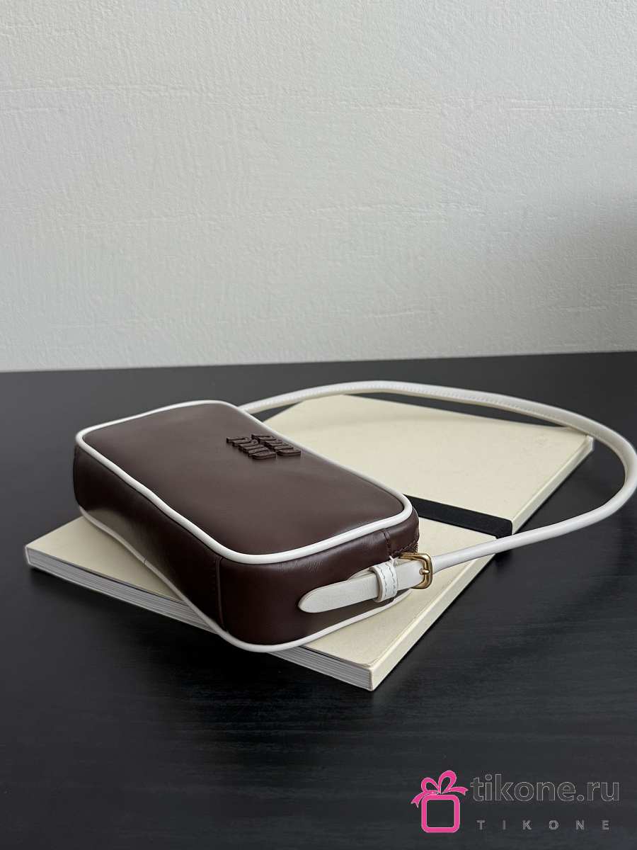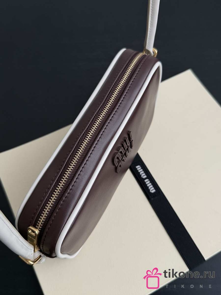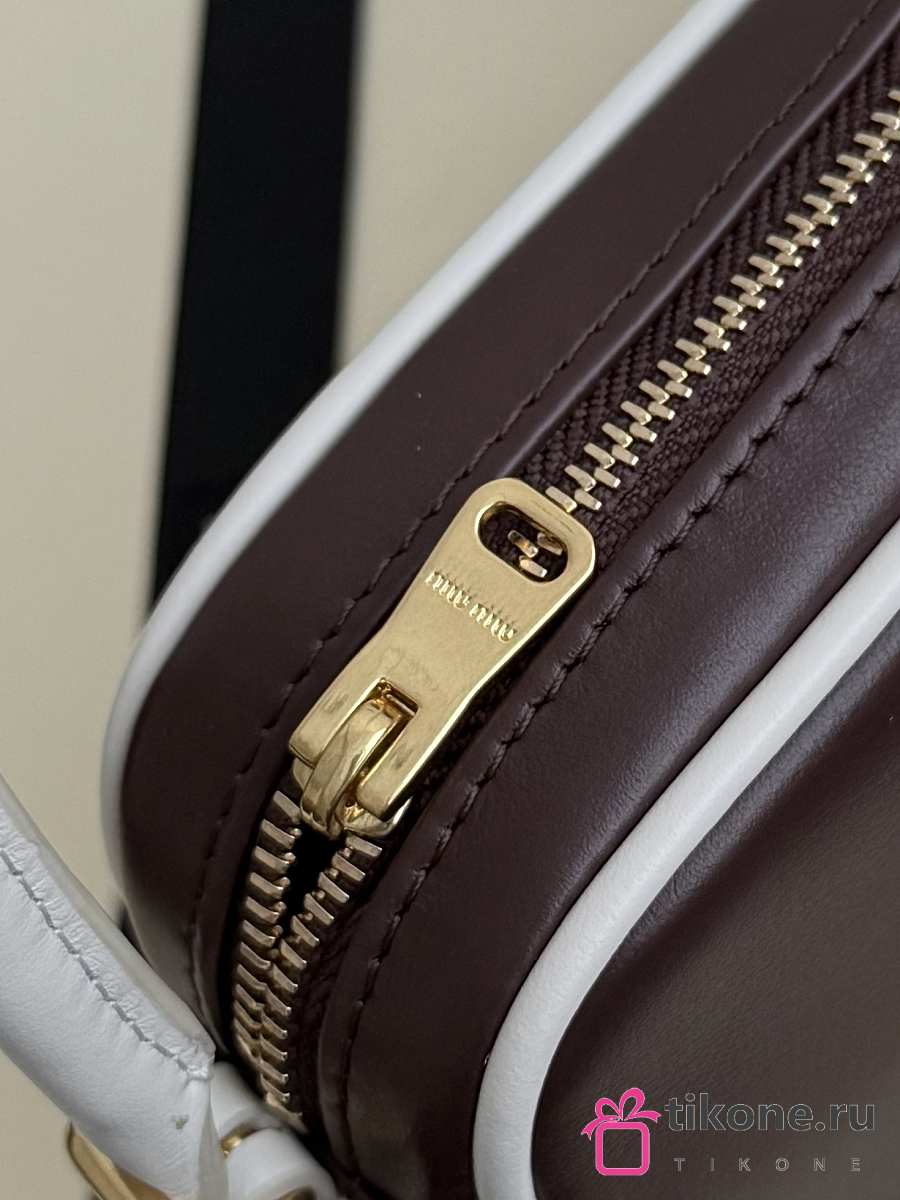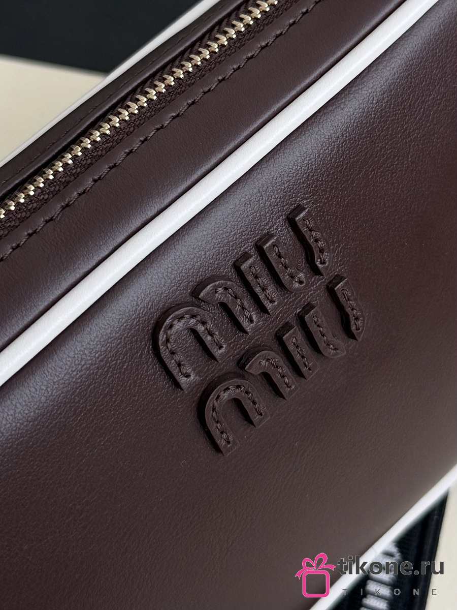 Miumiu Leather Pouch Brown/ White - 20x10x4.5cm
