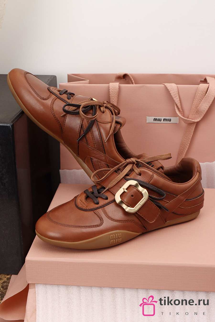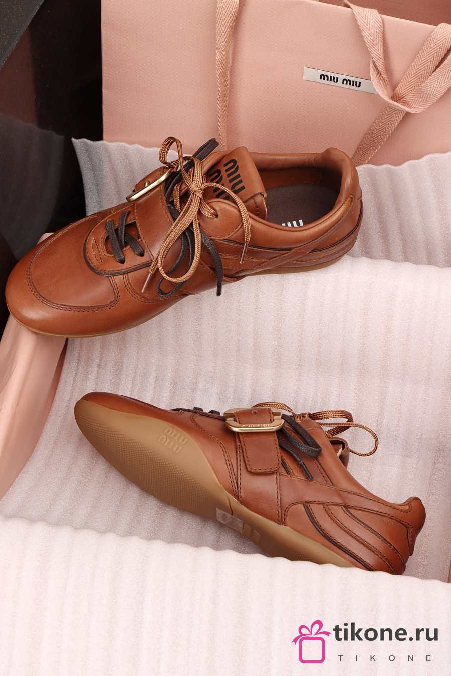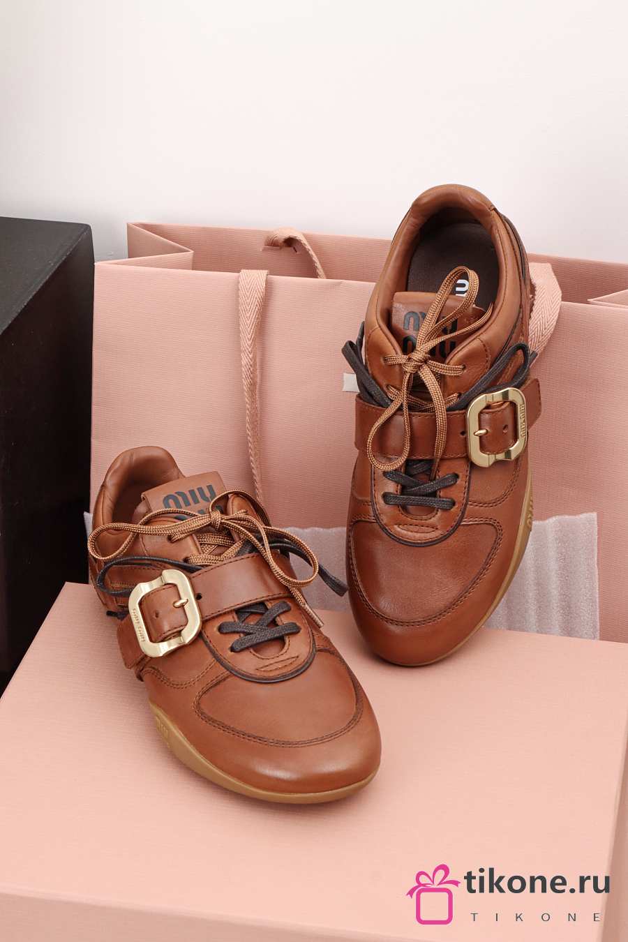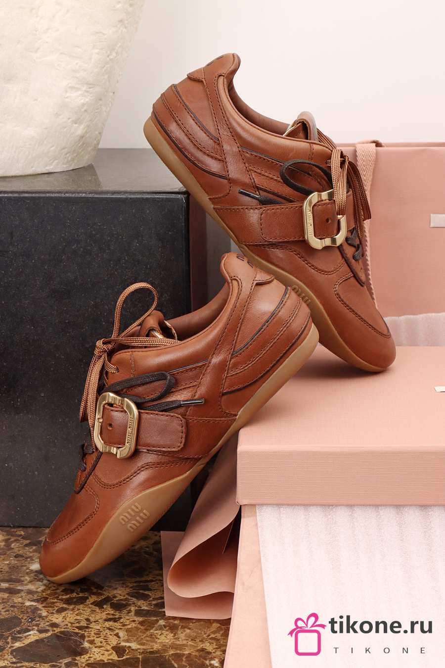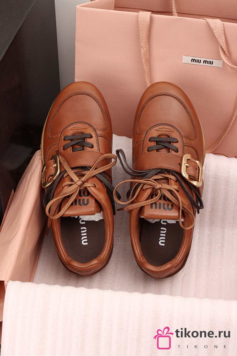 Miumiu Leather Sneakers With Buckle Cognac 5E549E