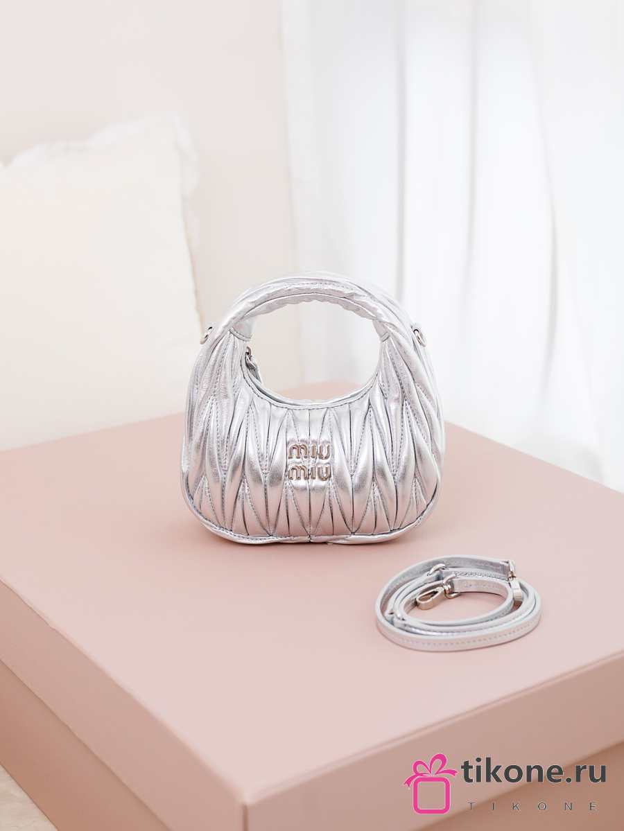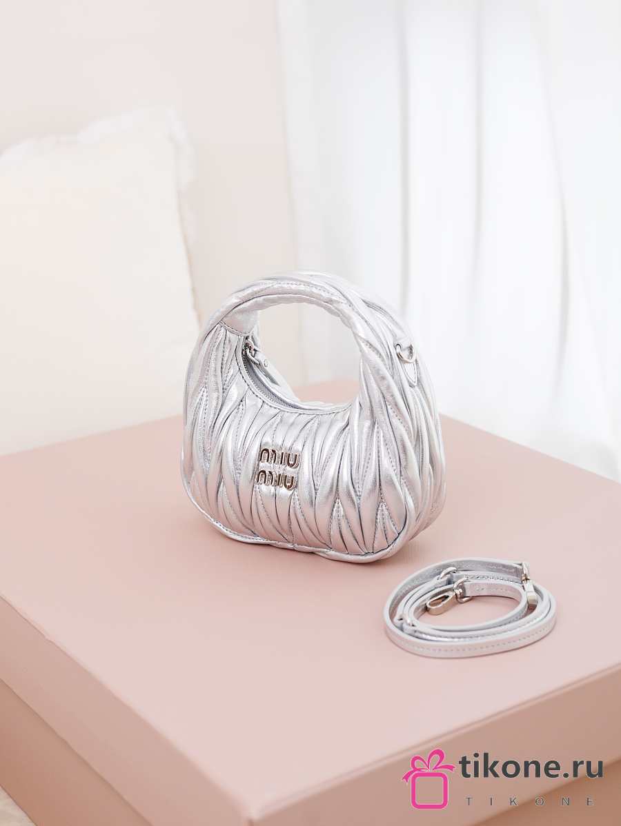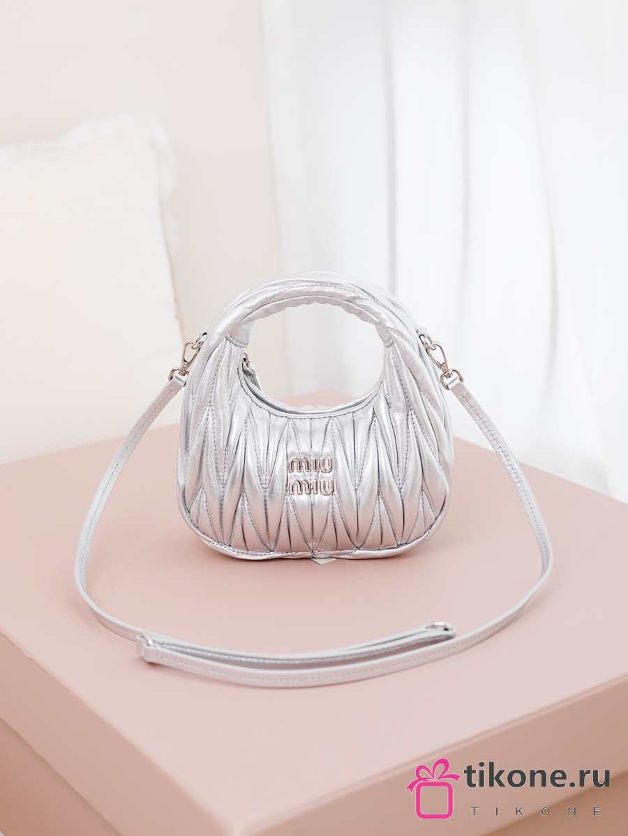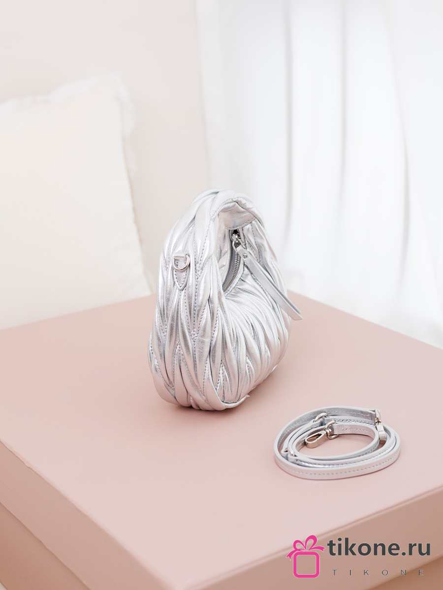 Miumiu Mini Wander Matelasse Nappa Leather Hobo Bag Silver 5BP078 - 17.5x14x5.5cm