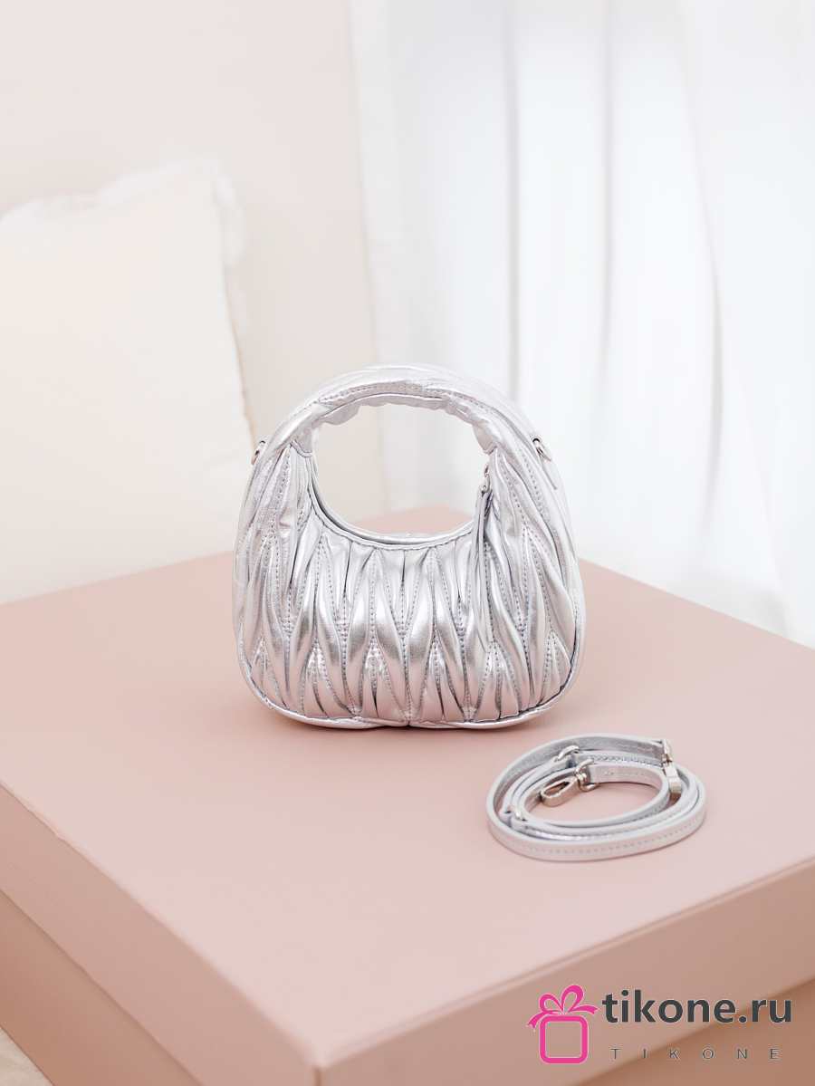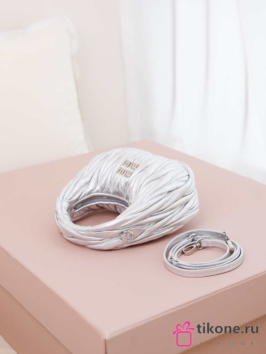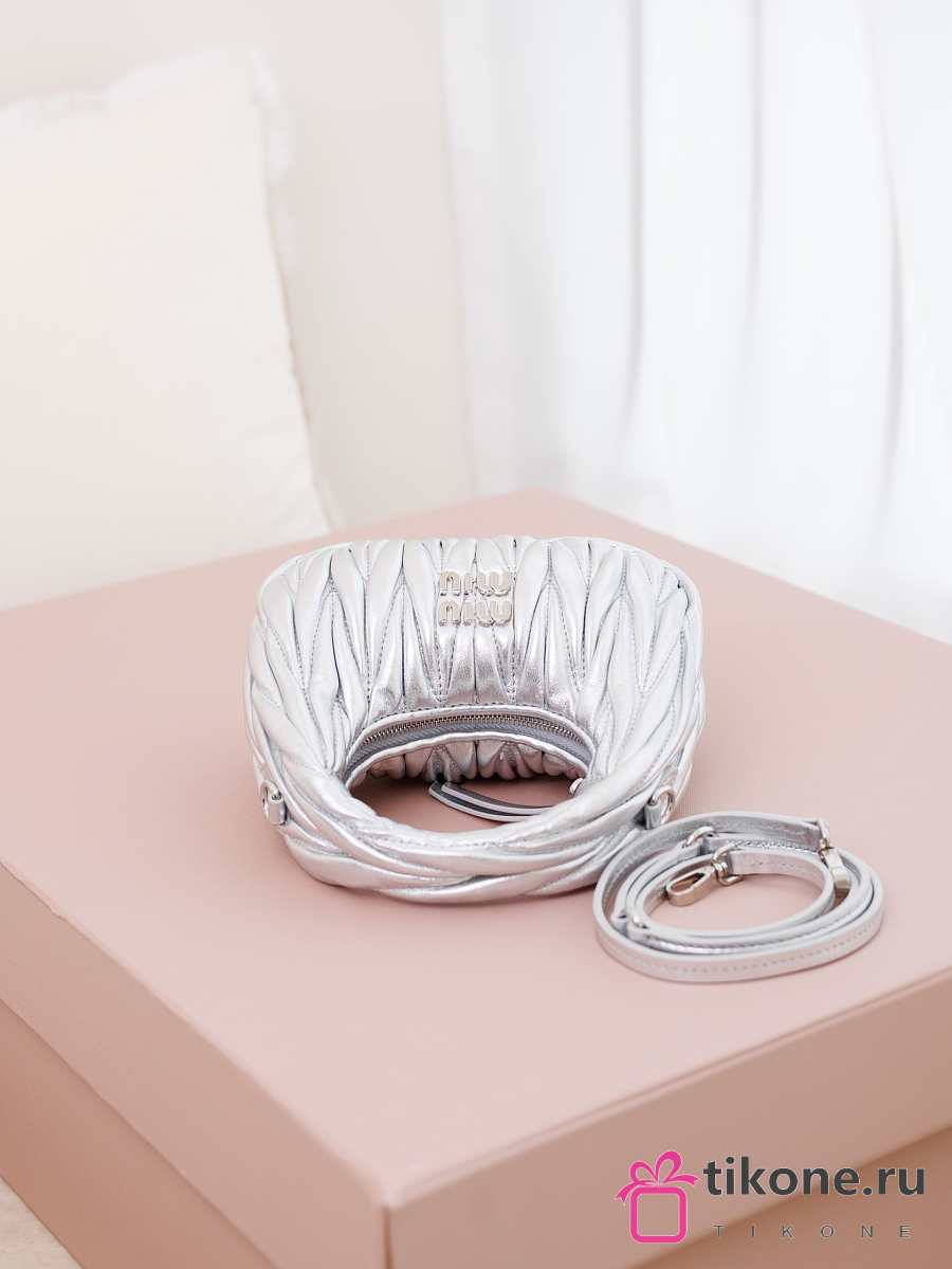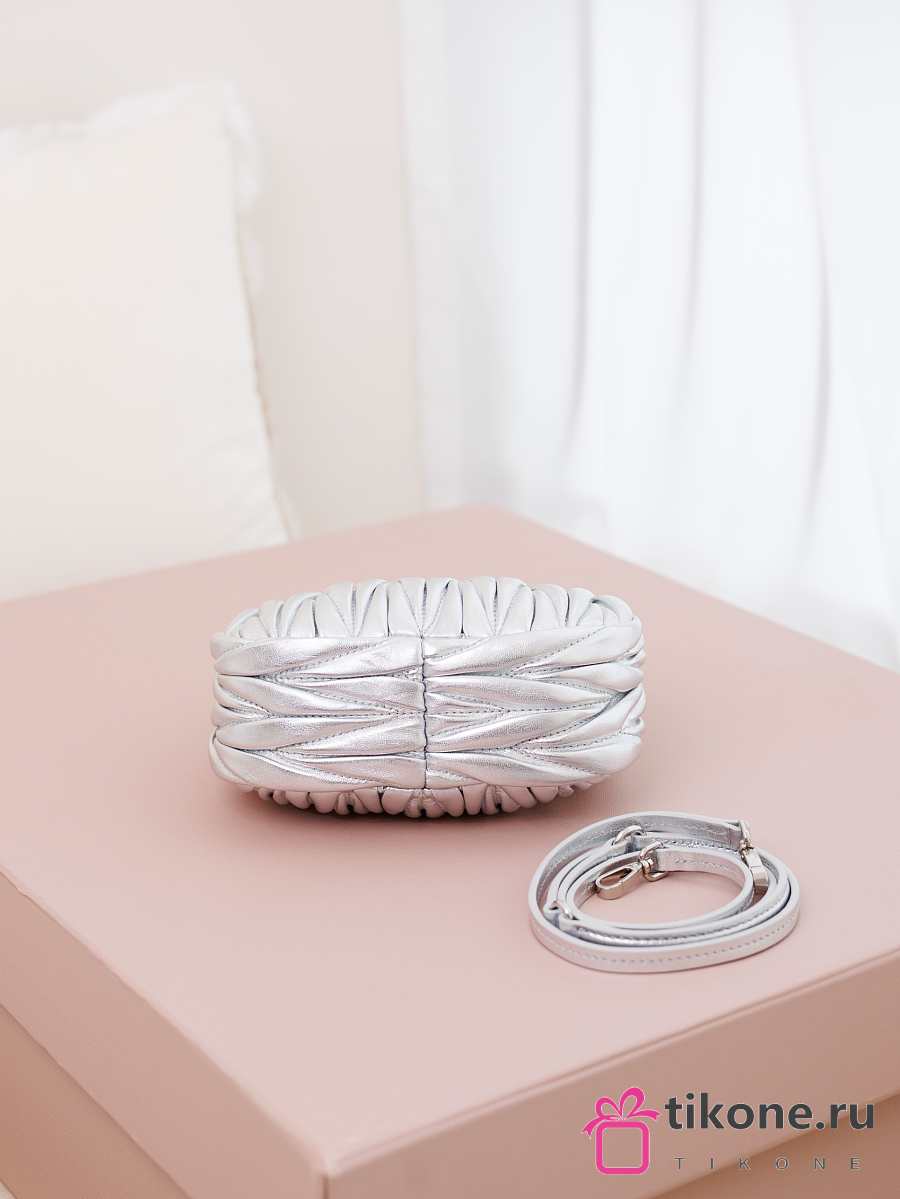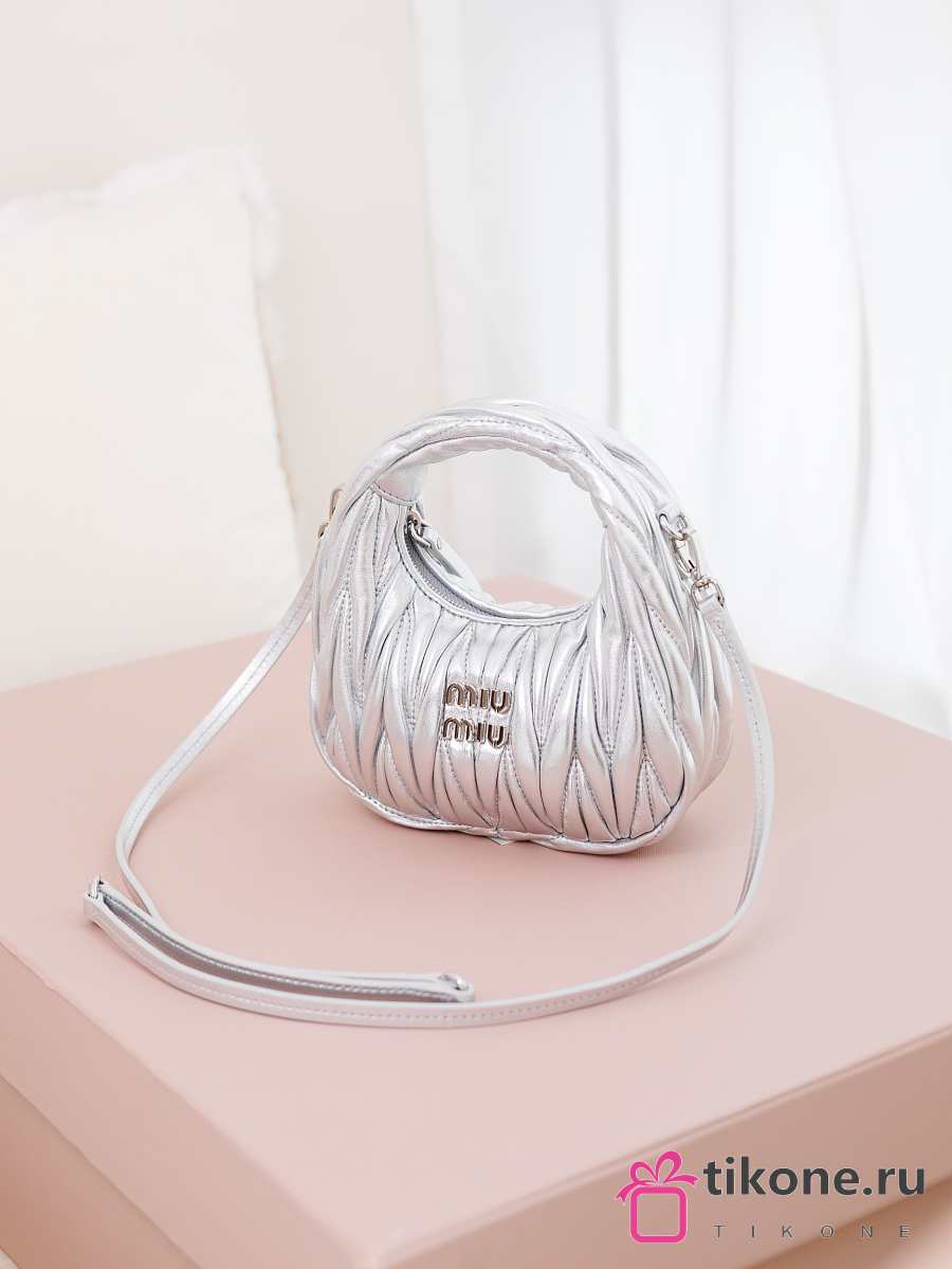 Miumiu Mini Wander Matelasse Nappa Leather Hobo Bag Silver 5BP078 - 17.5x14x5.5cm