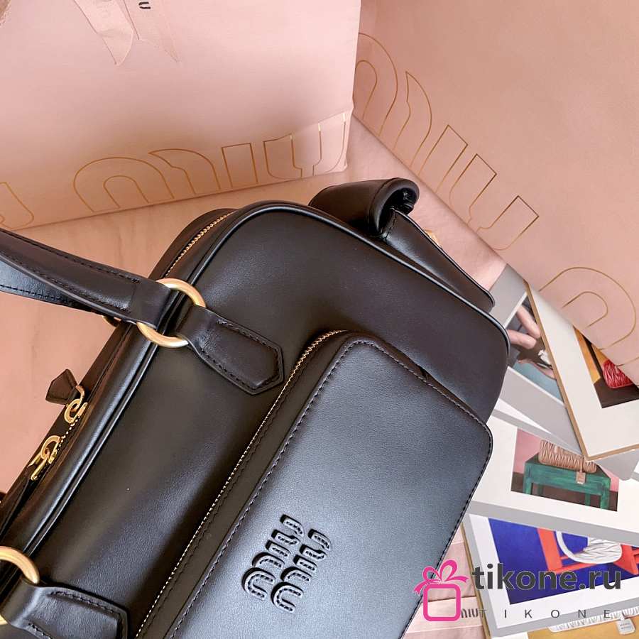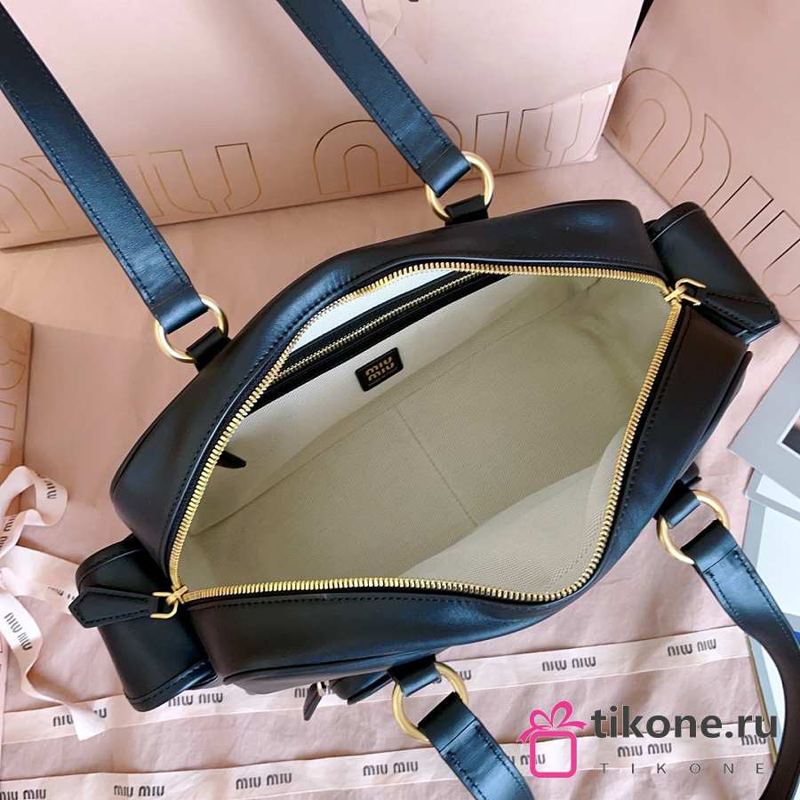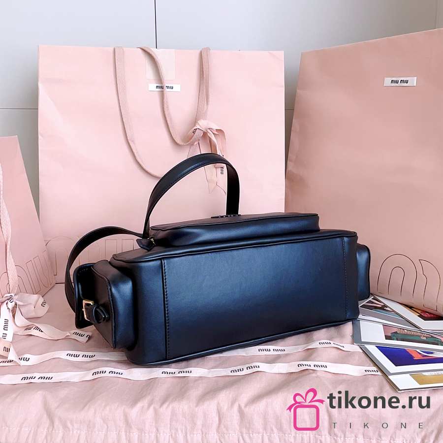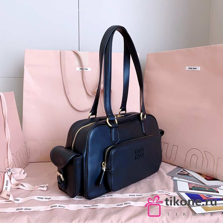 Miumiu Nappa Leather Pocket Top Handle Bag Black 5BB179 - 32x19x14cm