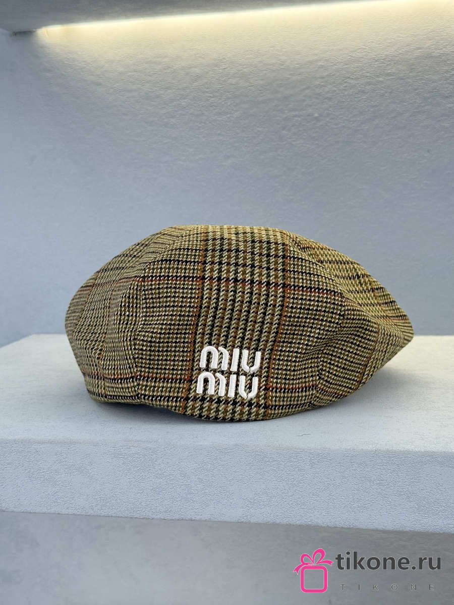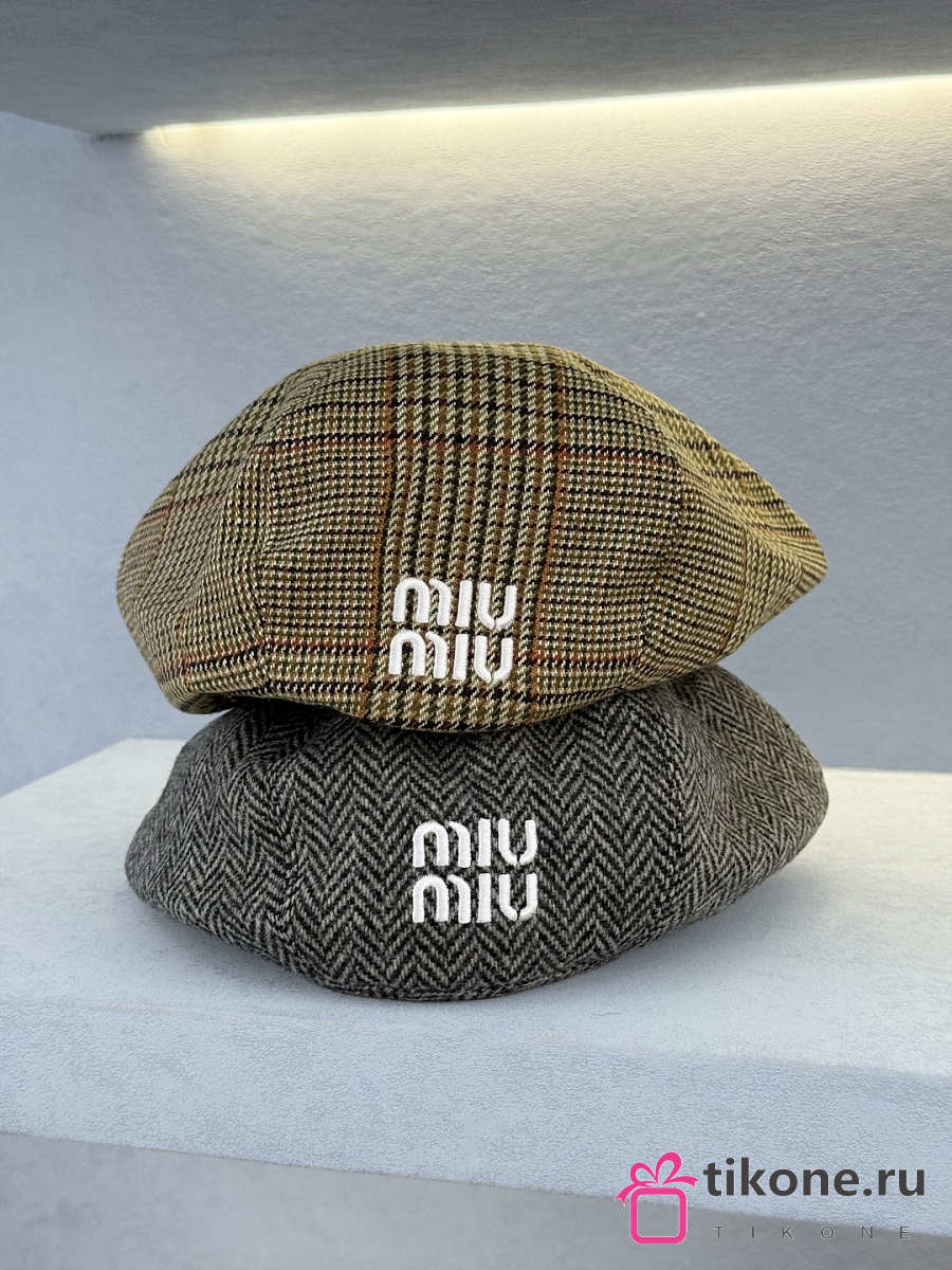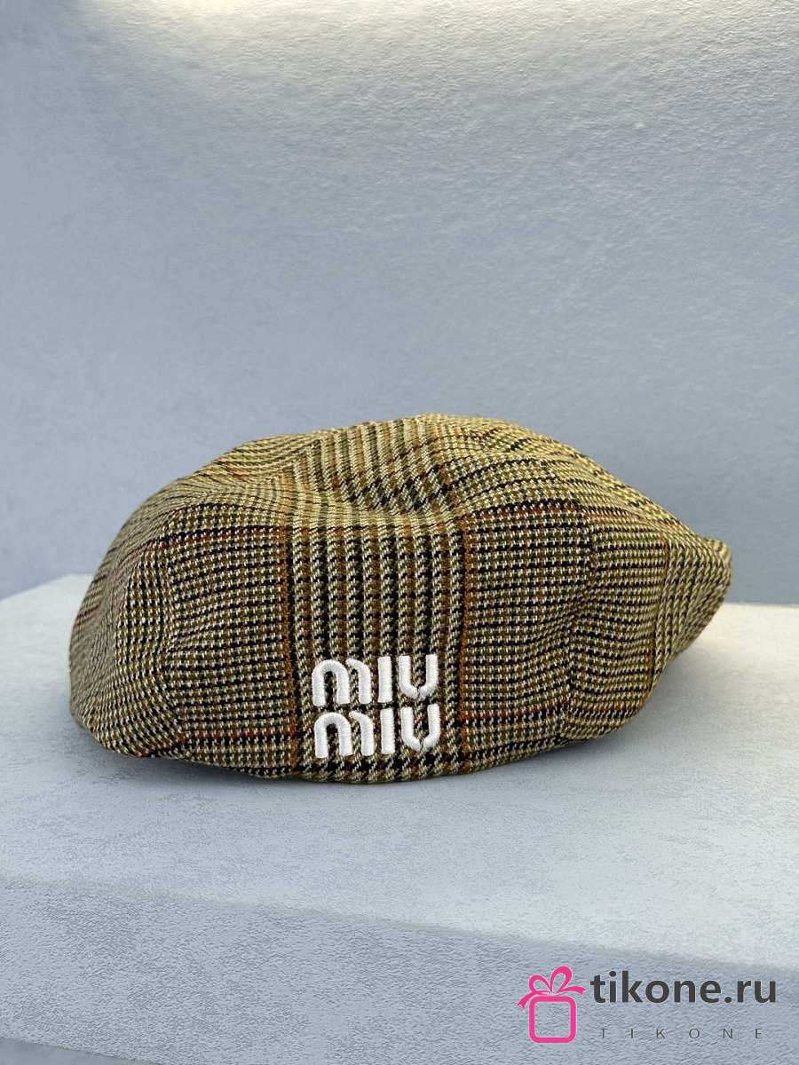 Miumiu Prince of Wales Checked Wool Hat in Brown