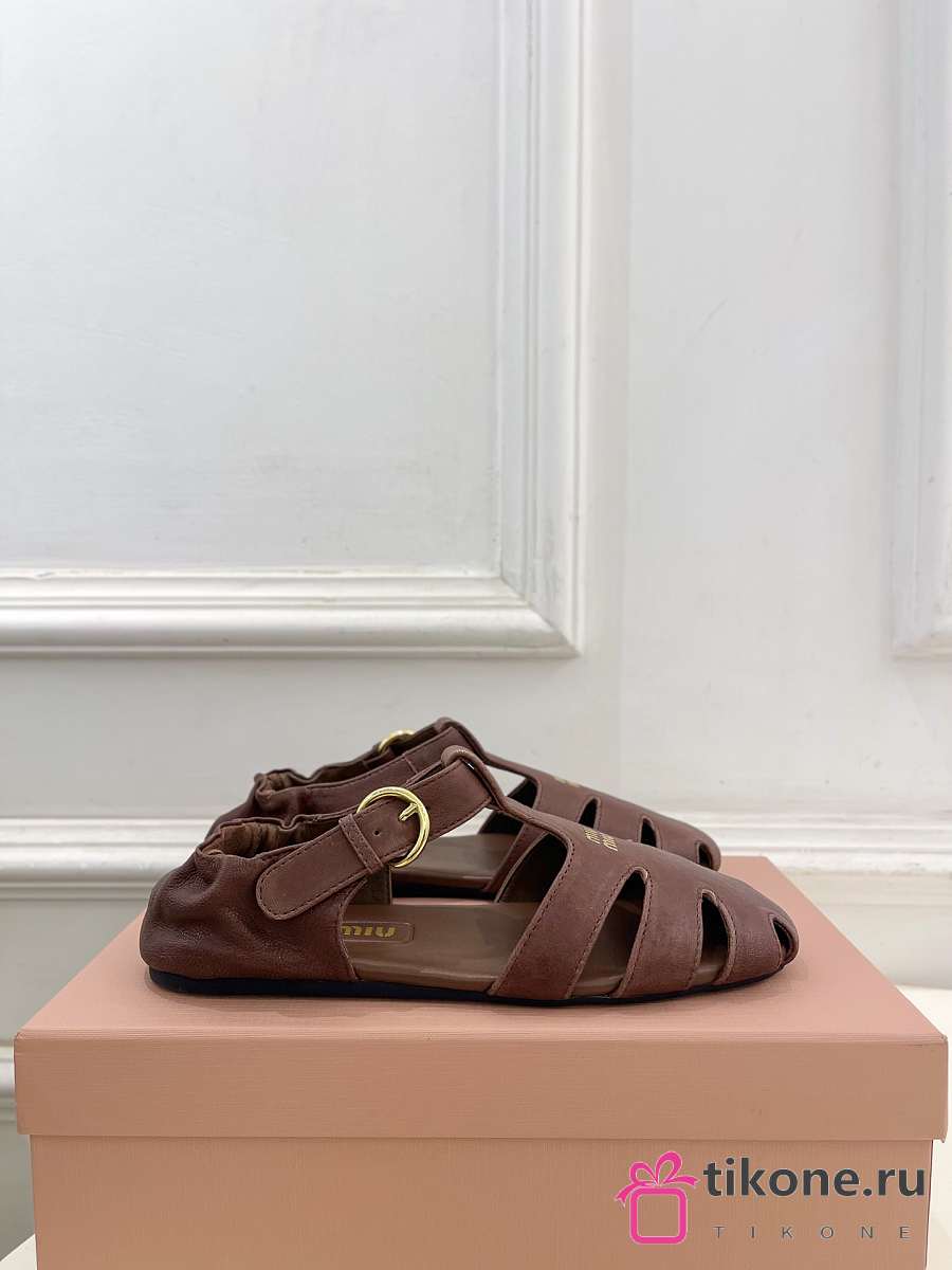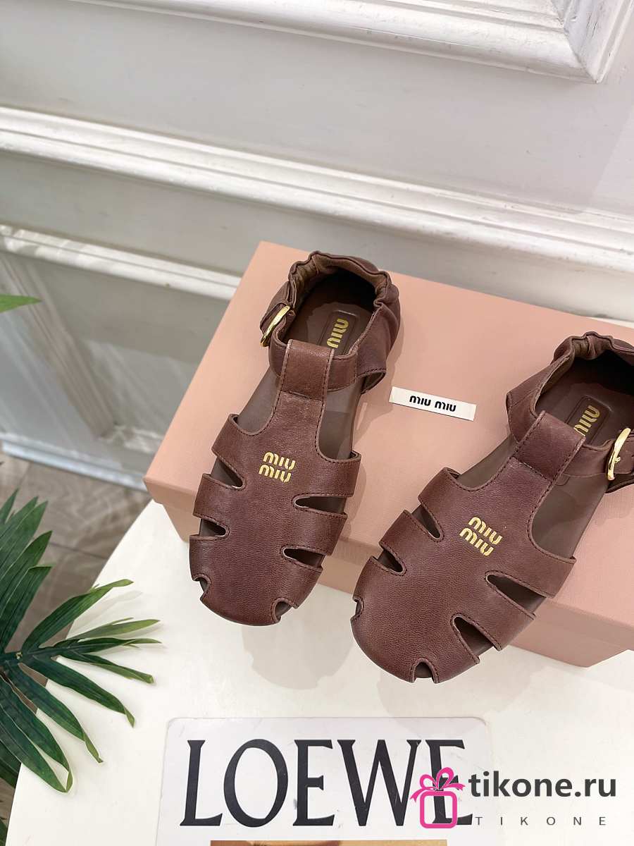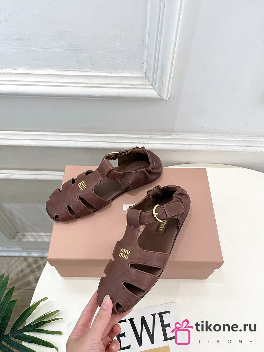 Miumiu Ruches Nappa Leather Fisherman's Sandals Briarwood